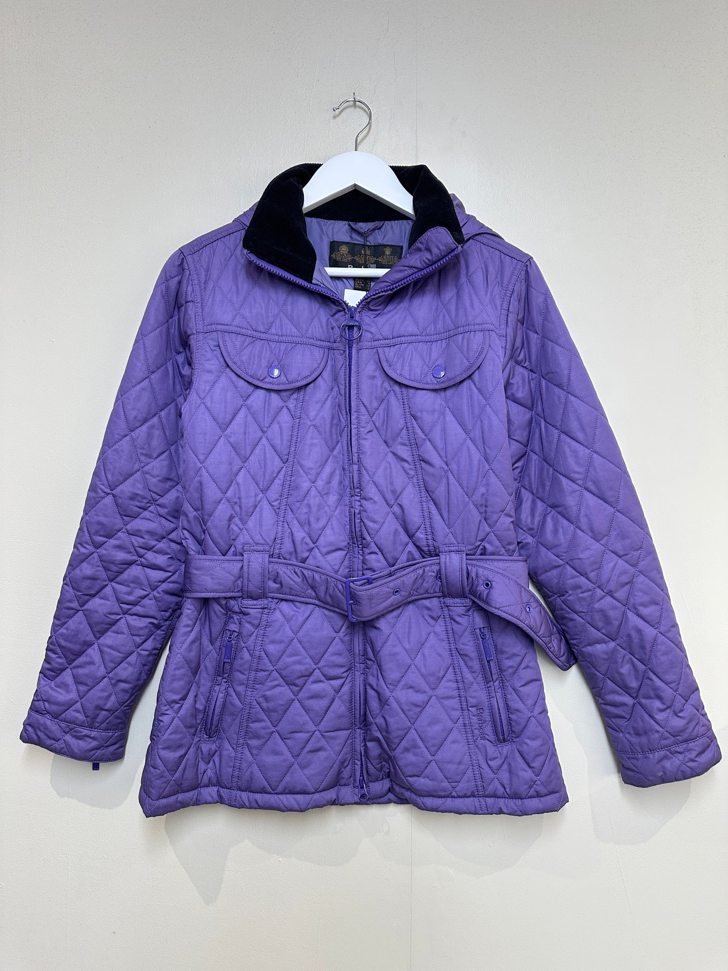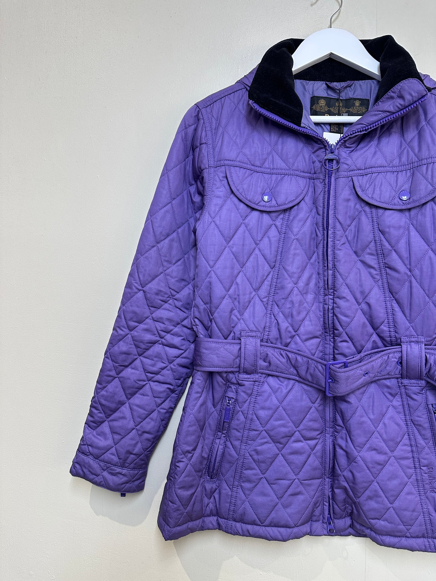 Barbour Purple Grace Silken Quilt Belted Jacket - Size 12