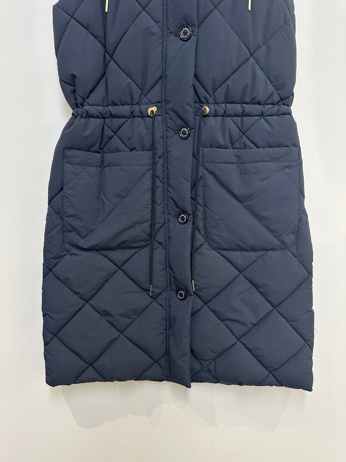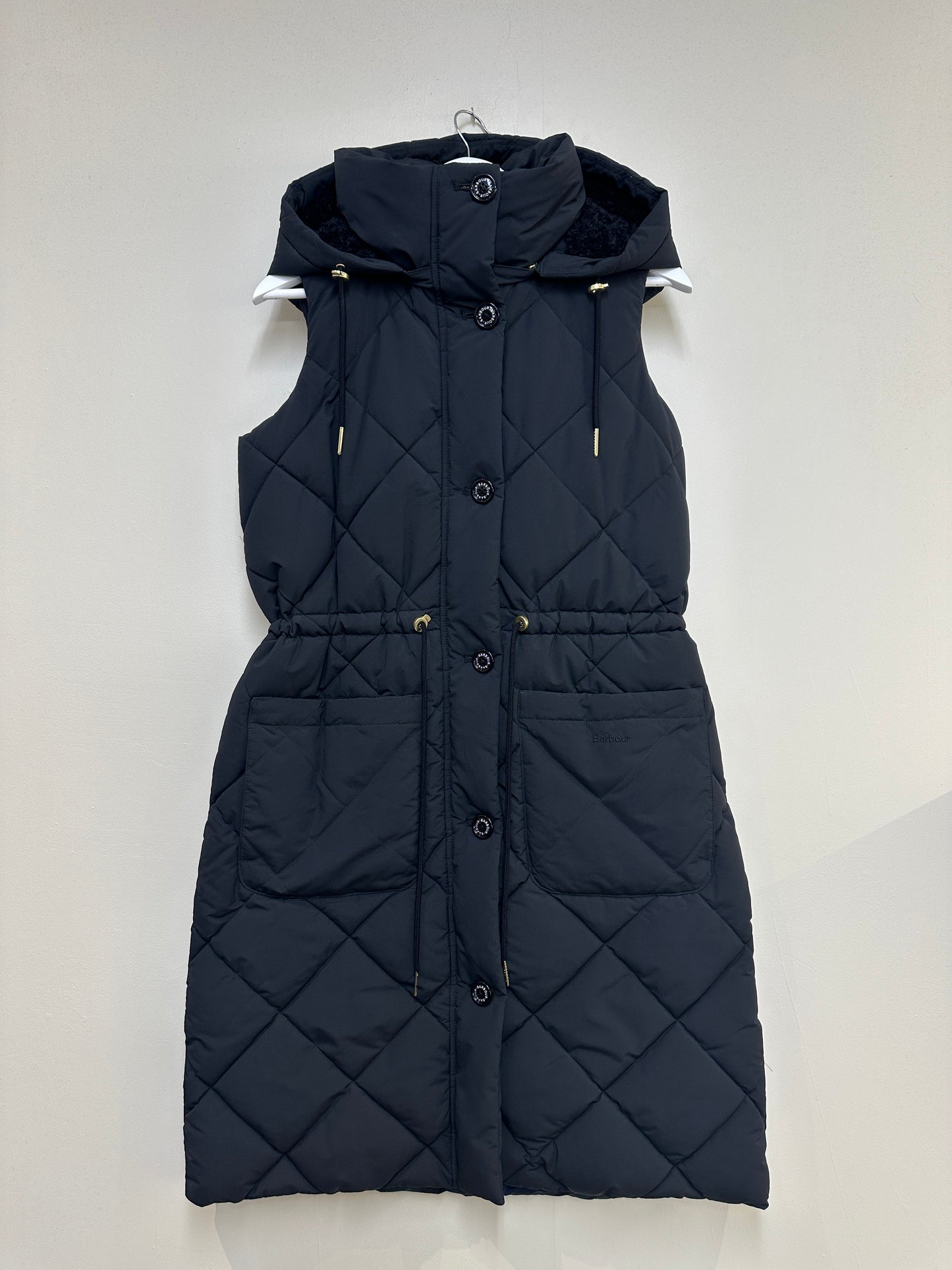 Barbour Black Orinsay Padded Long Hooded Gilet - Size 10