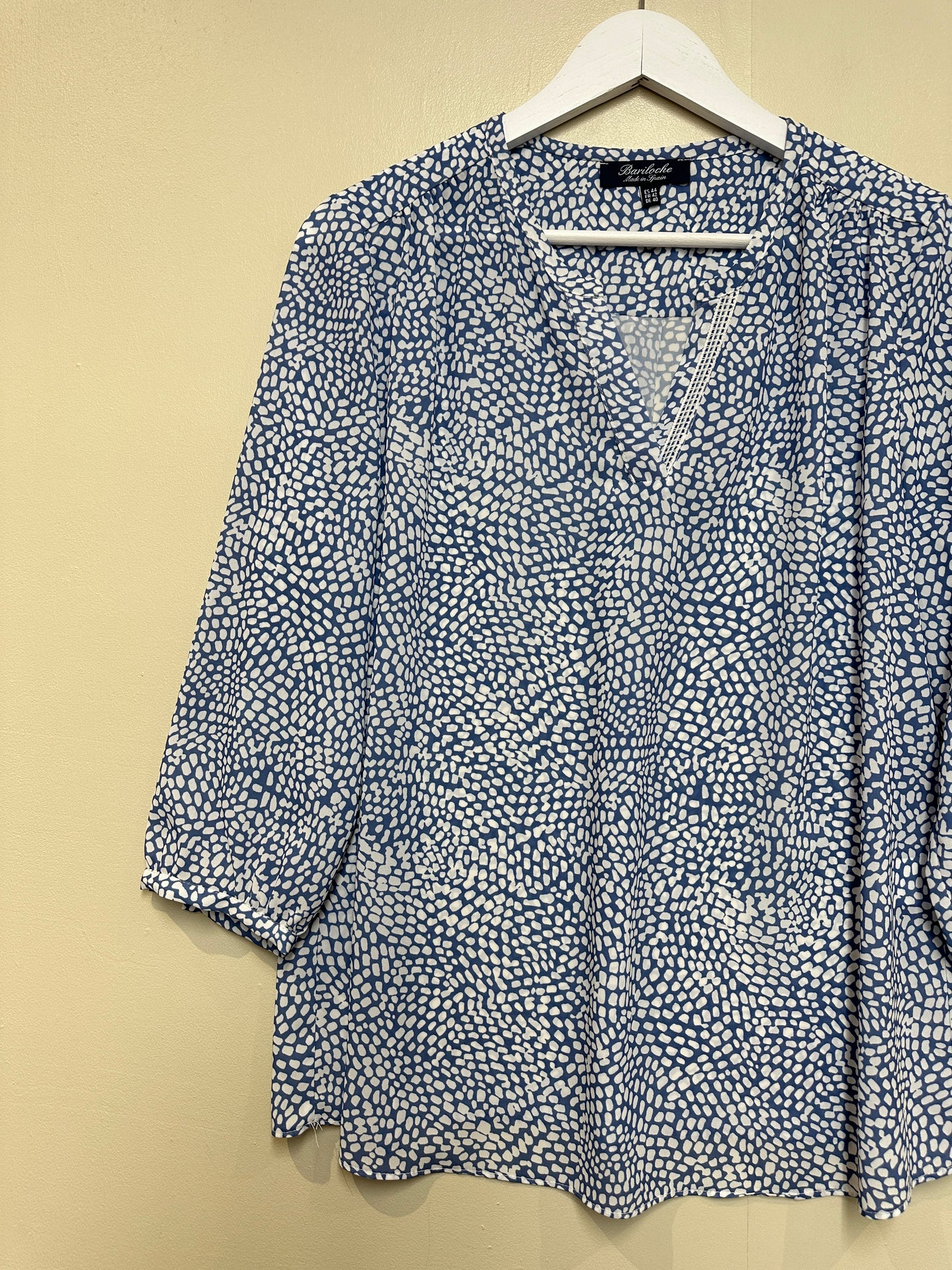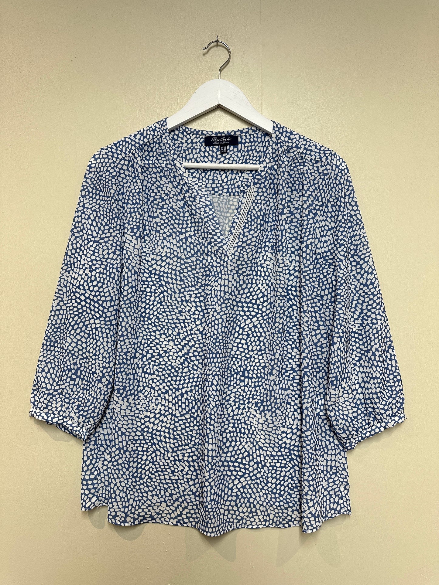 Bariloche Blue V-Neck Patterned Blouse - Size 12