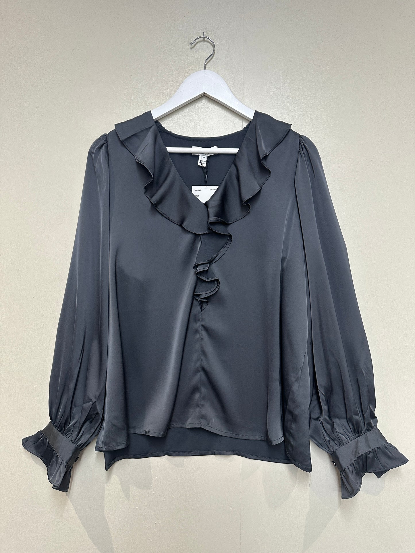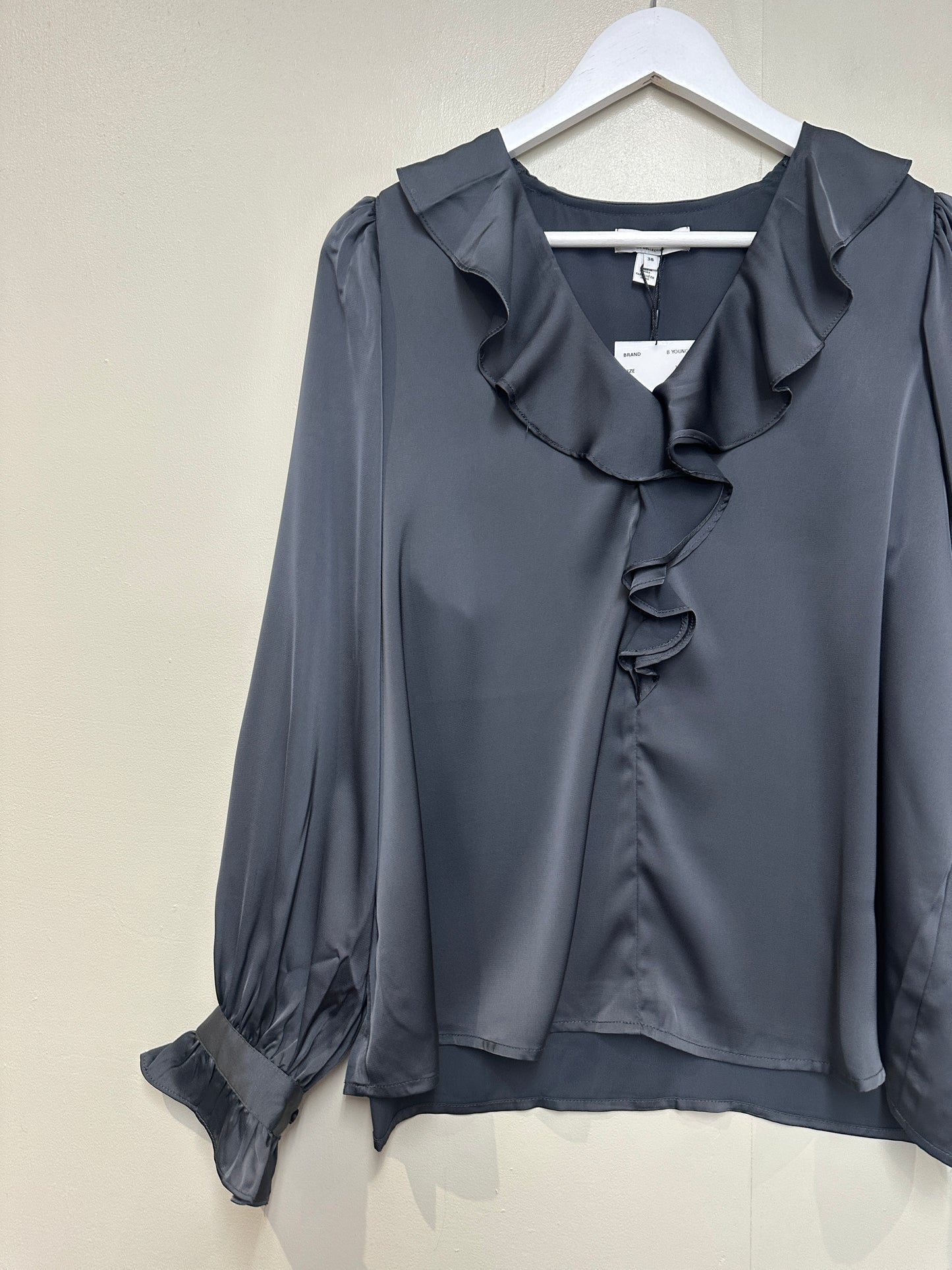 B Young Grey Byflair Frill Blouse - Size 12-14