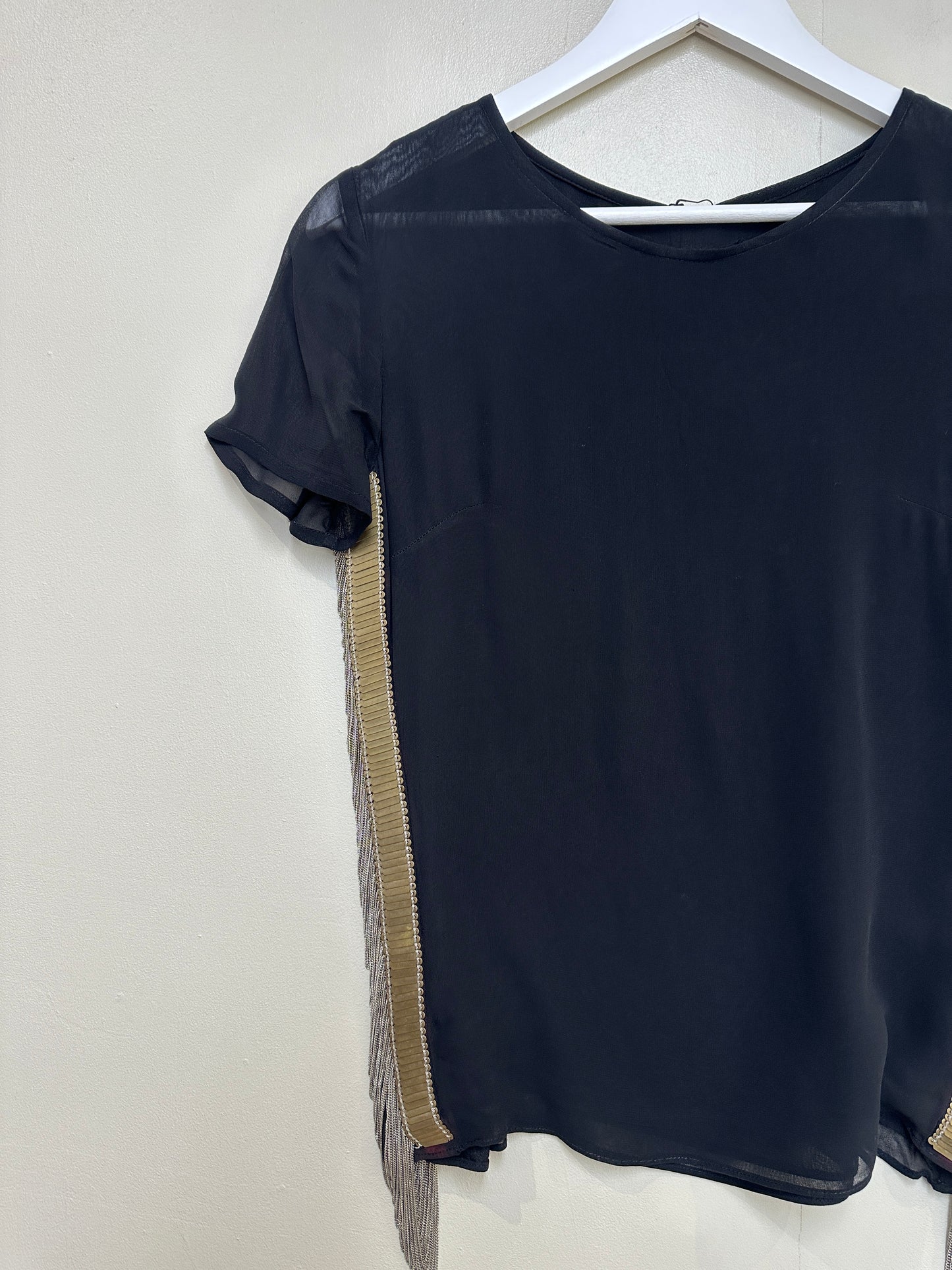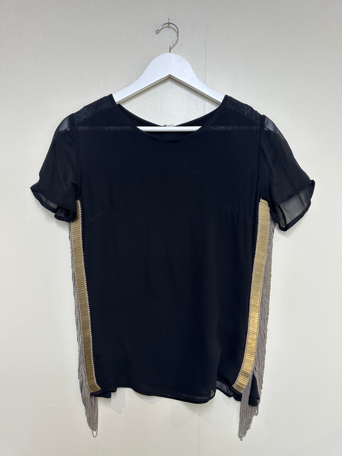 All Saints Black Embellished Side T-Shirt Top - Size S