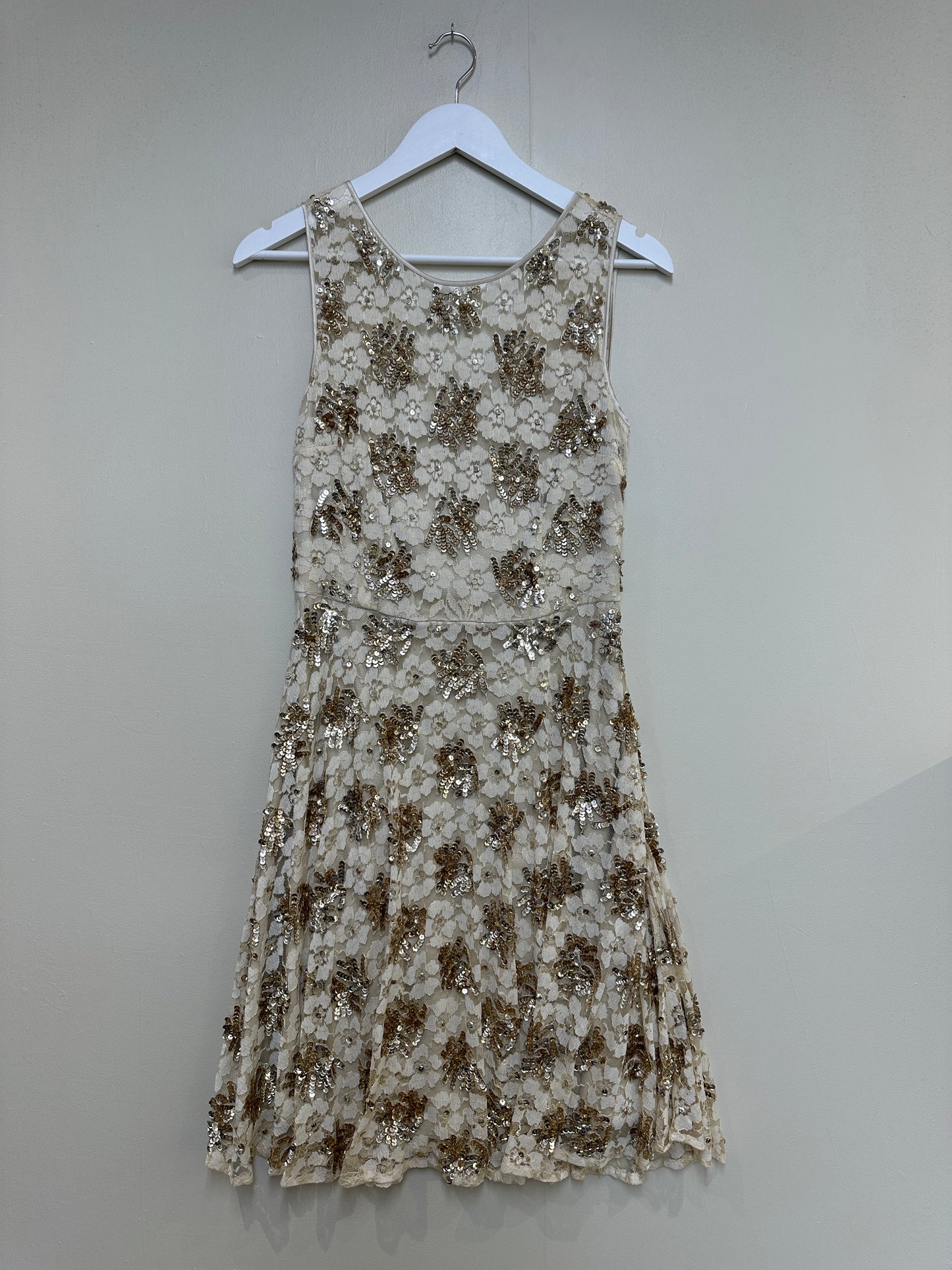 Alannah Hill Gold Sequin Fit & Flare Dress - Size 12