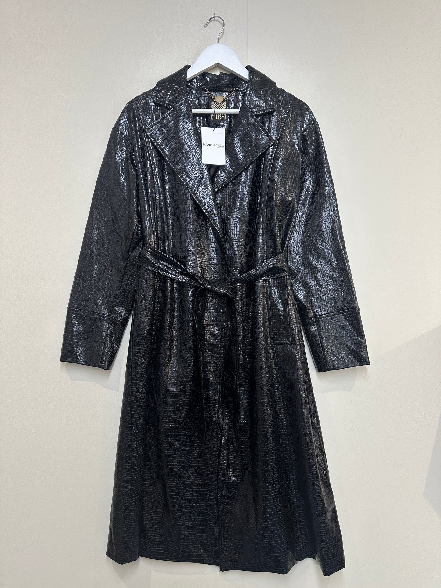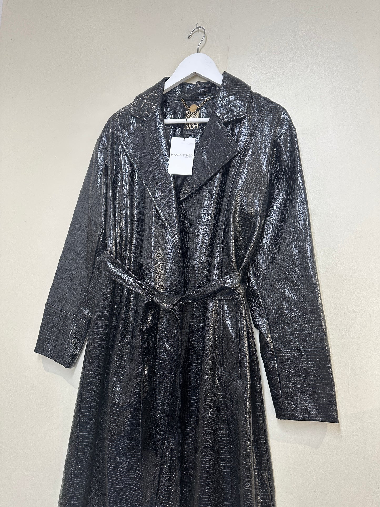 Biba Black Mock Croc Faux Leather Trench - Size 8