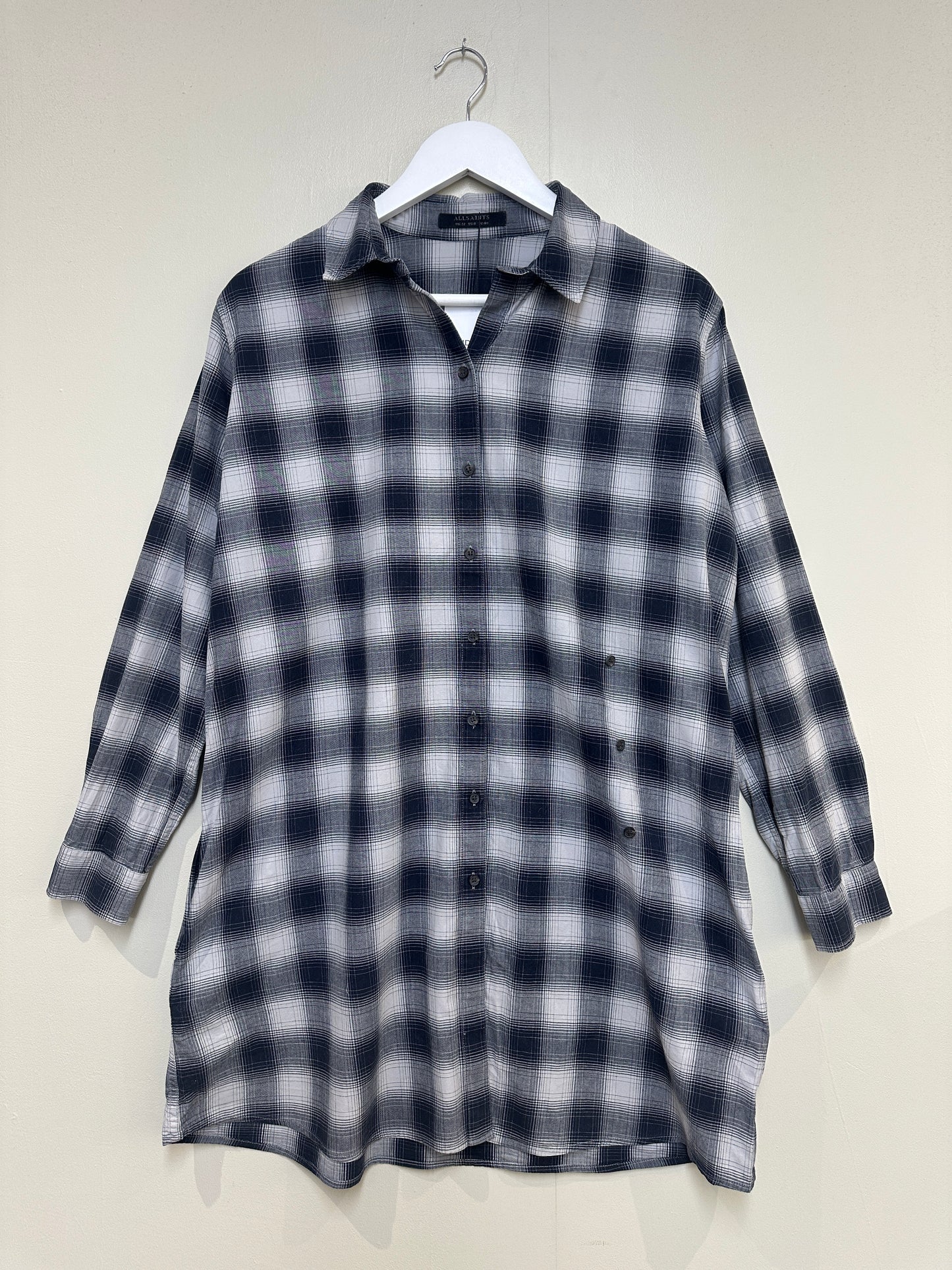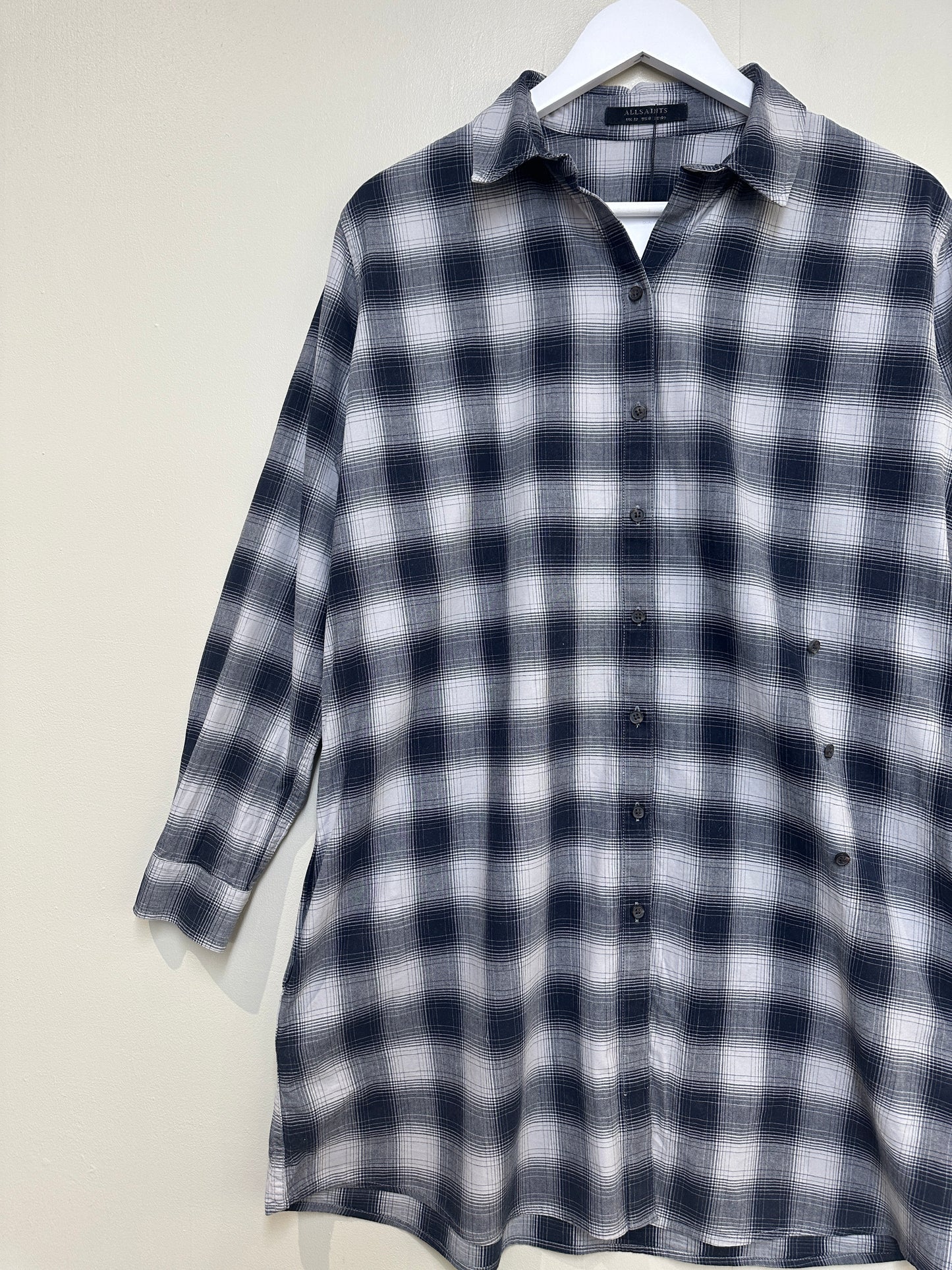 All Saints Grey Navy Asymmetric button Up Check Shirt - Size 12