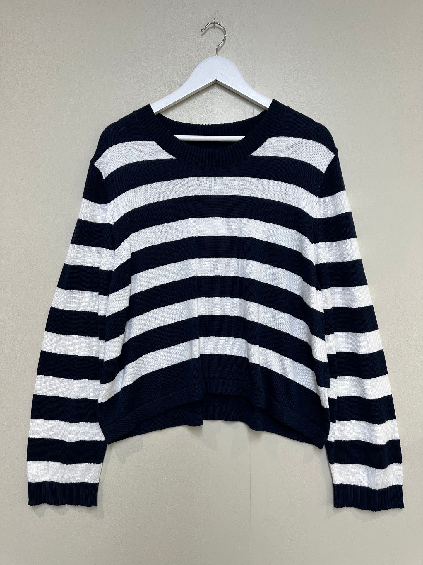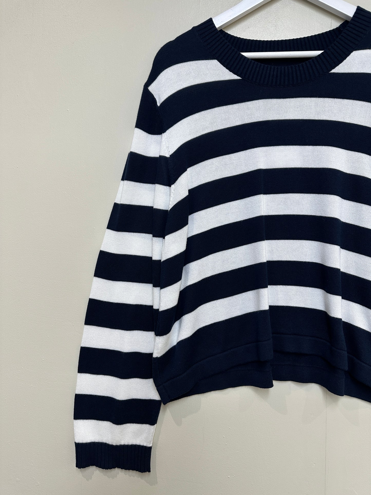 Barbour Navy White Cotton Blend Stripe Jumper - Size 16