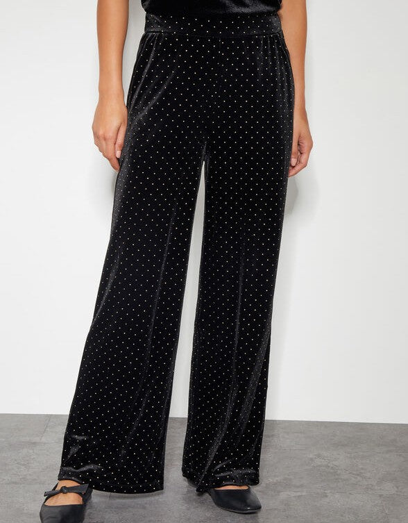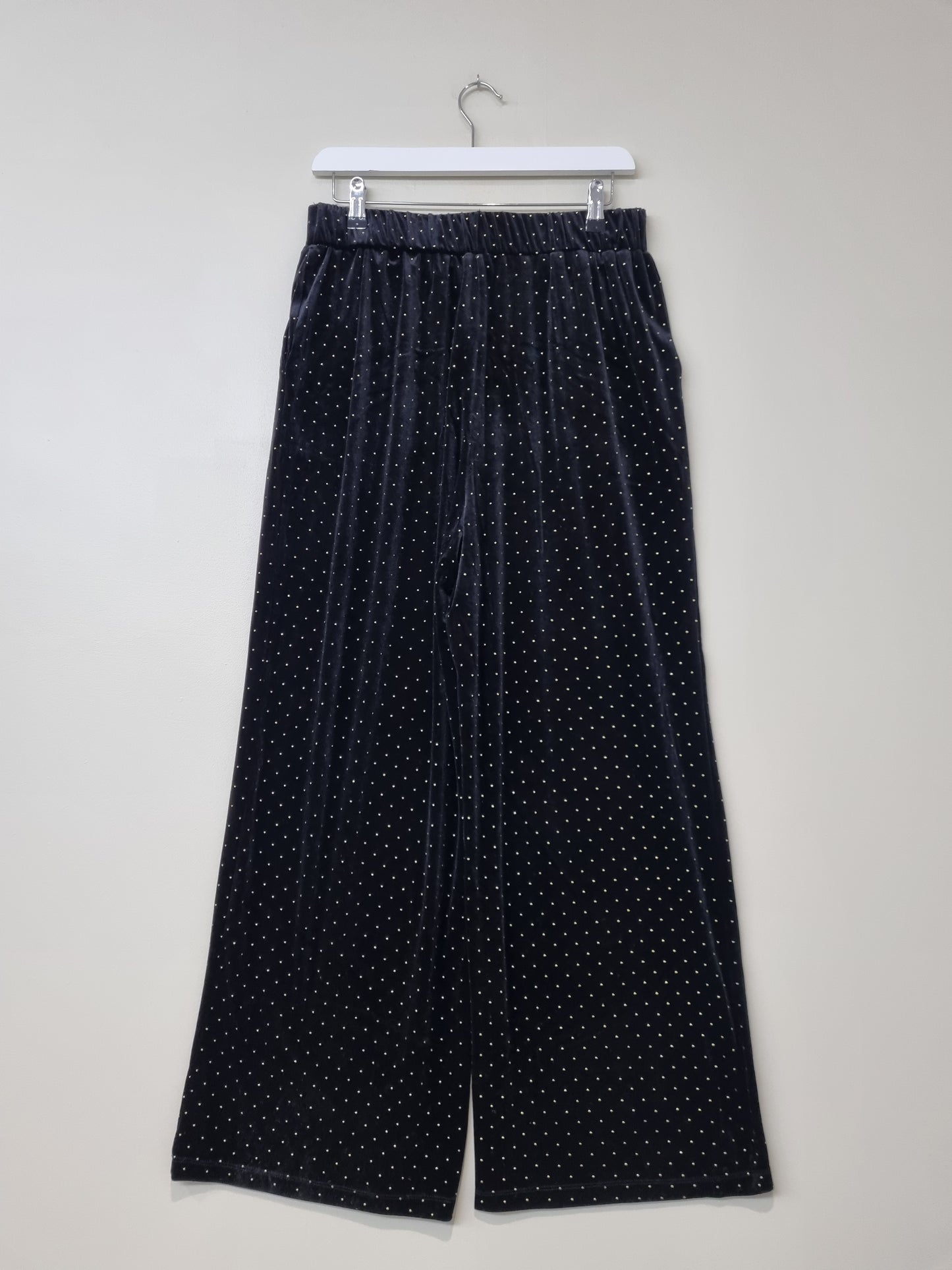 Add Monsoon Black Gold Nala Studded Velvet Wide Leg Trousers - Size M to the cart
