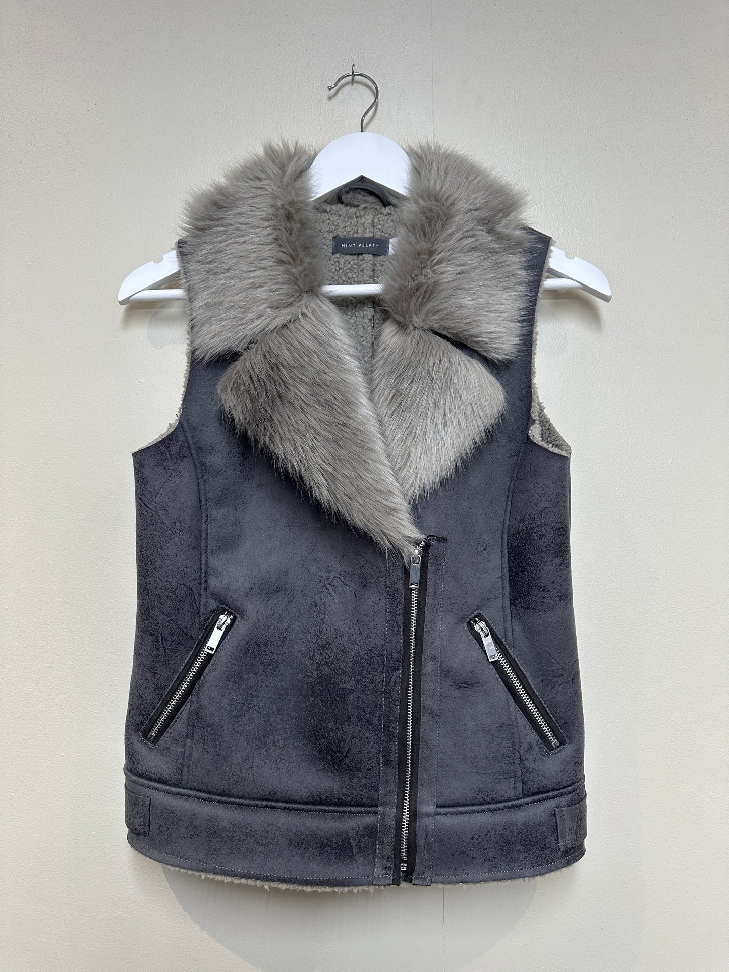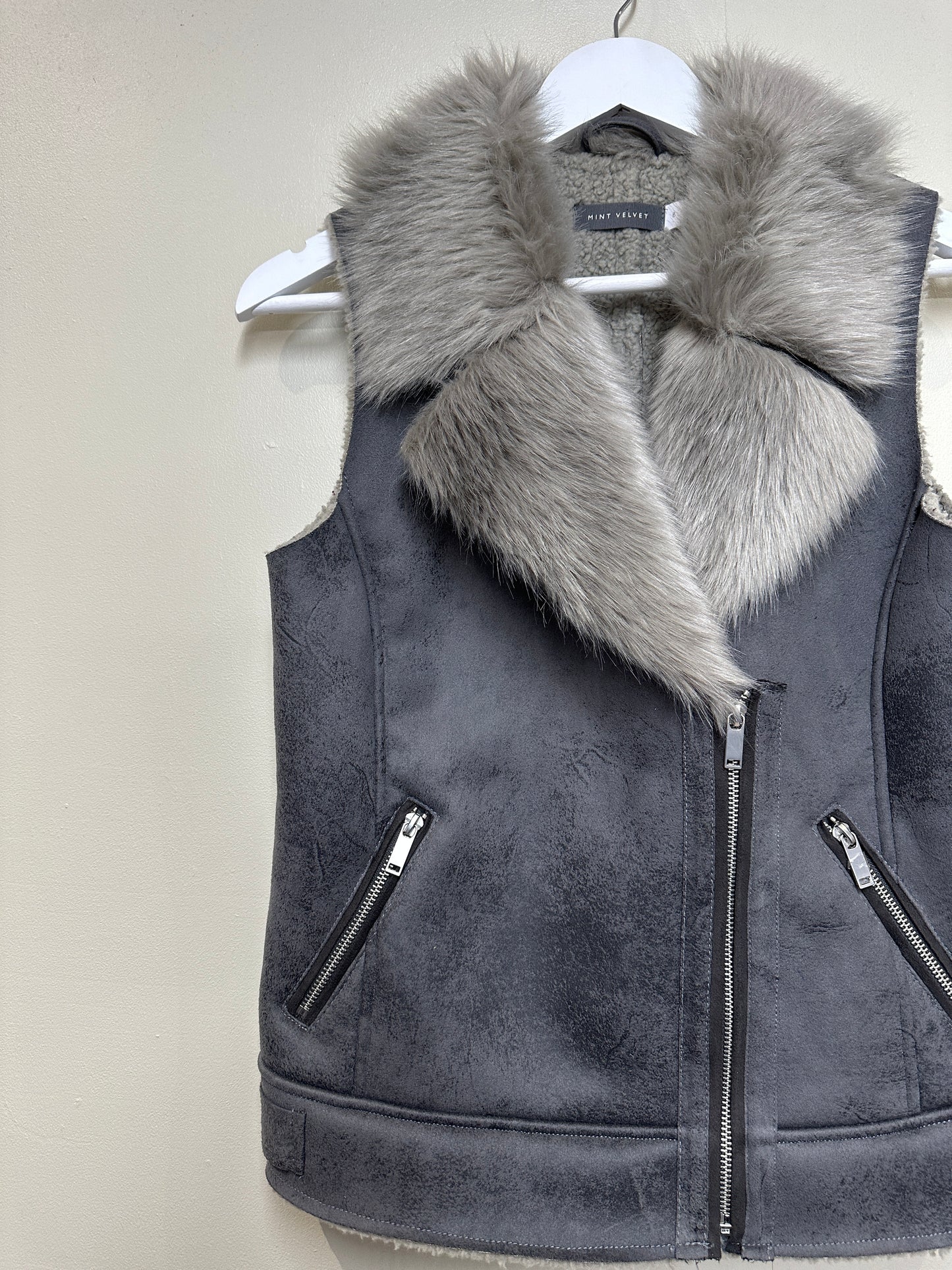 Mint Velvet Grey Aviator Faux Suede Gilet - Size 8