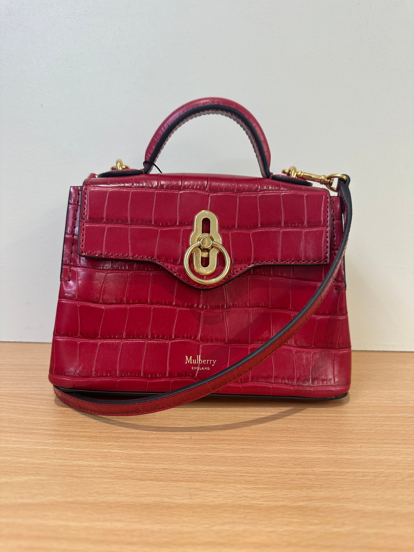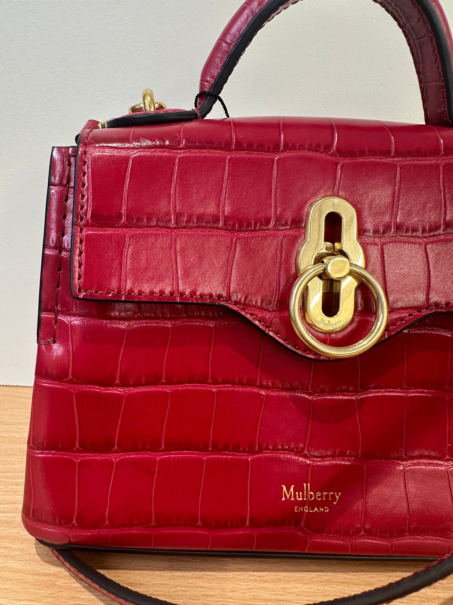 Mulberry Hibiscus Red Micro Seaton Top Handle Croc Print Leather Bag