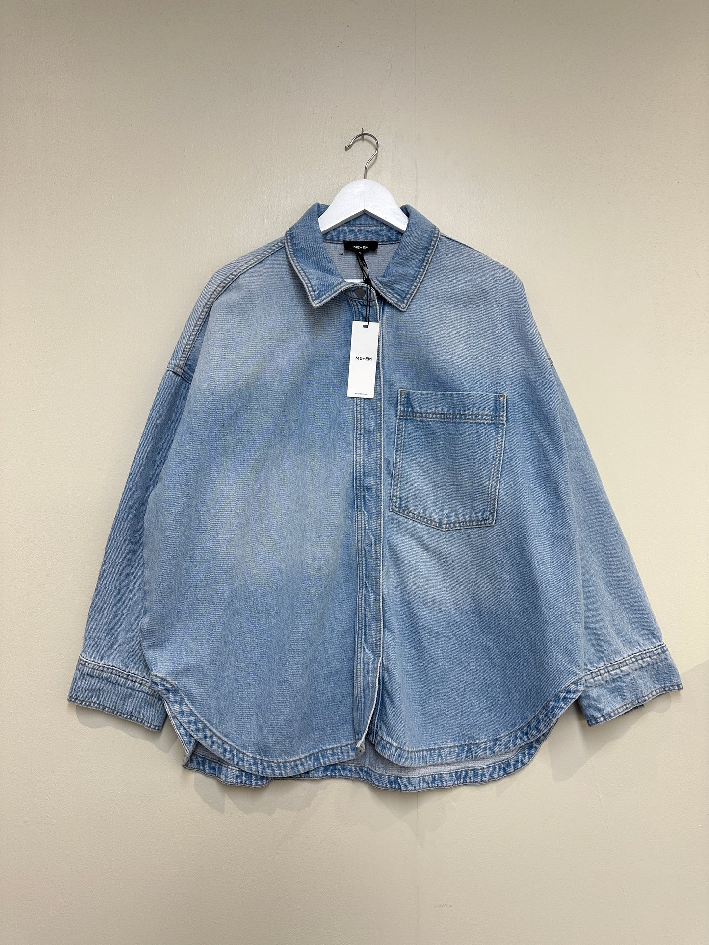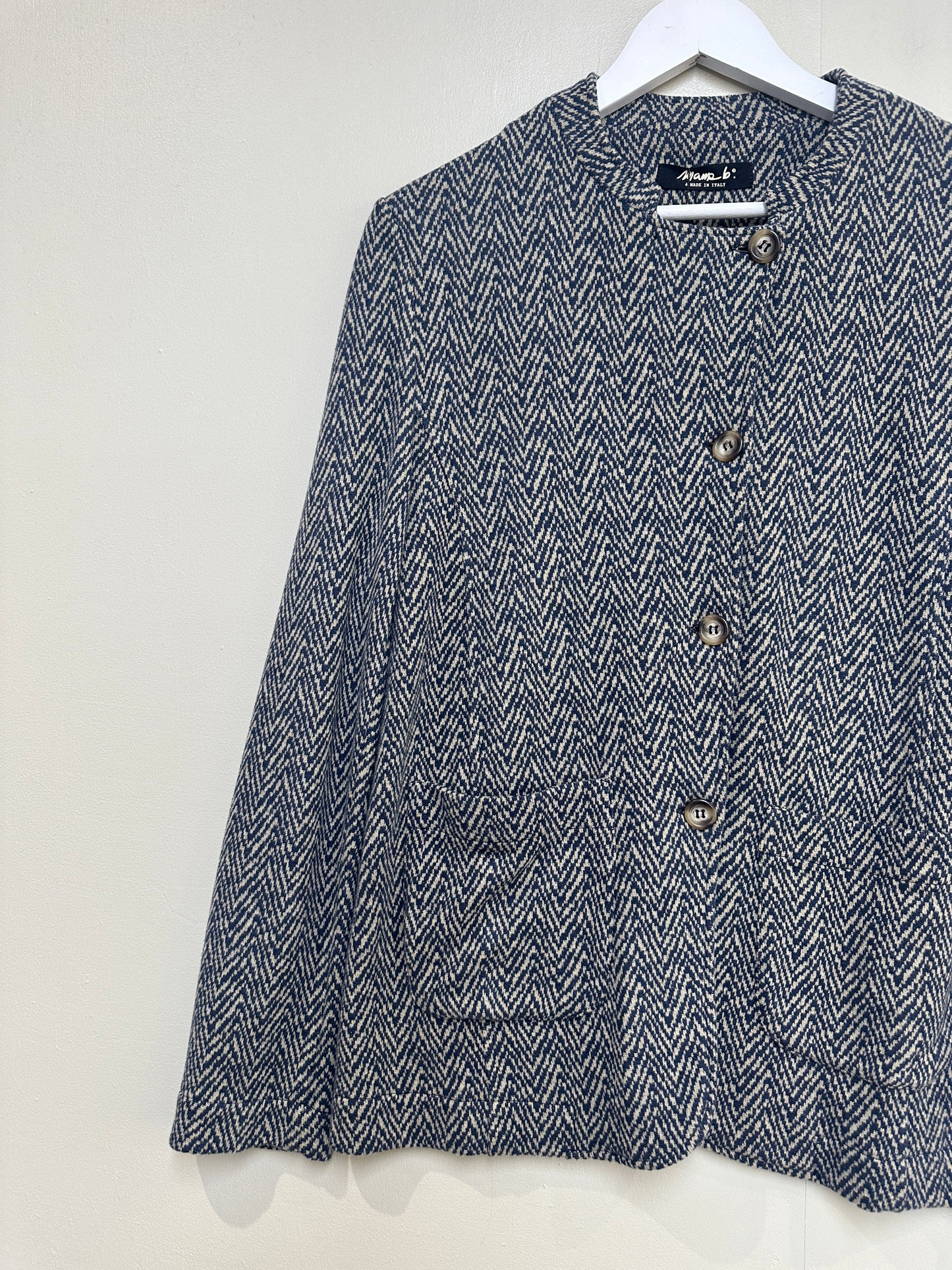 Add Mama B Grey Blue Cotton Blend Boxy Jacket - Size S to the cart