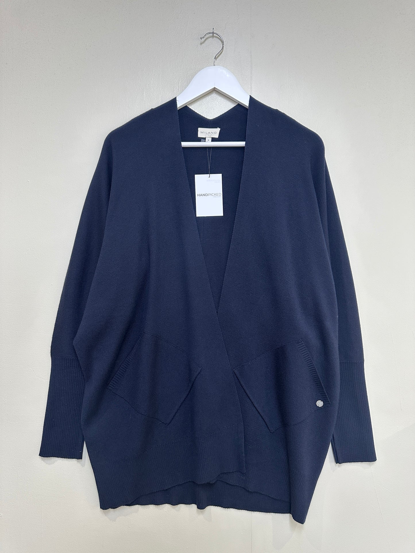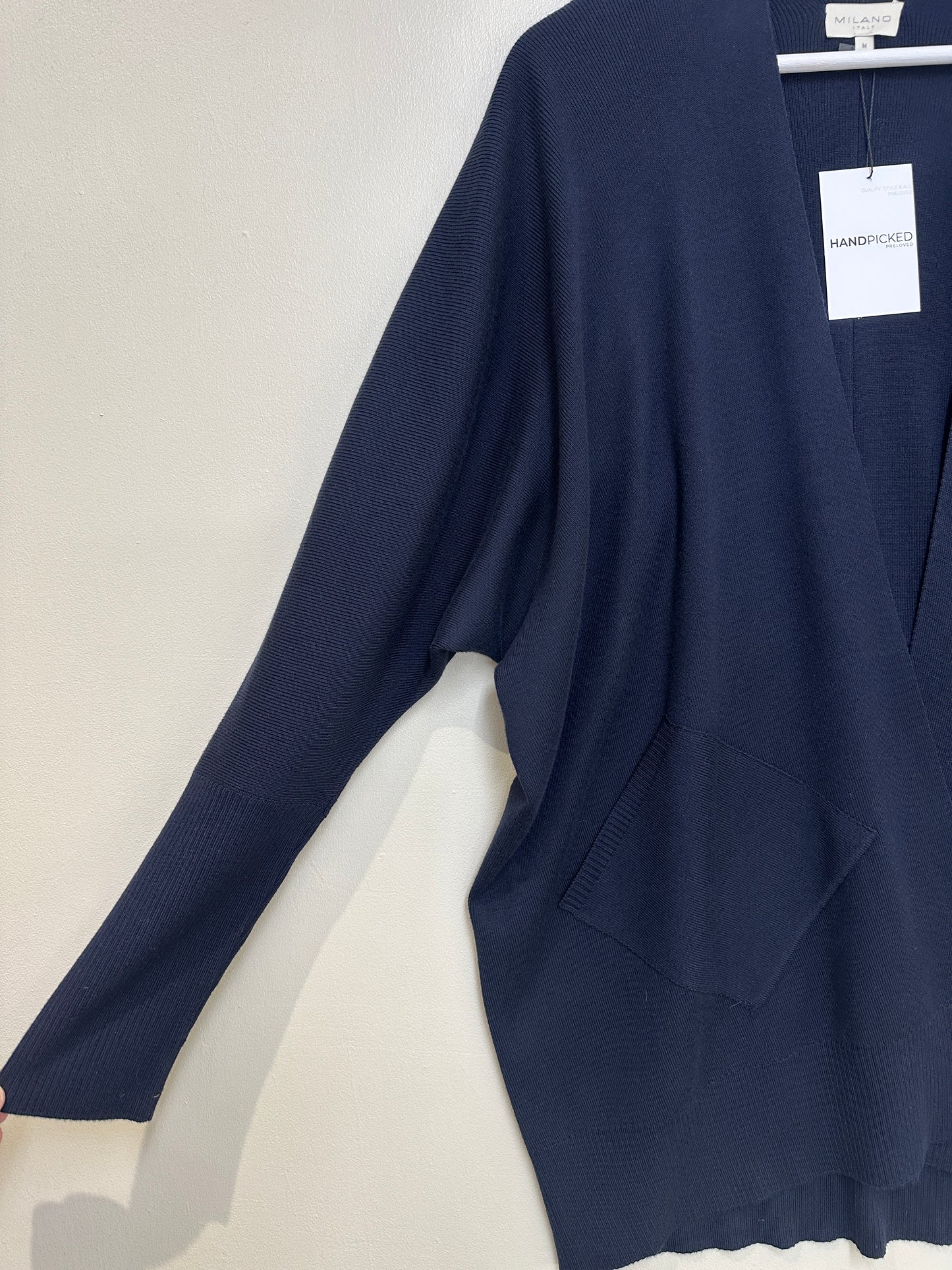 Milano Navy Blue Fine Knit Open Cardigan - Size M