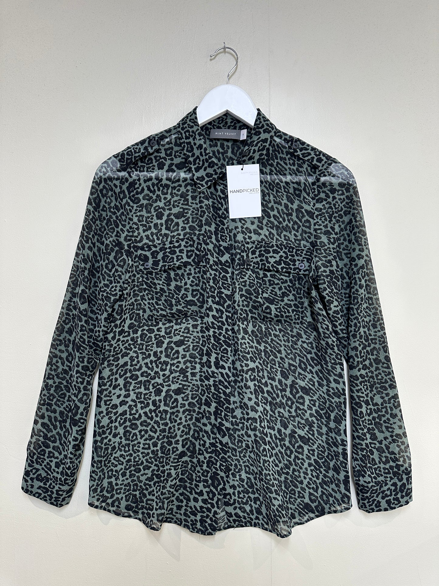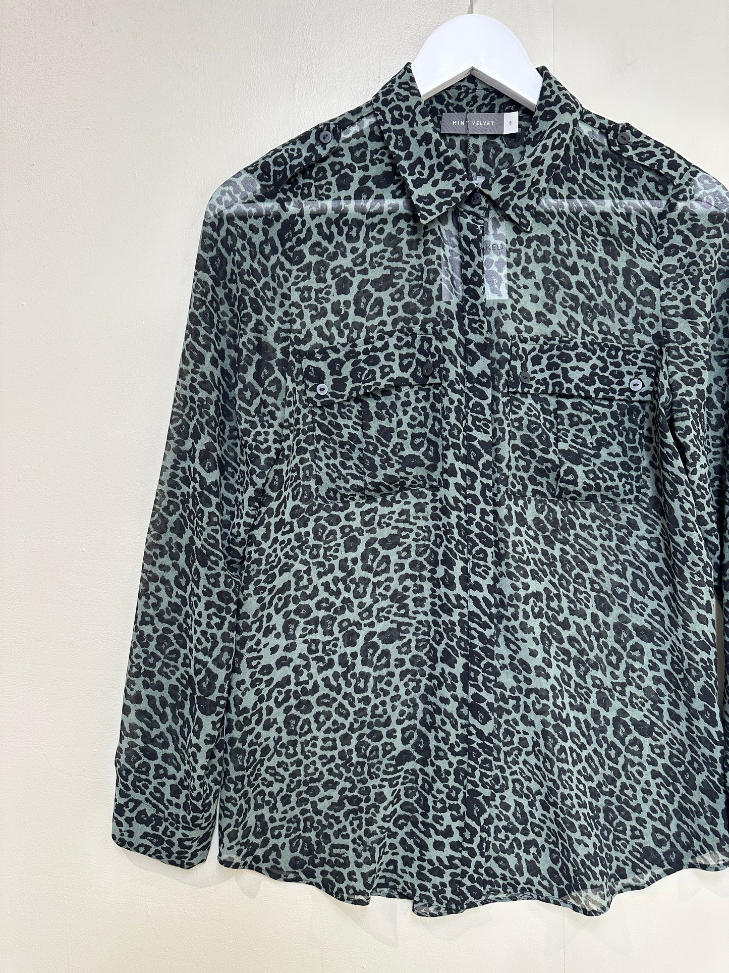 Mint Velvet Green Sheer Animal Print Shirt - Size 8