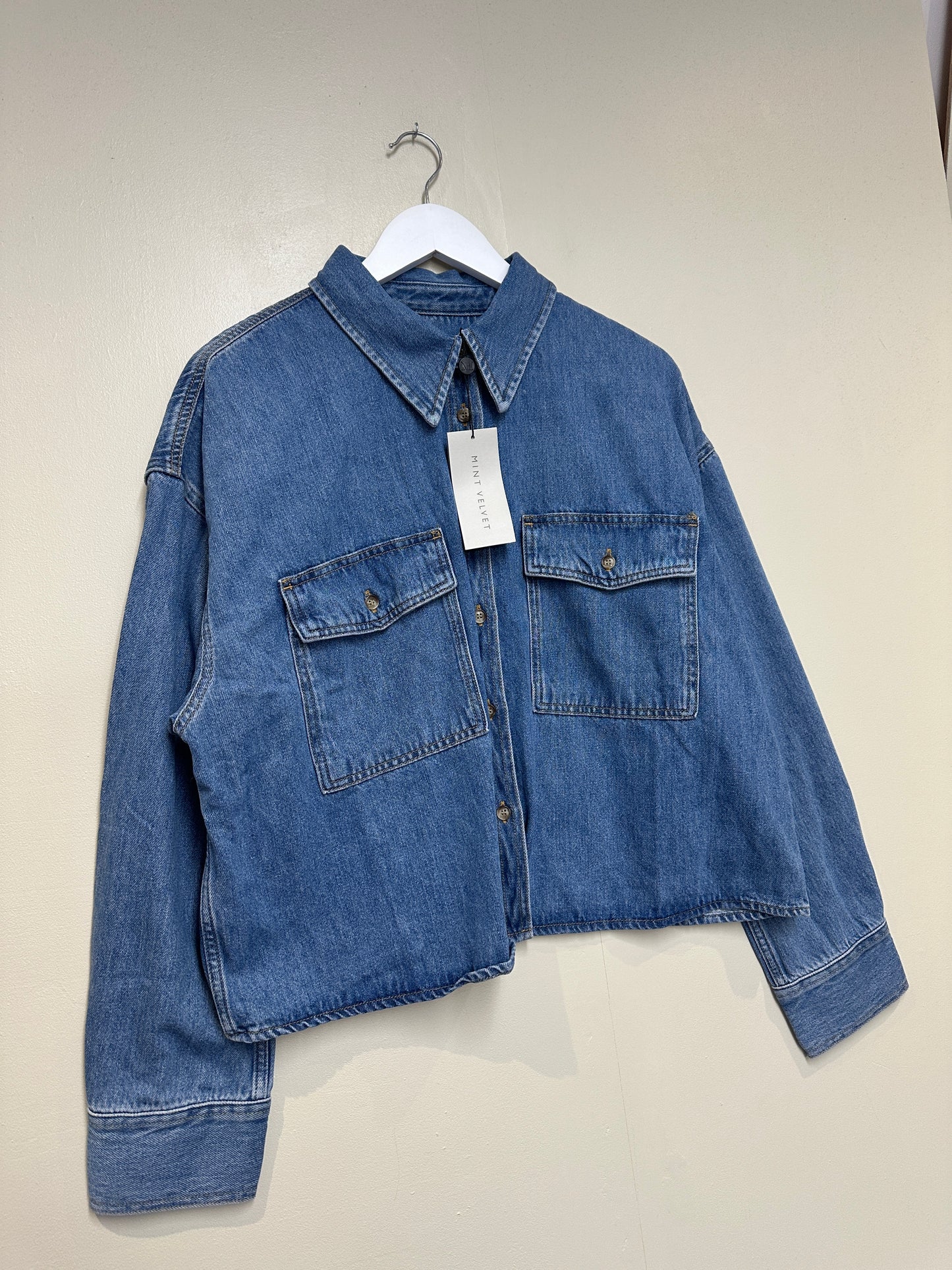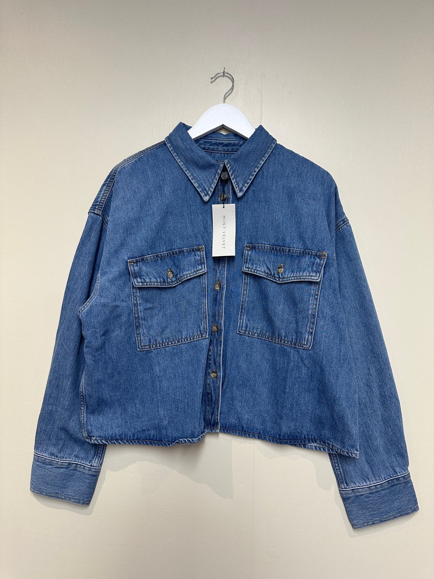 Mint Velvet Blue Indigo Cropped Denim Shirt - Size XL