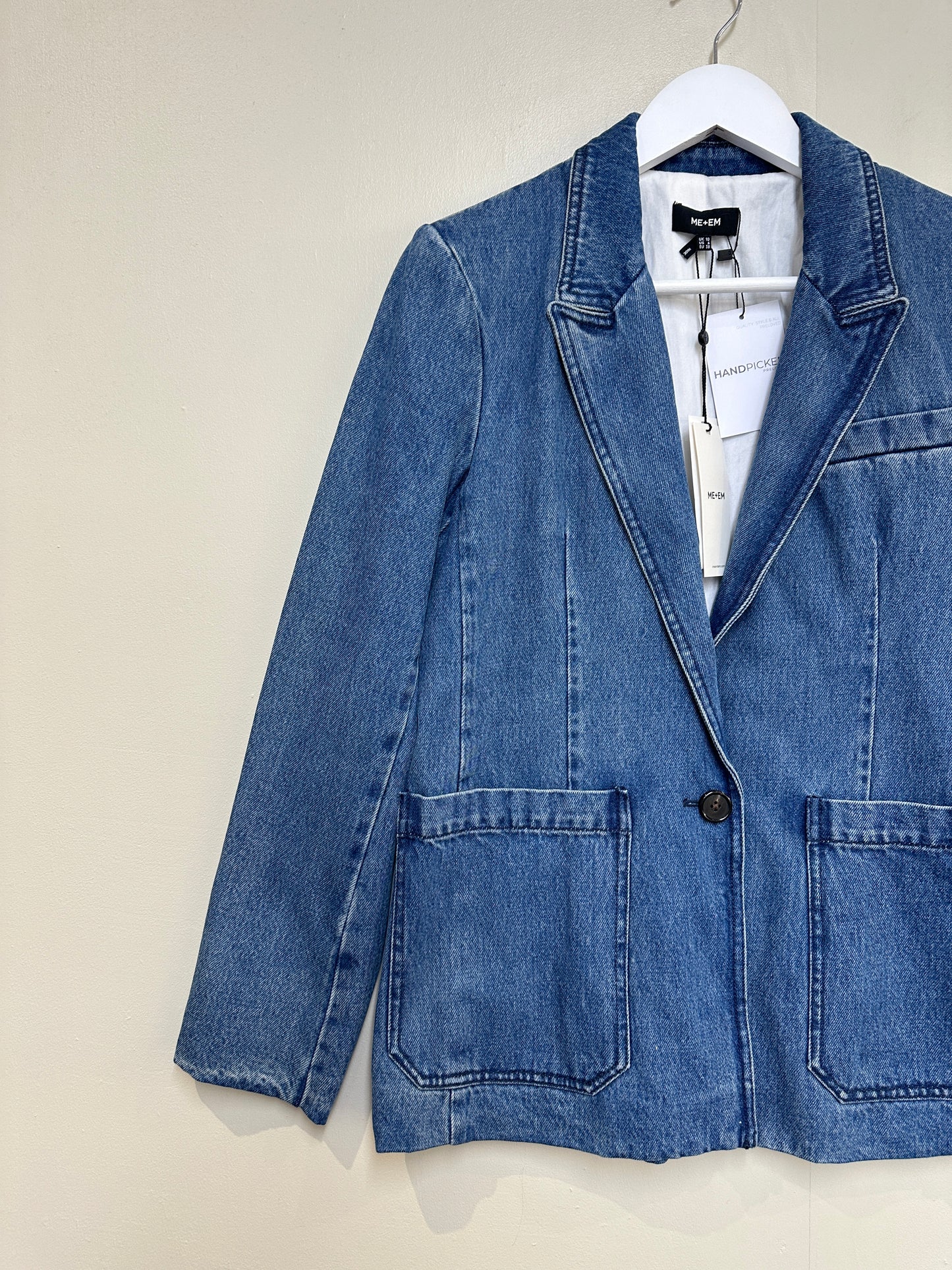 Mama B Grey Blue Cotton Blend Boxy Jacket - Size S