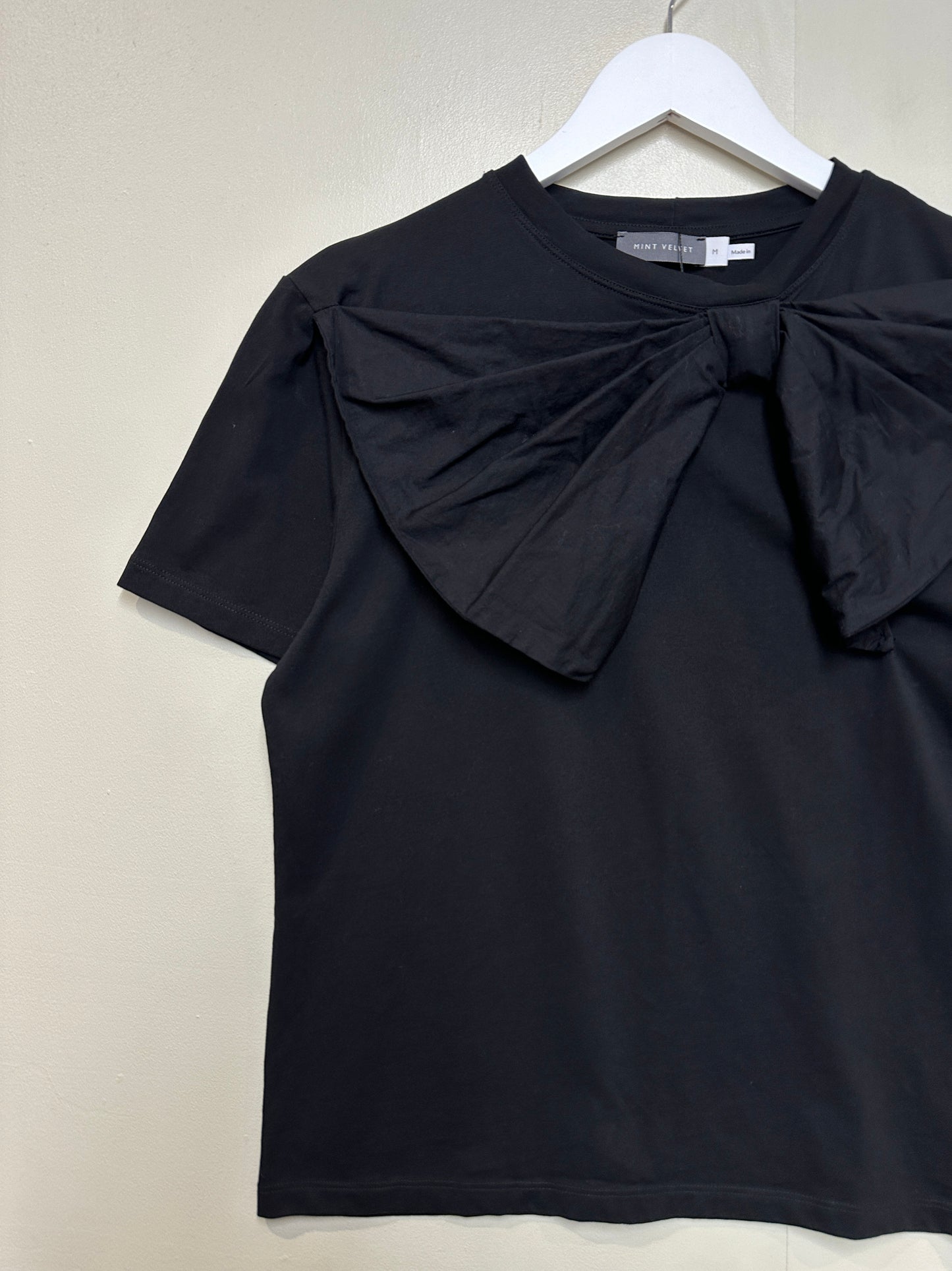 Add Mint Velvet Black Oversized Bow T-Shirt - Size M to the cart