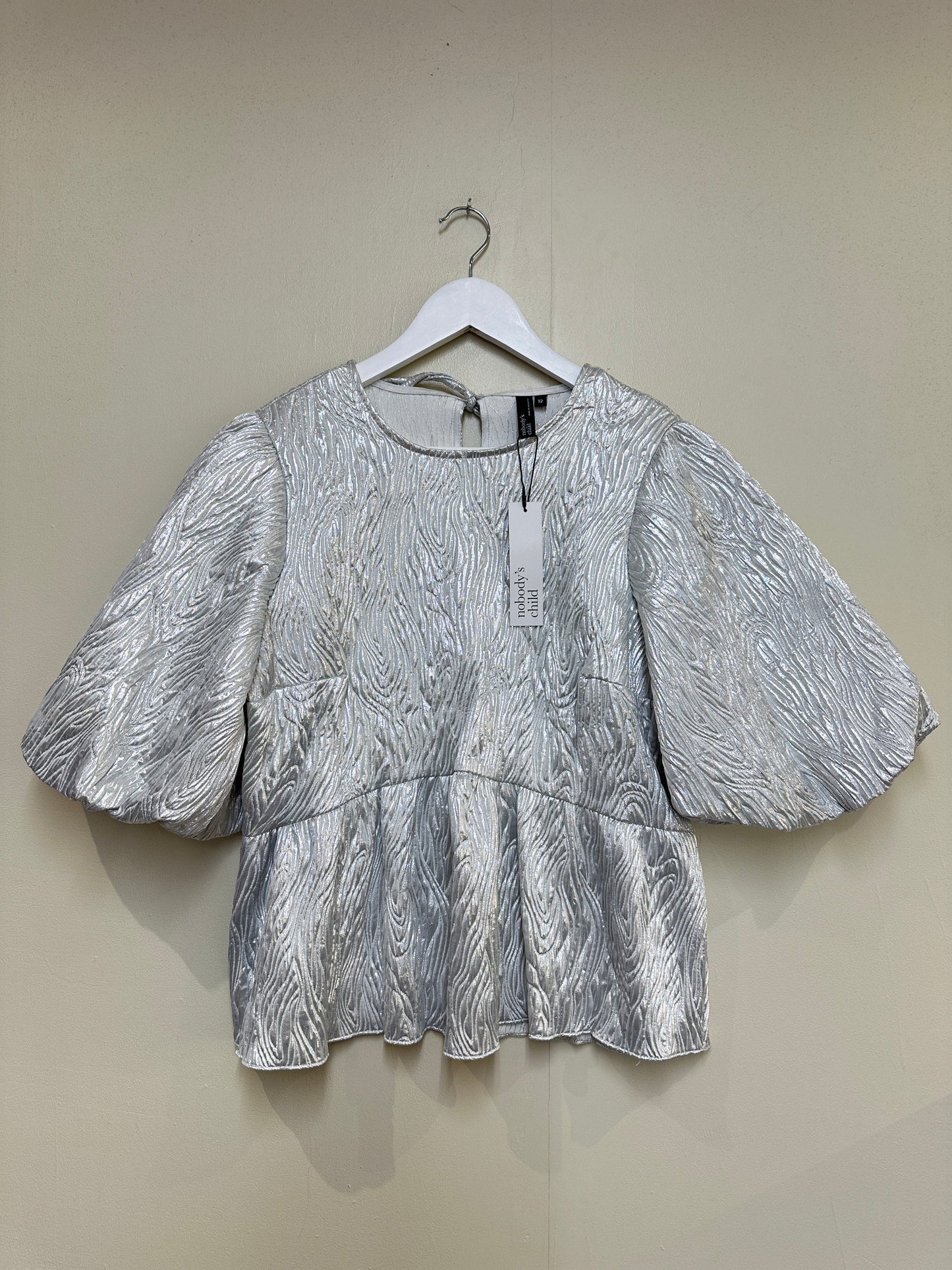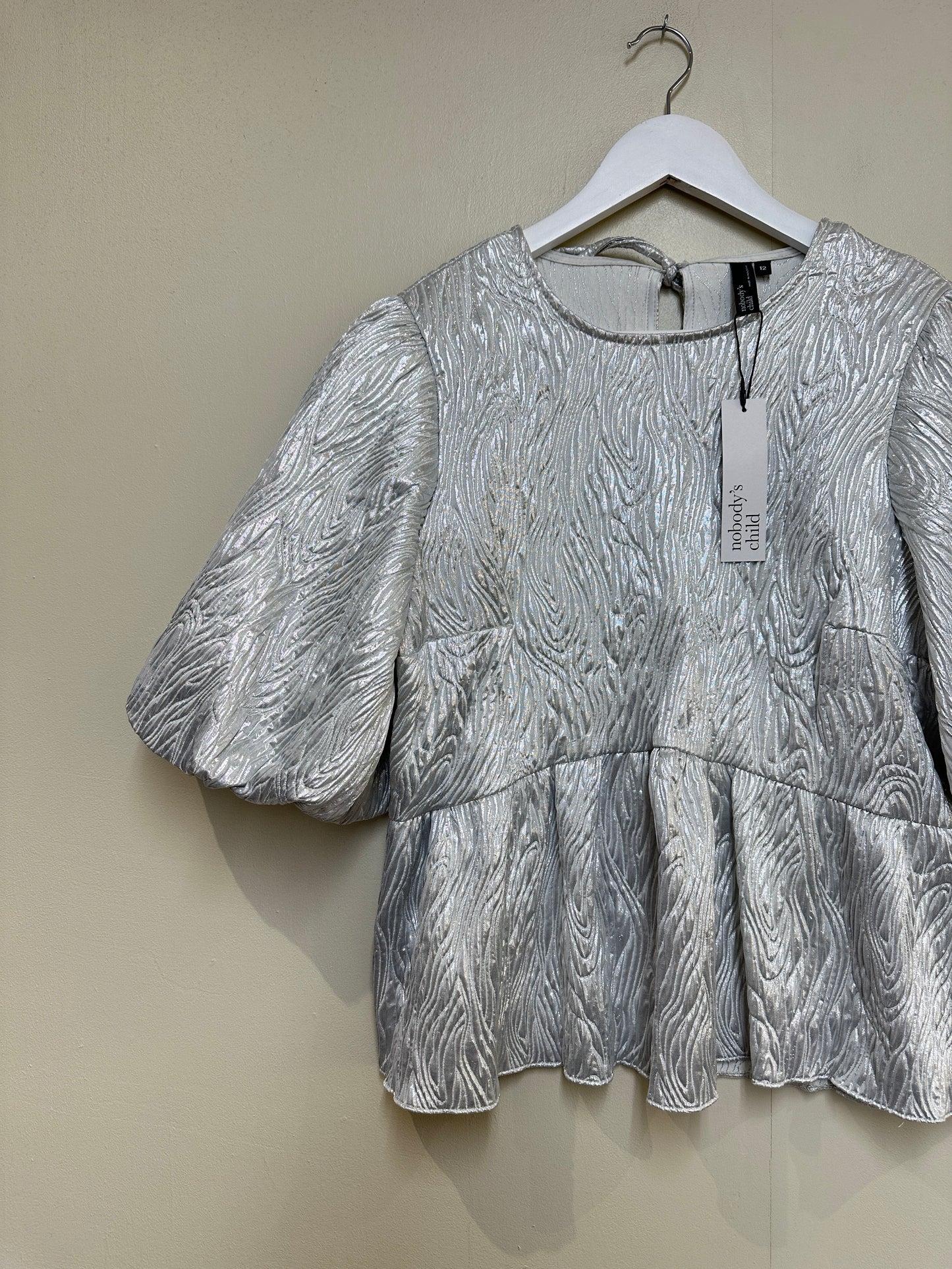 Add Nobody's Child Silver Puff Sleeve Metallic Plenum Top - Size 12 to the cart