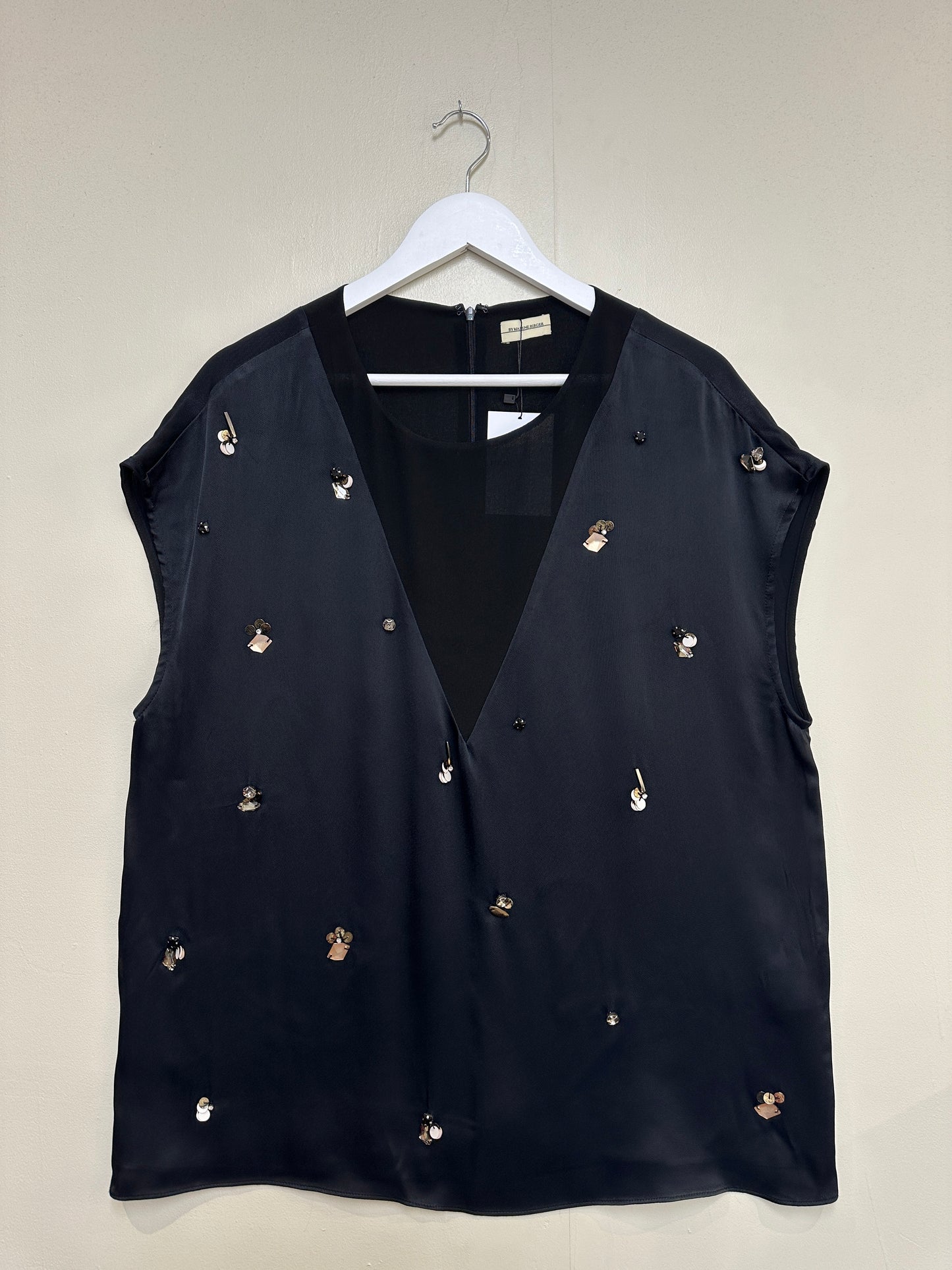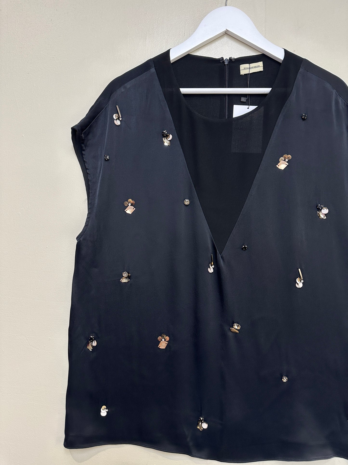 Malene Birger Black Sequin Boxy Short Sleeve Top - Size 12