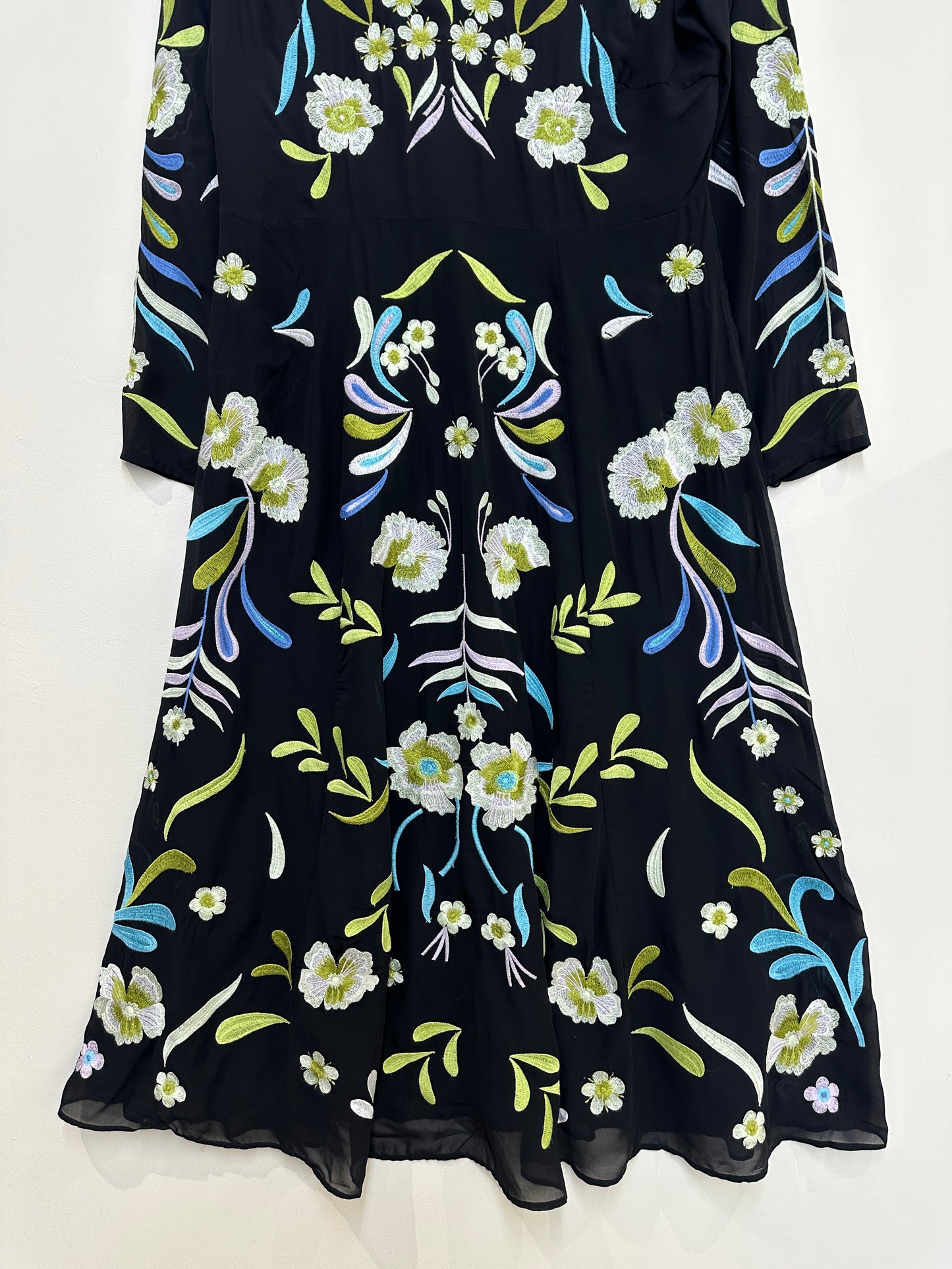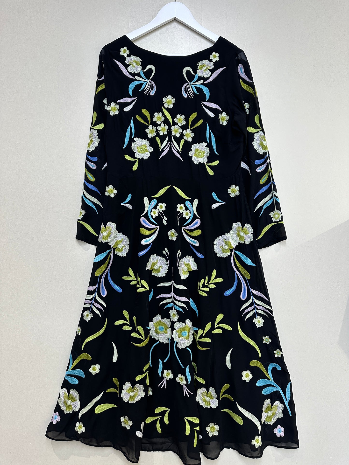 Monsoon Black Green Embroidered Maxi Floral Dress - Size 14