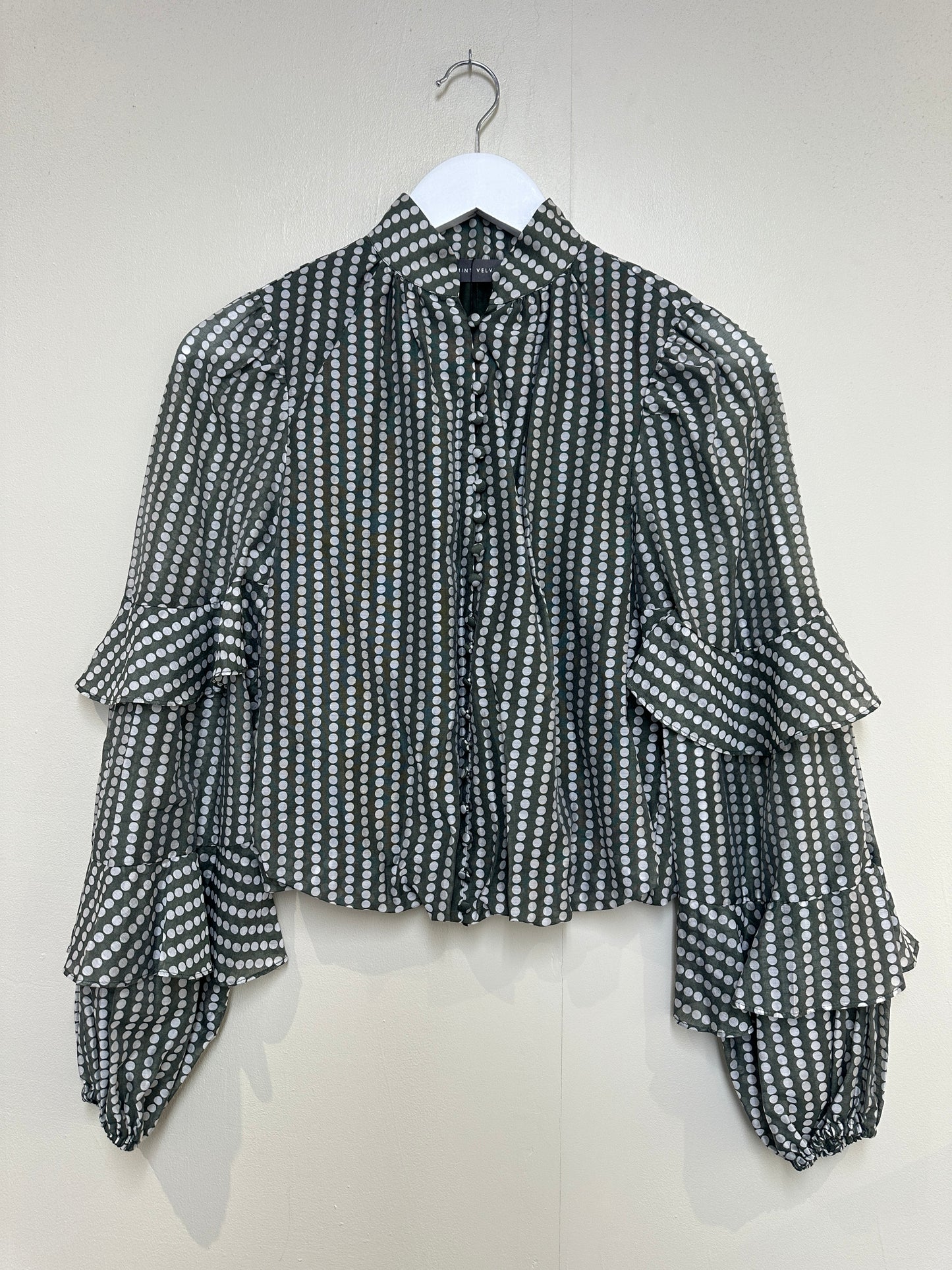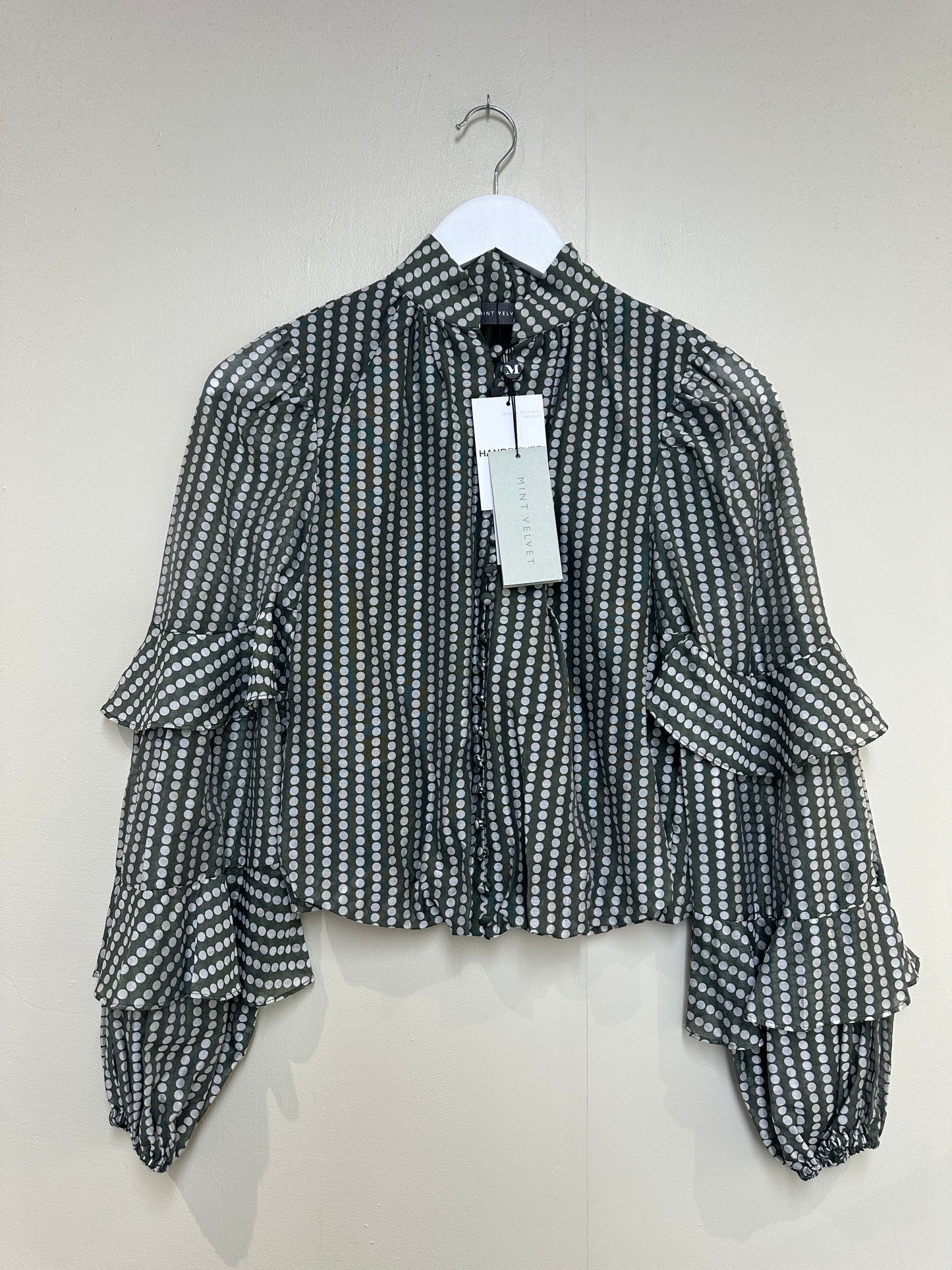 Mint Velvet Green White Spotty Cropped Ruffle Blouse - Size 6-8