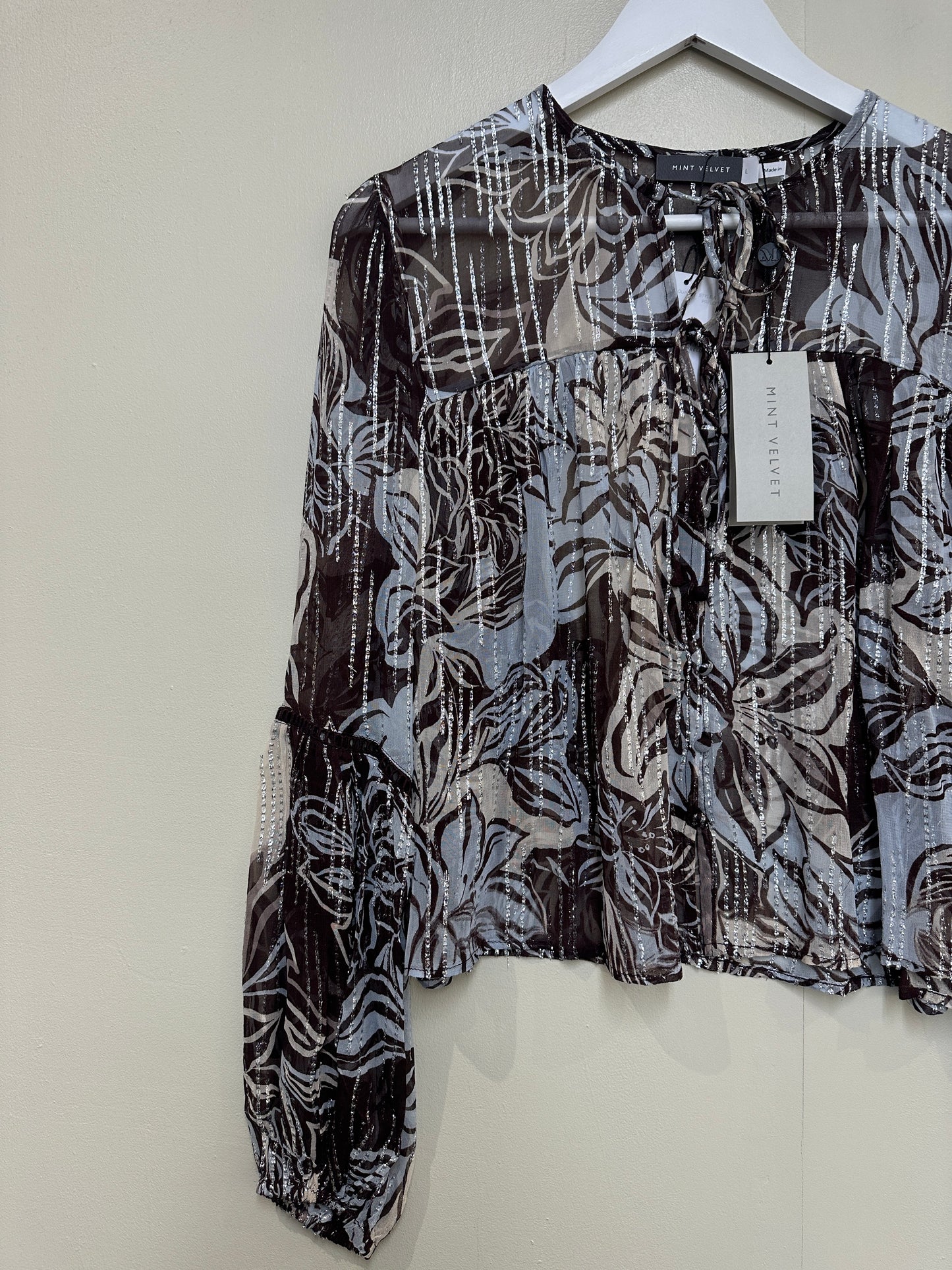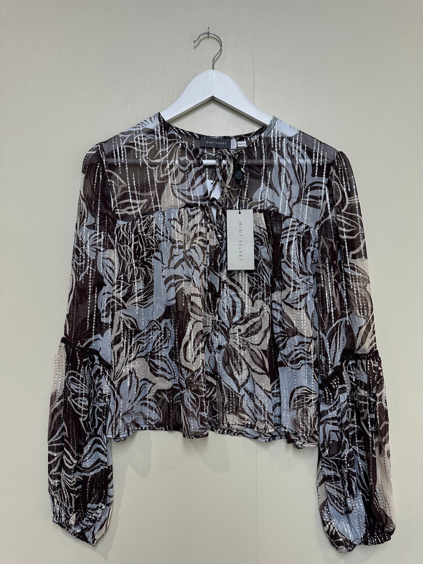 Mint Velvet Brown Mix Floral Print Metallic Blouse - Size L