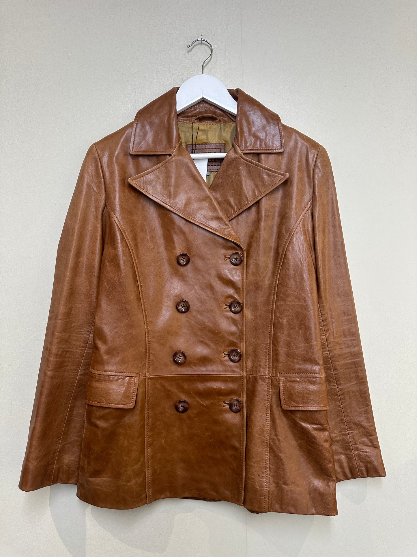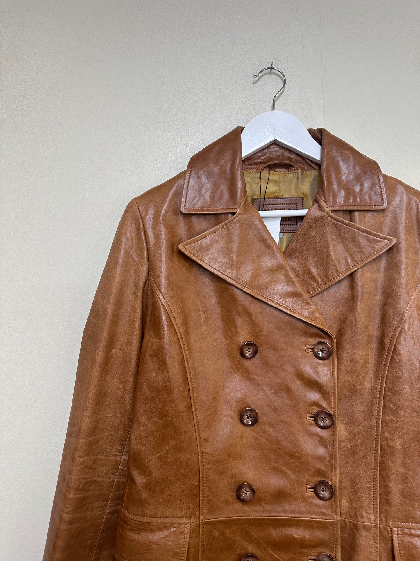 Add M&S Tan Vintage Leather Jacket - Size 10 to the cart