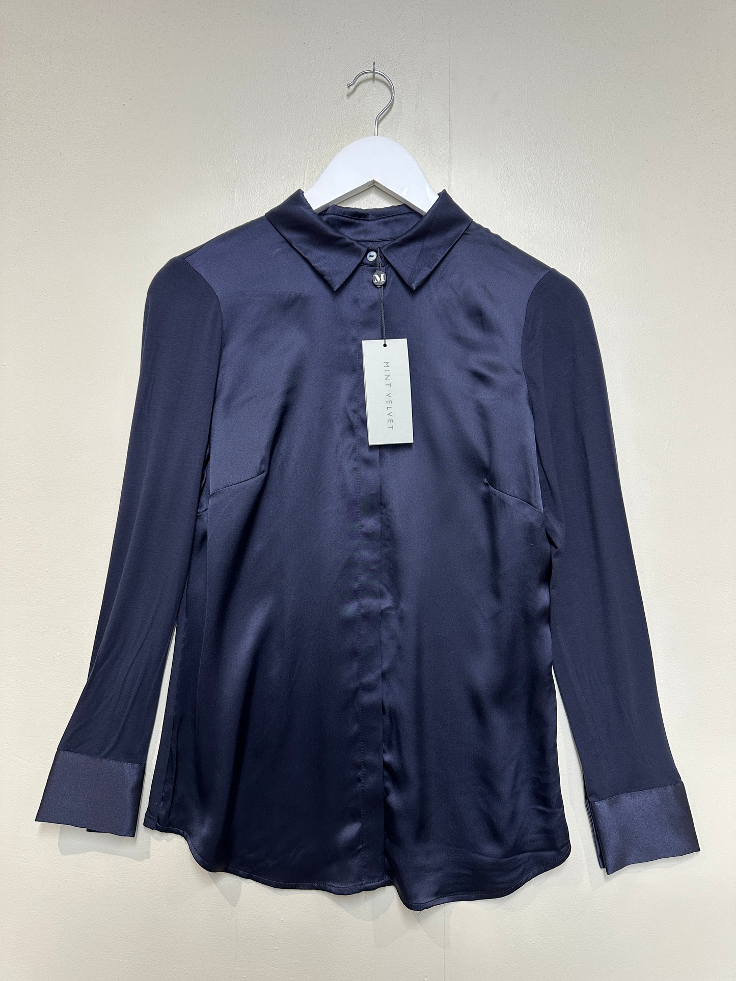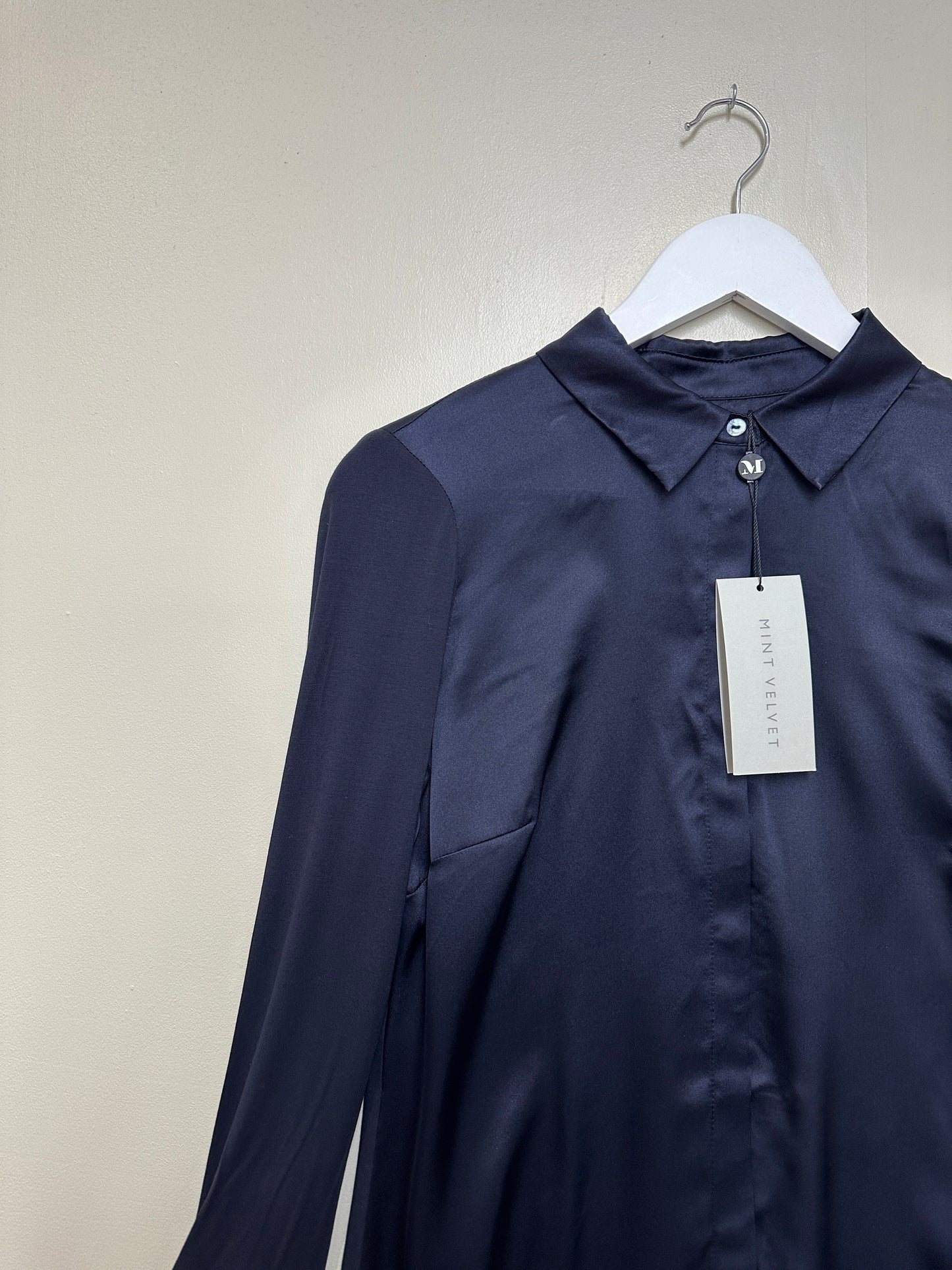 Mint Velvet Navy Blue Silk Front Shirt - Size 8