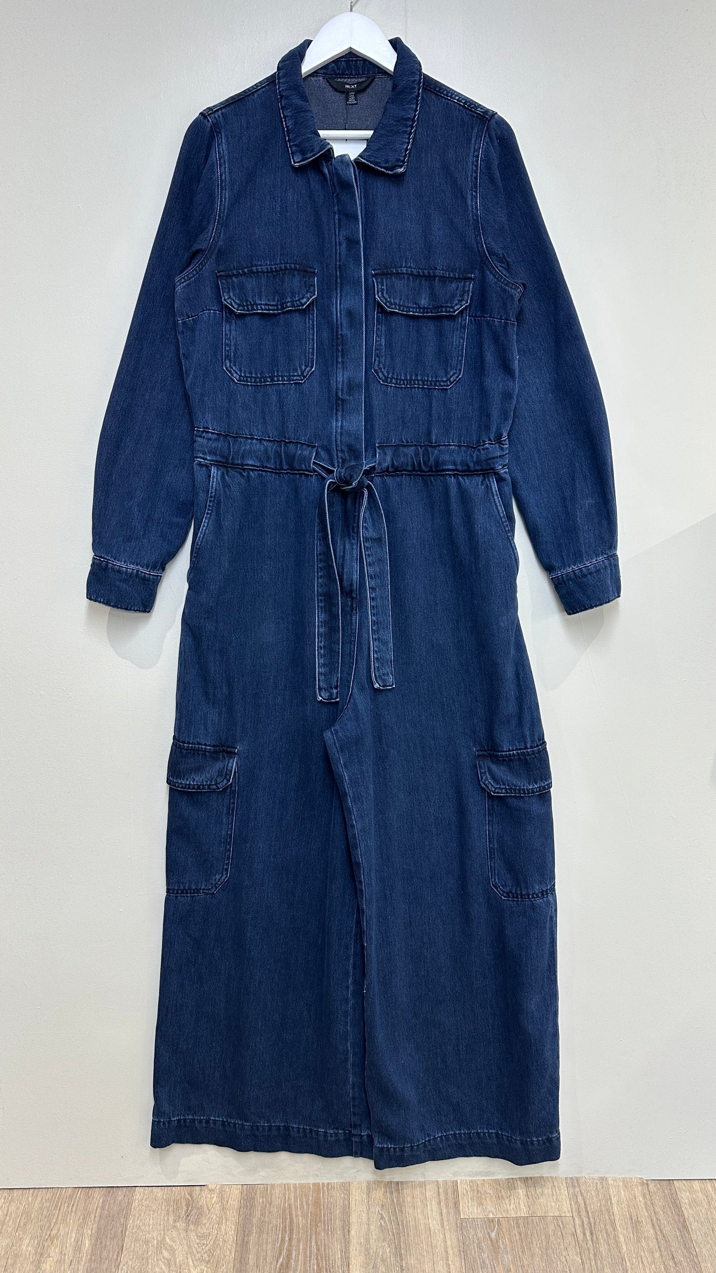 Next Blue Denim Wide Leg Jumpsuit - Size 14 L