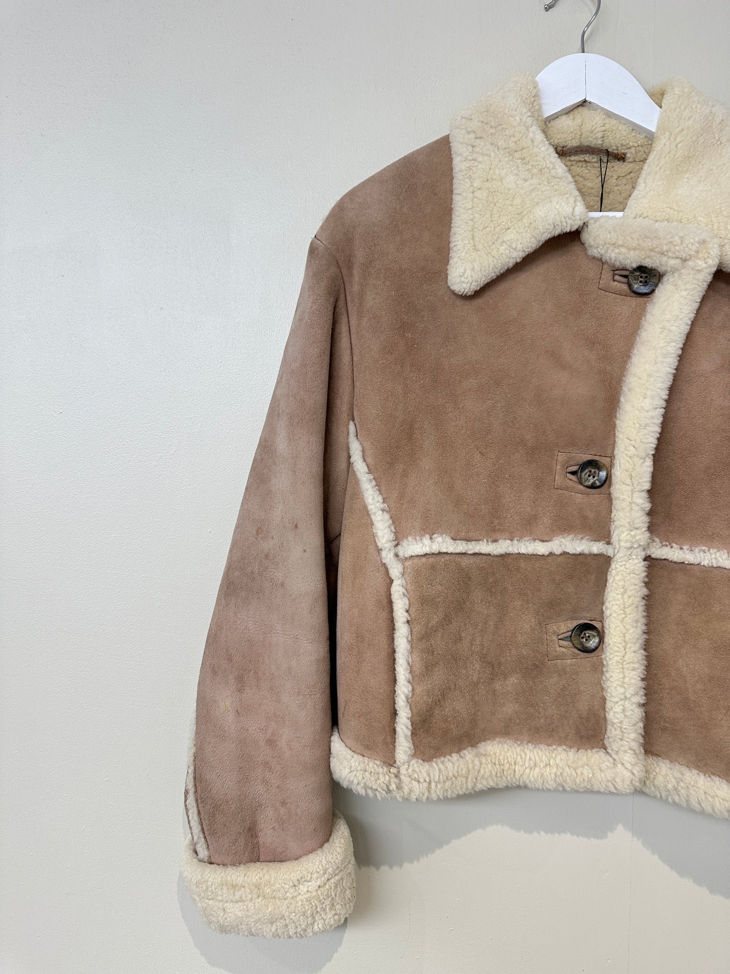 Add Mary Quant Beige Beige Cream Sherpa Coat Sheepskin - Size 12 to the cart