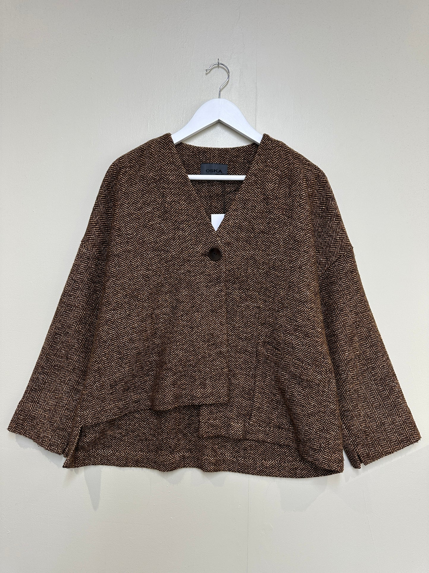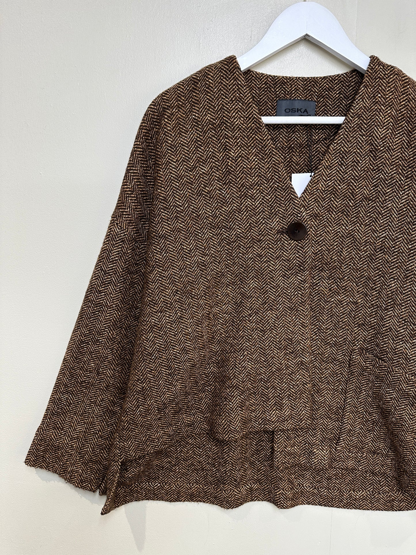 Add Oska Brown Herringbone Wool Jacket - Size 12-14 to the cart