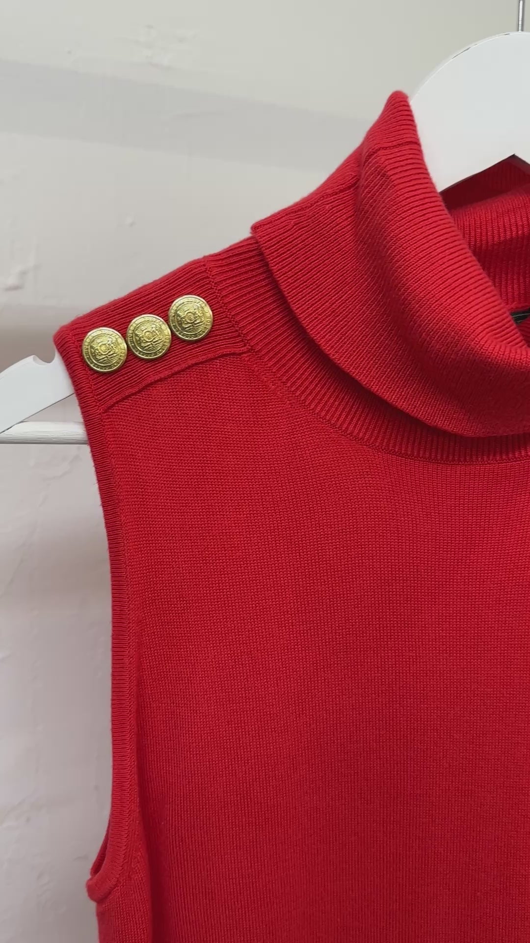 Holland Cooper Red Luxury Sleeveless Roll Neck