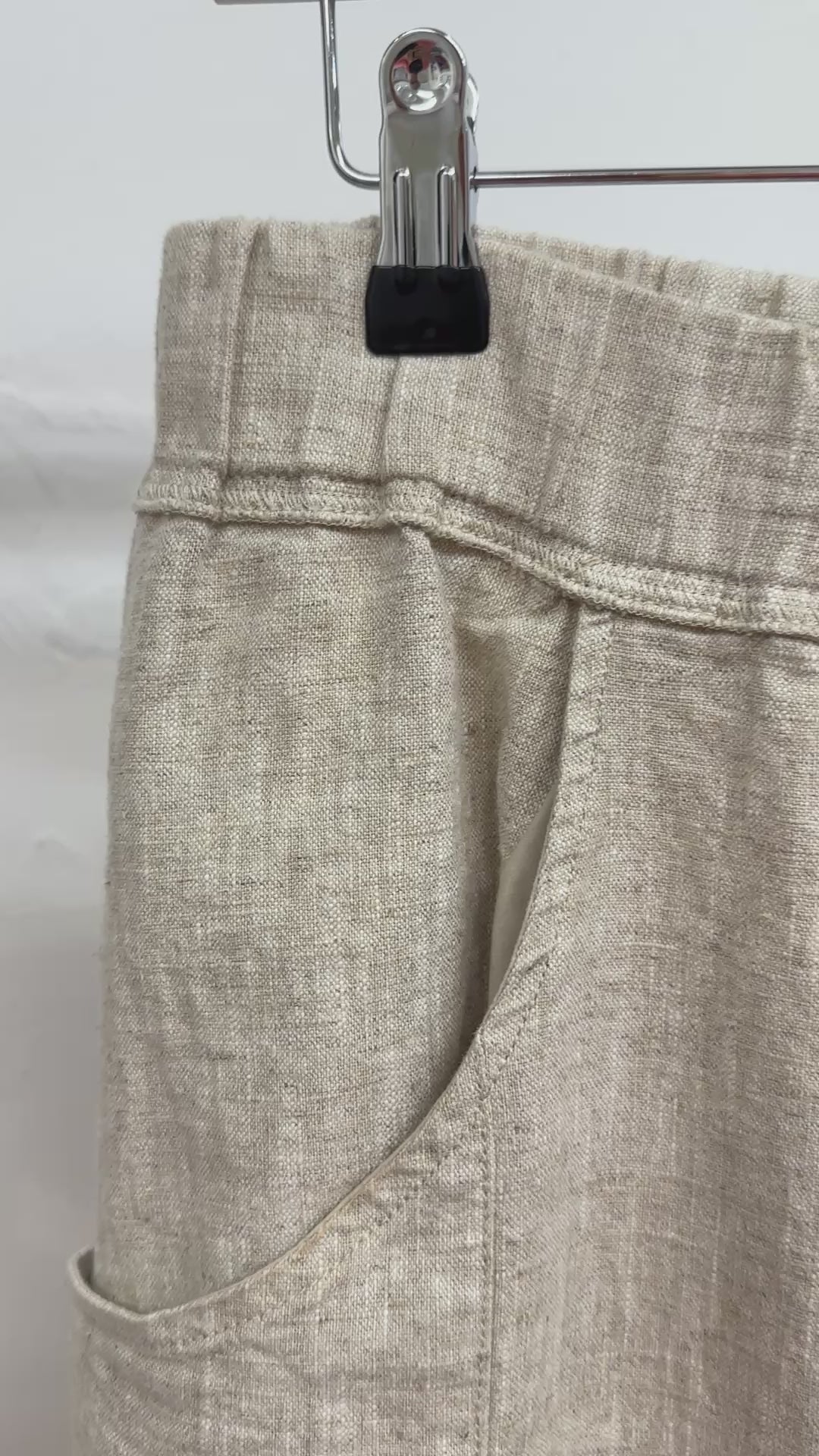 Lurdes Bergada Oatmeal Linen and Cotton Barrel Leg Trousers