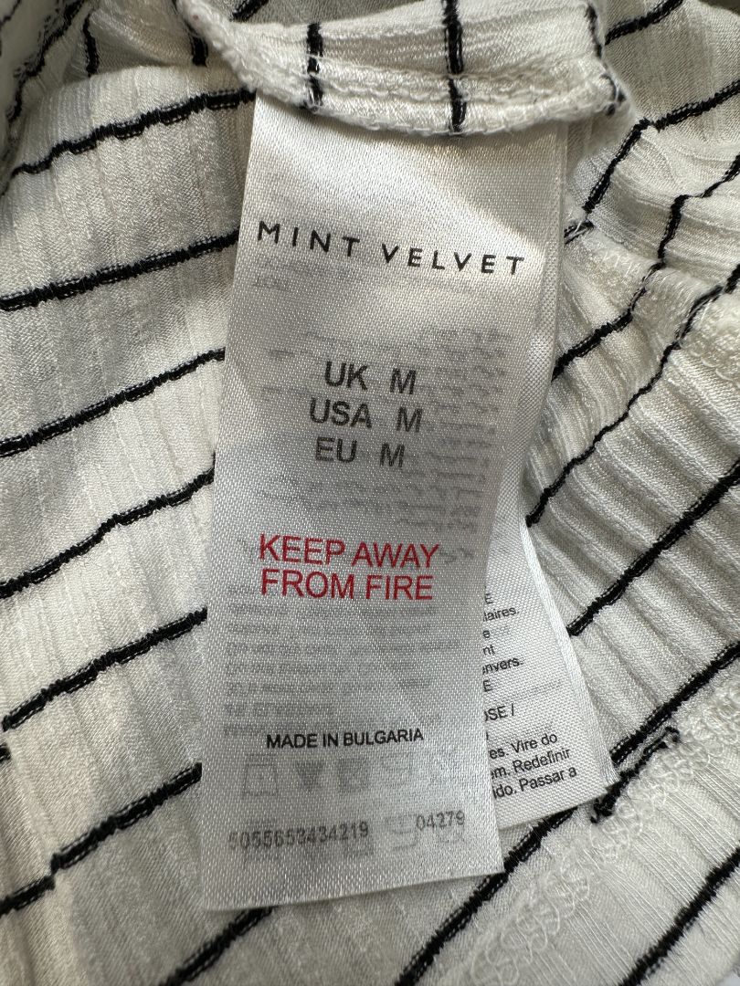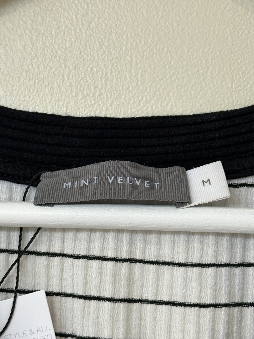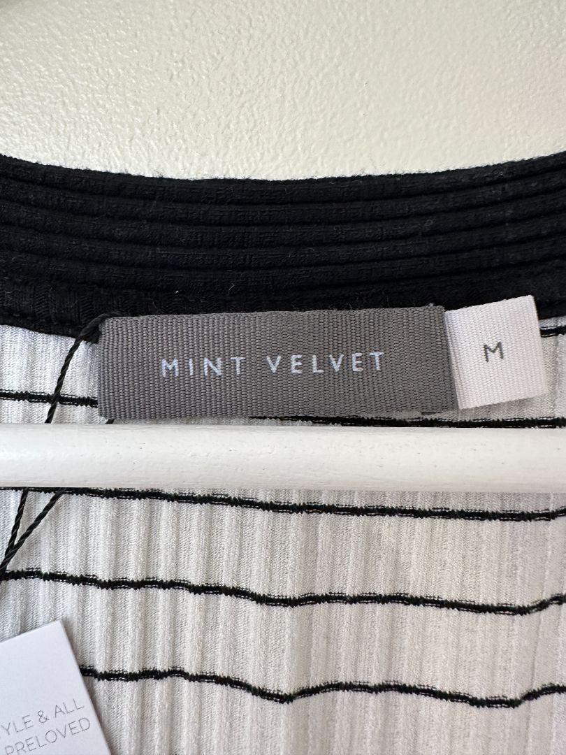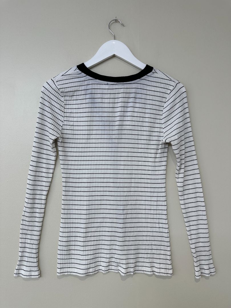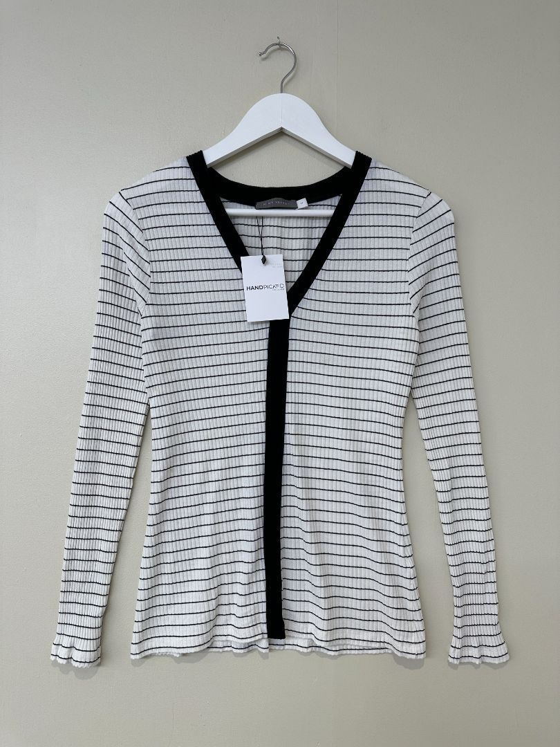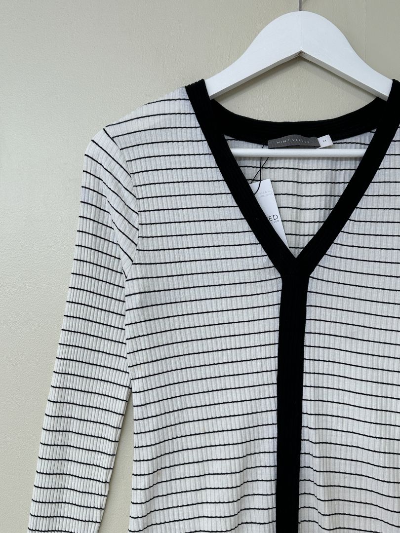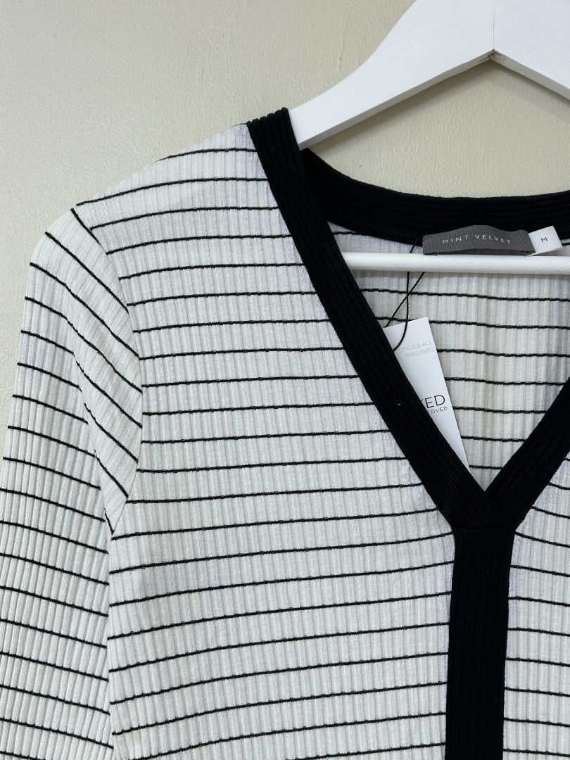 Mint Velvet White Black Ribbed Striped V-Neck Long Sleeve Top