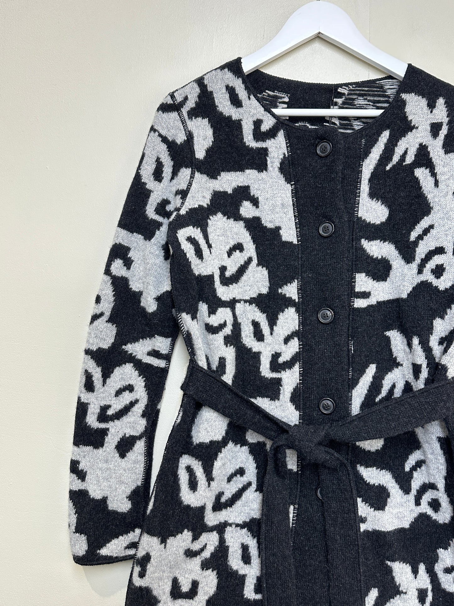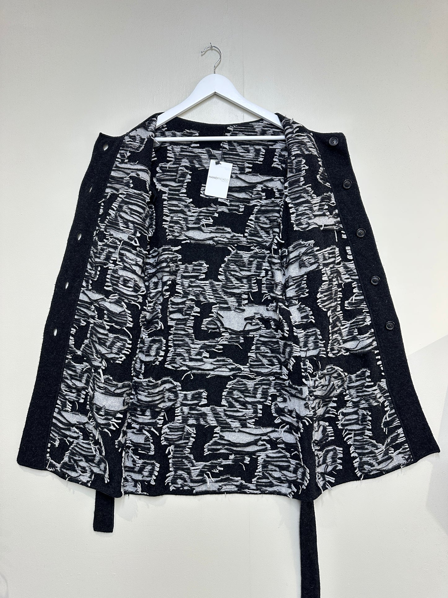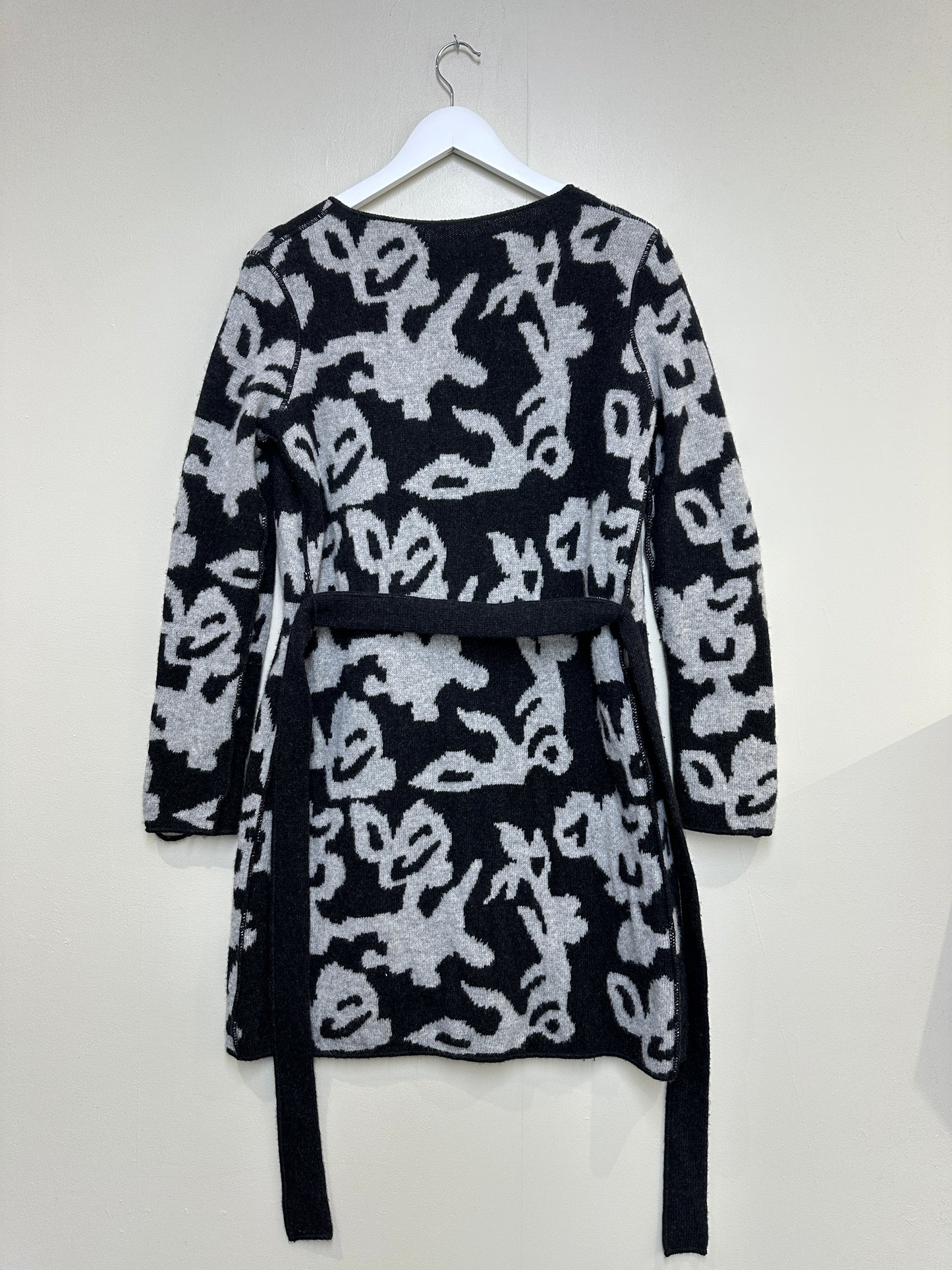 Piazza Sempione Black Grey Jacquard Reversible Belted Cardigan