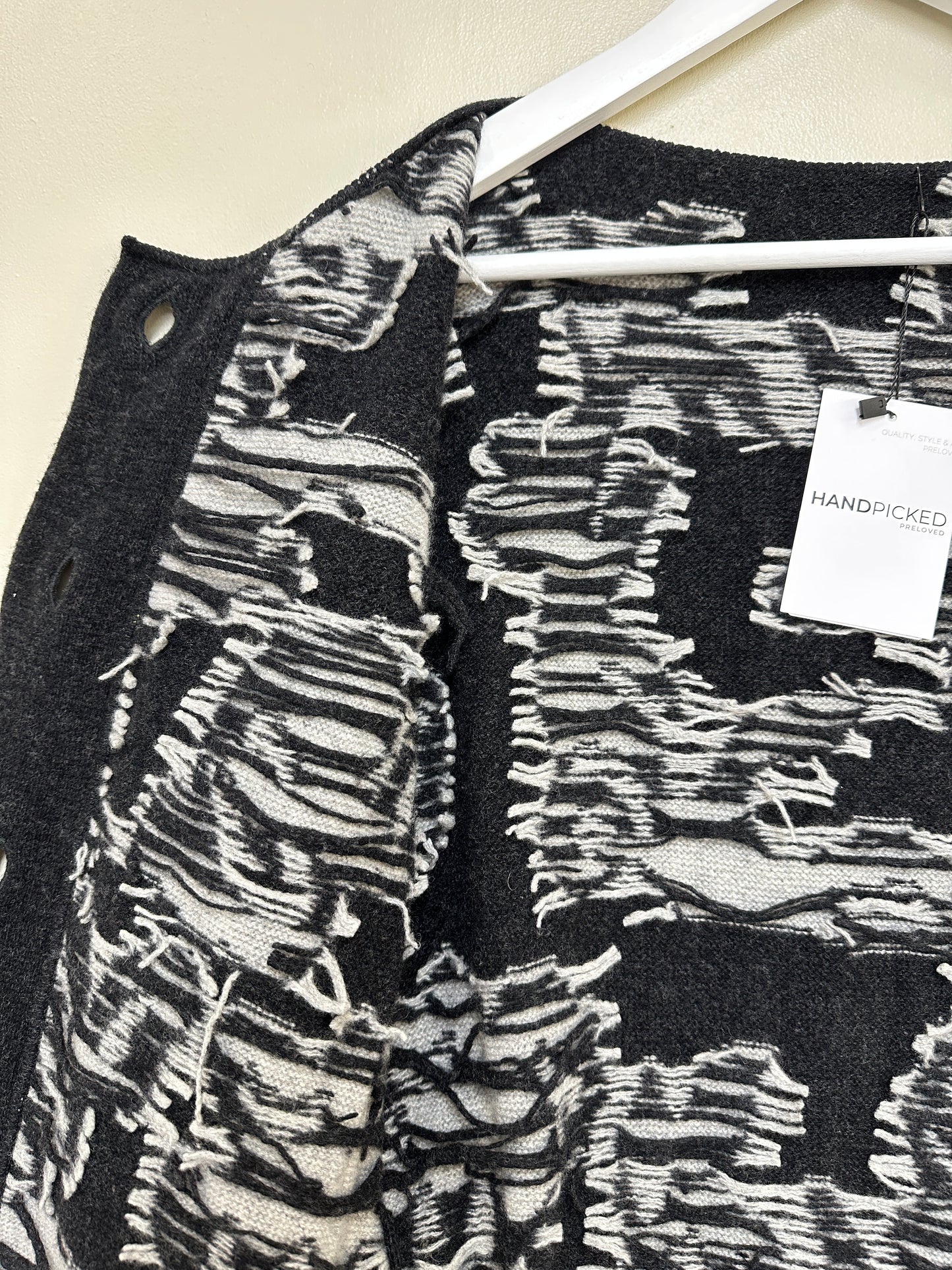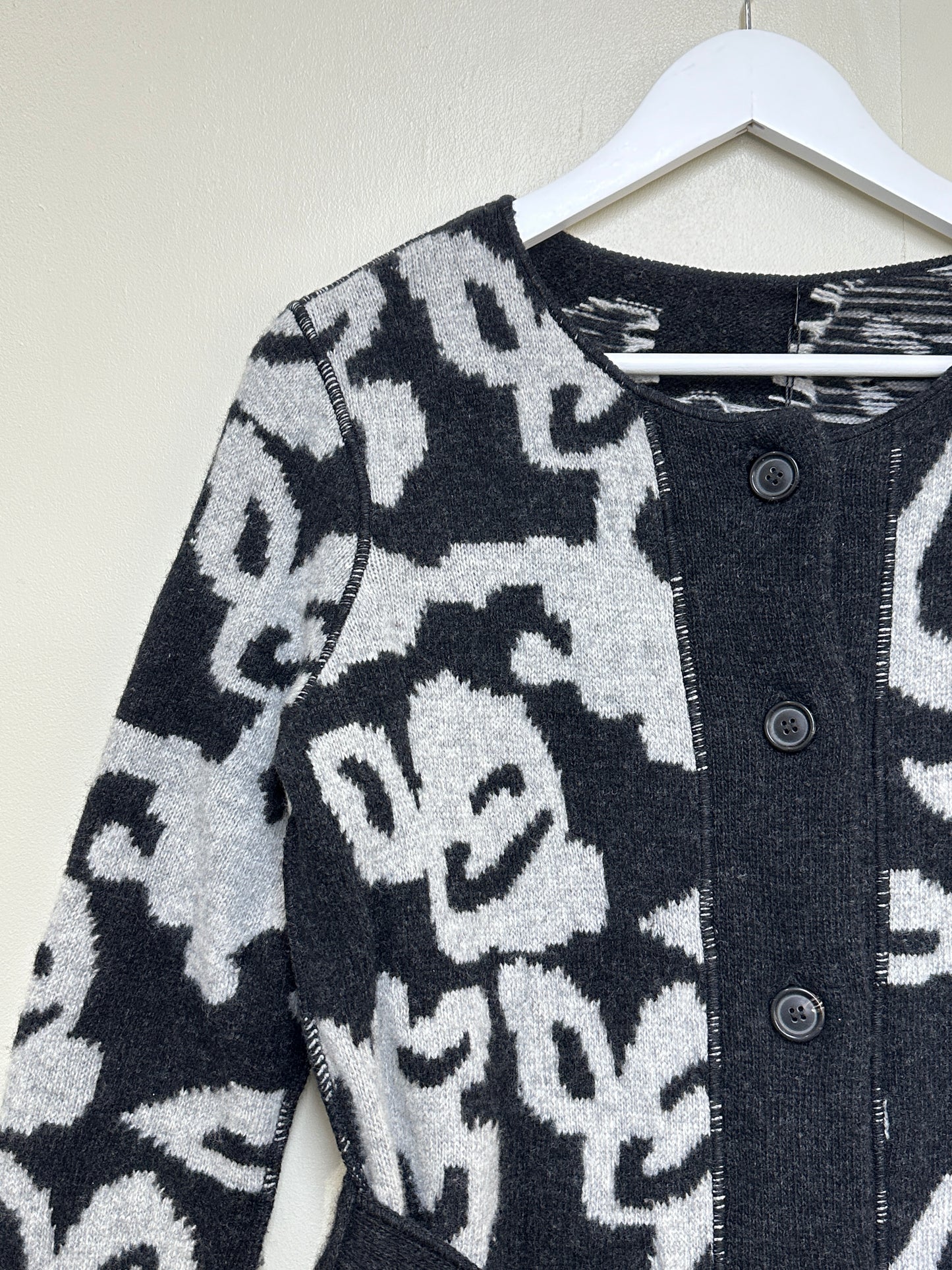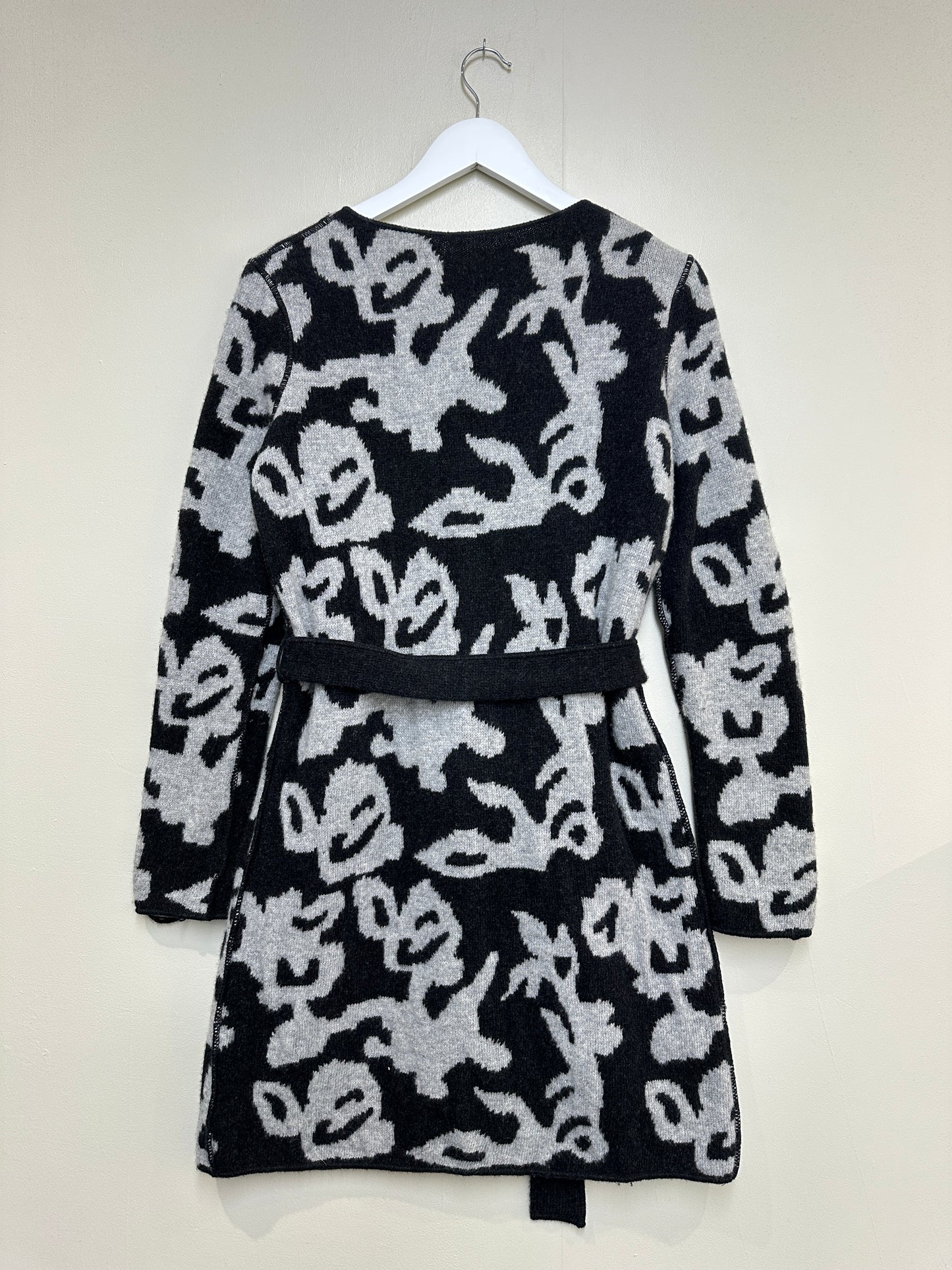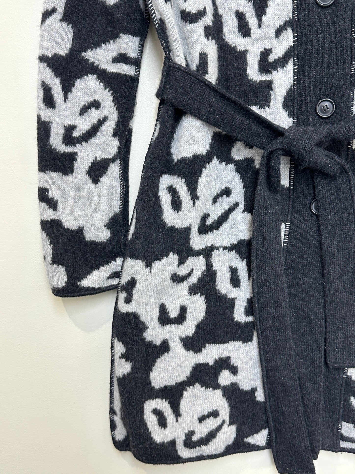 Piazza Sempione Black Grey Jacquard Reversible Belted Cardigan
