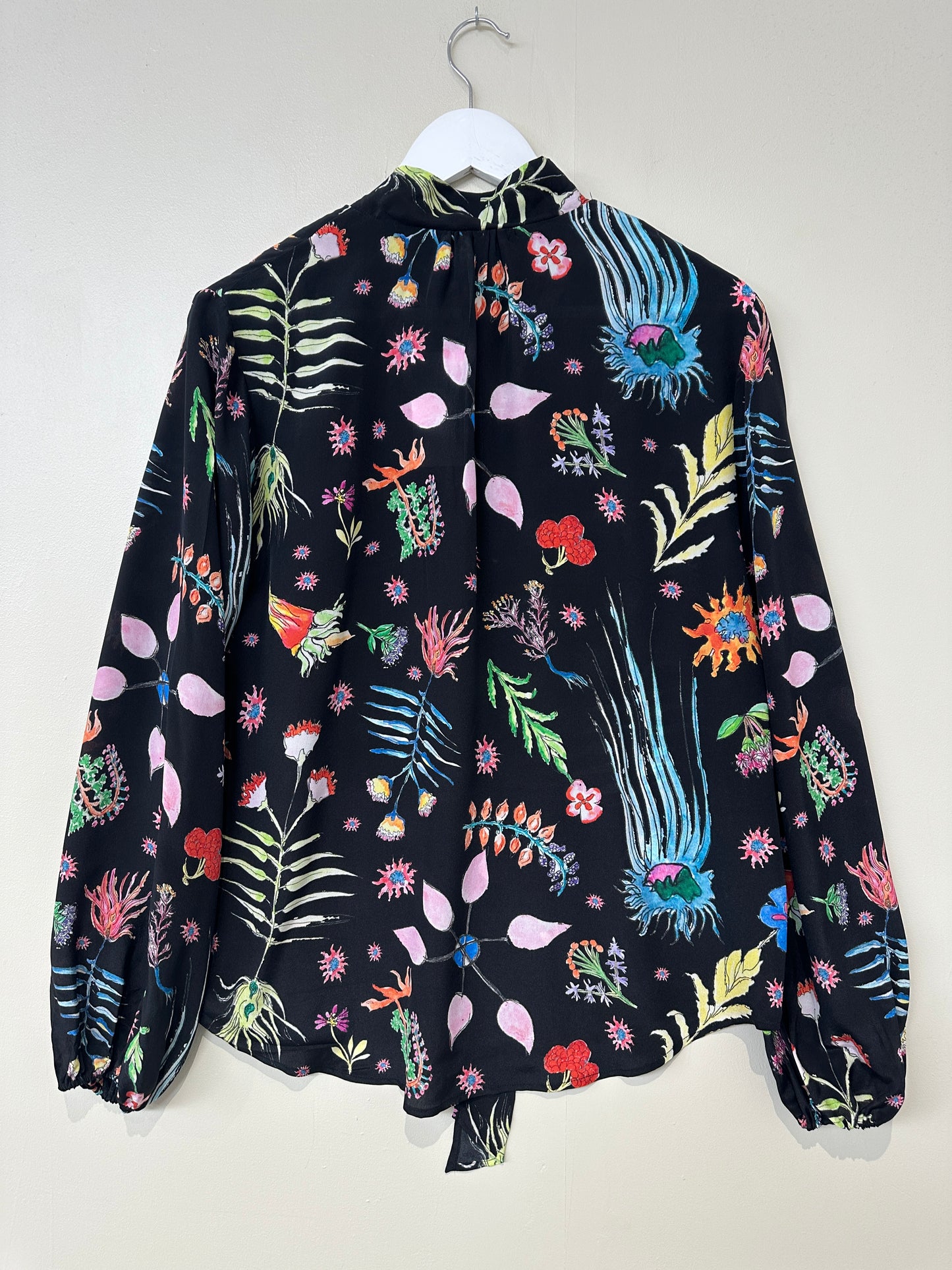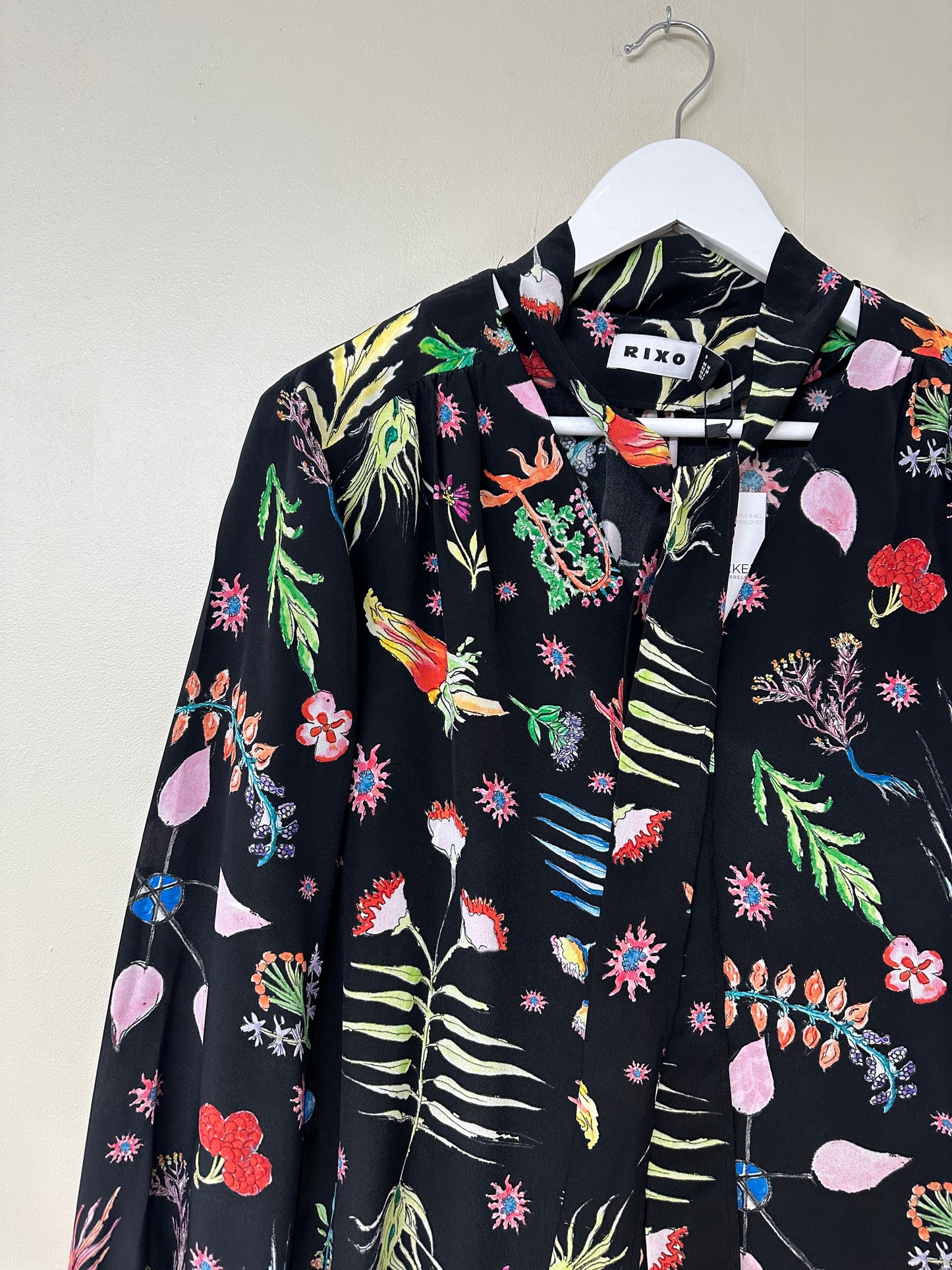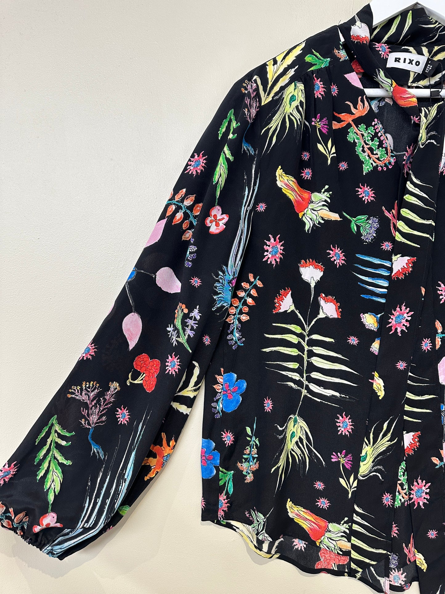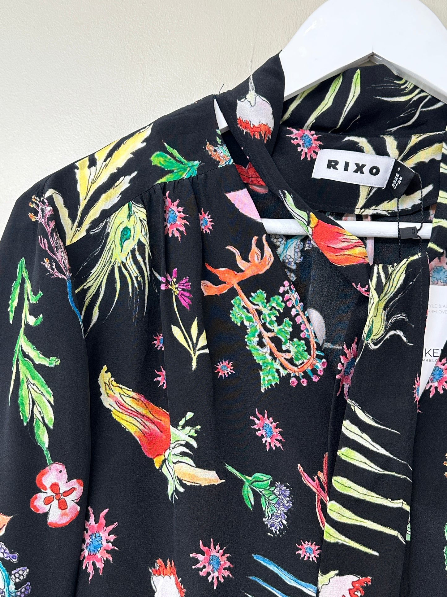 Rixo Black Moss virtues Silk Tie Neck Blouse