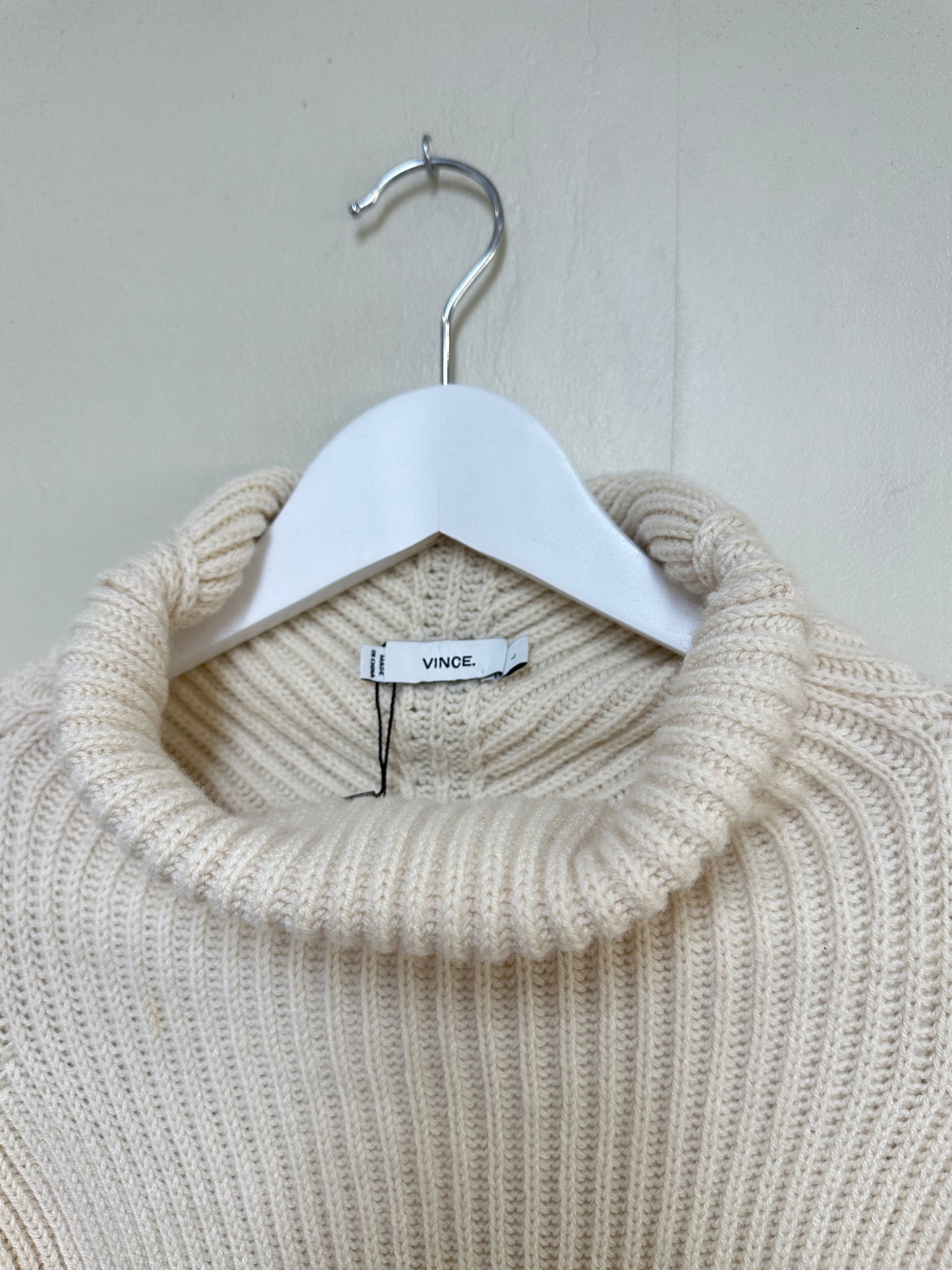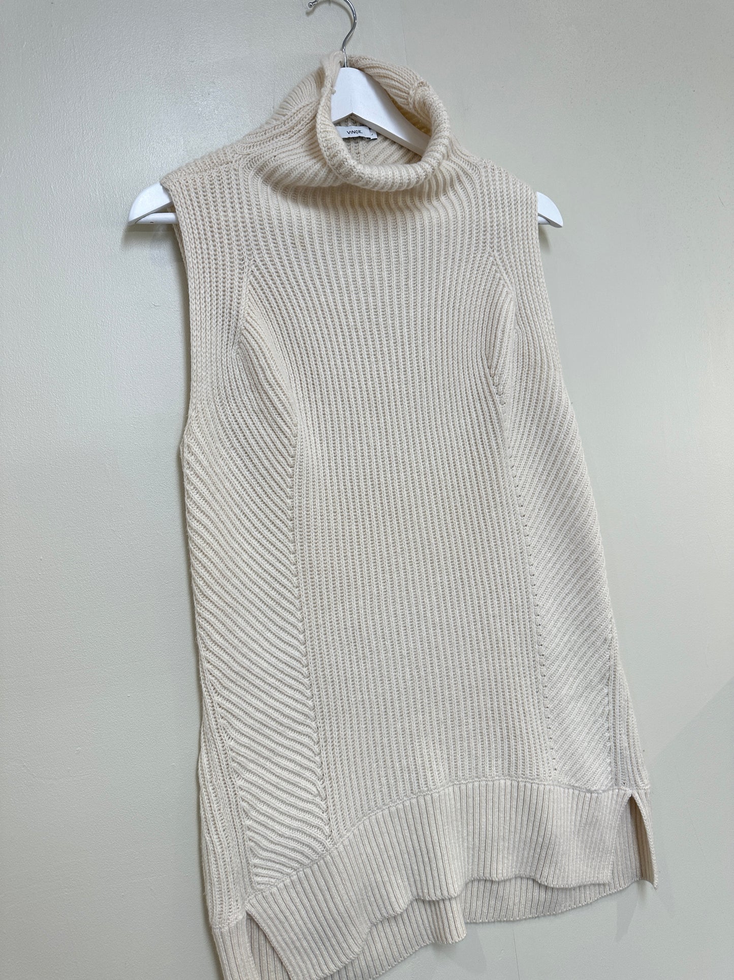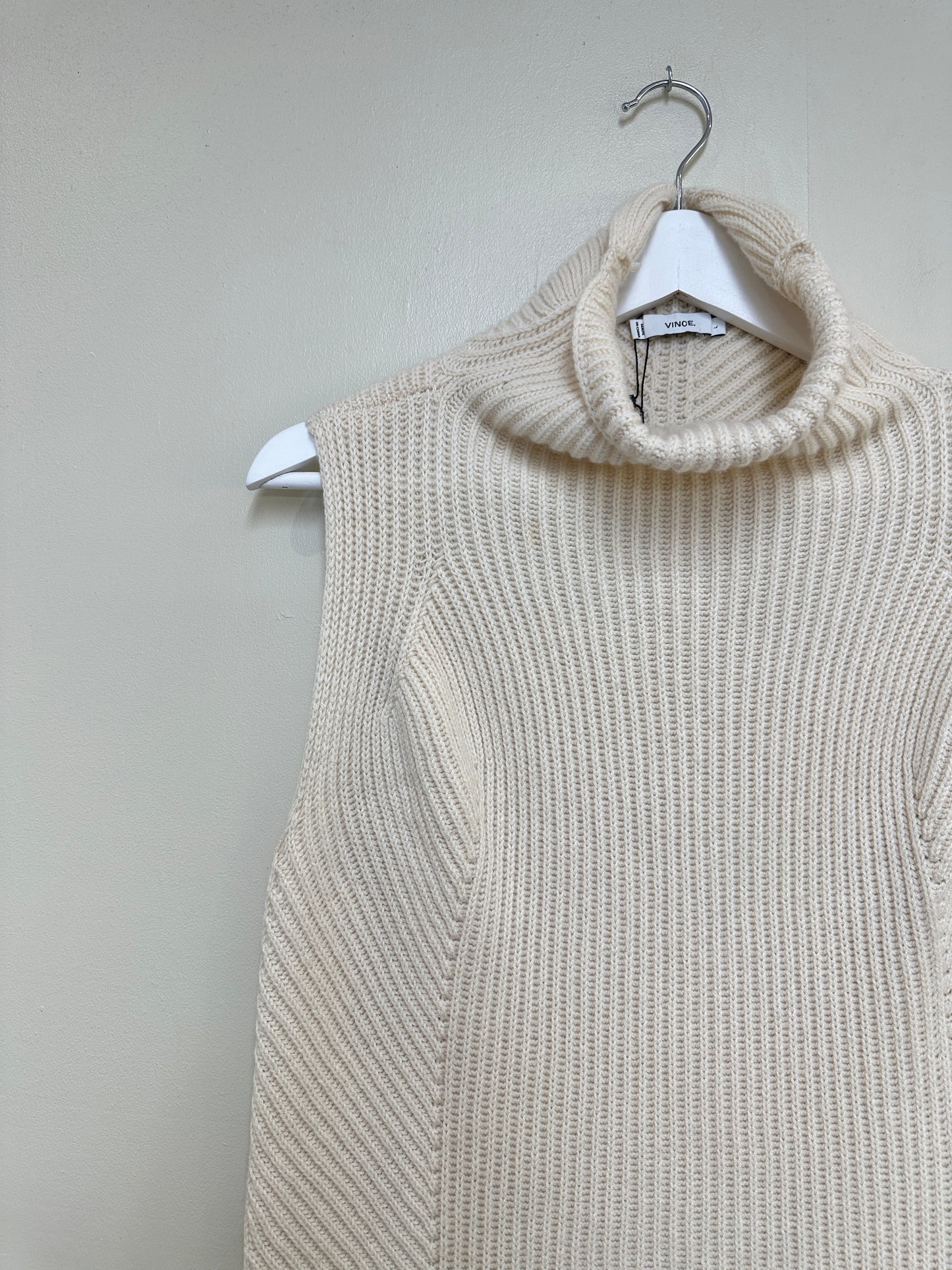 Regular price £60.00Vince Cream Knitted Tank Roll Neck Wool Cashmere