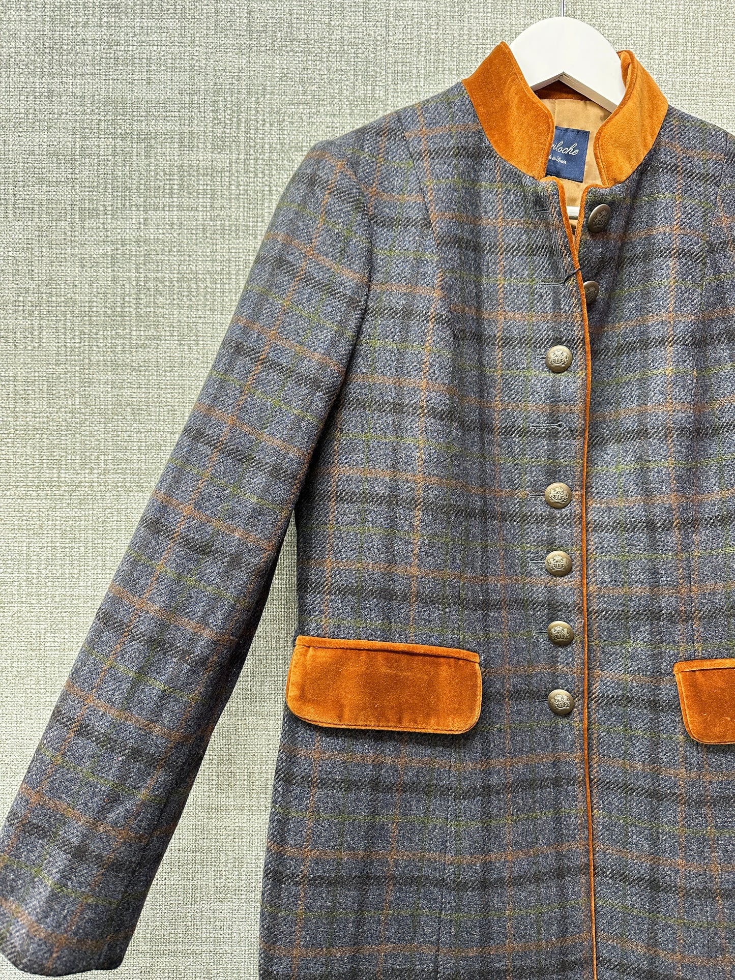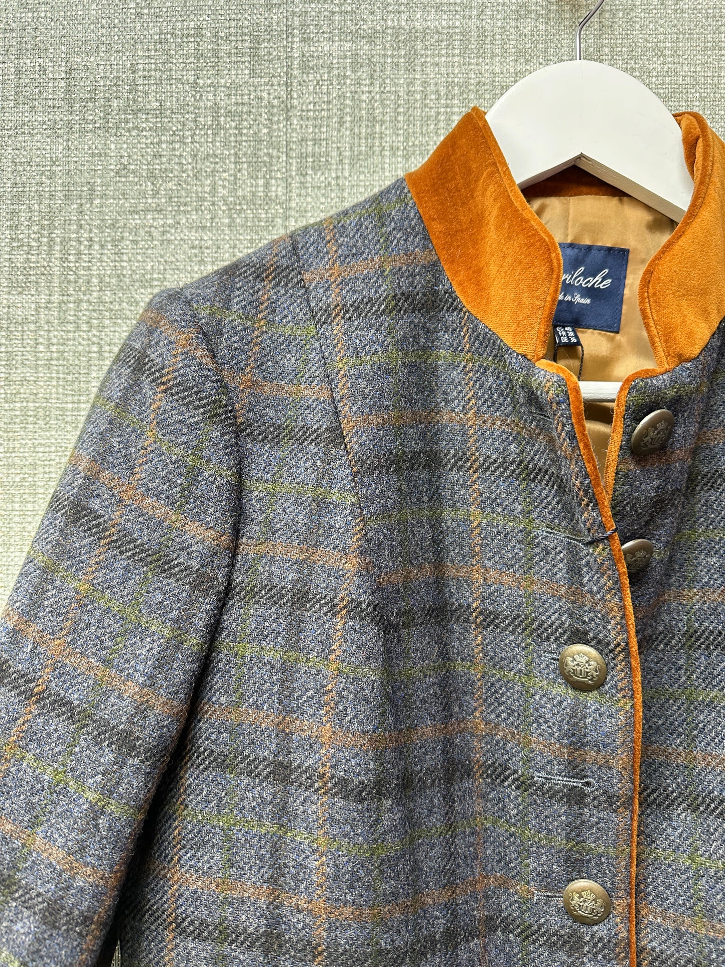 Bariloche Blue Brown Wool Check Longline Zahara Jacket