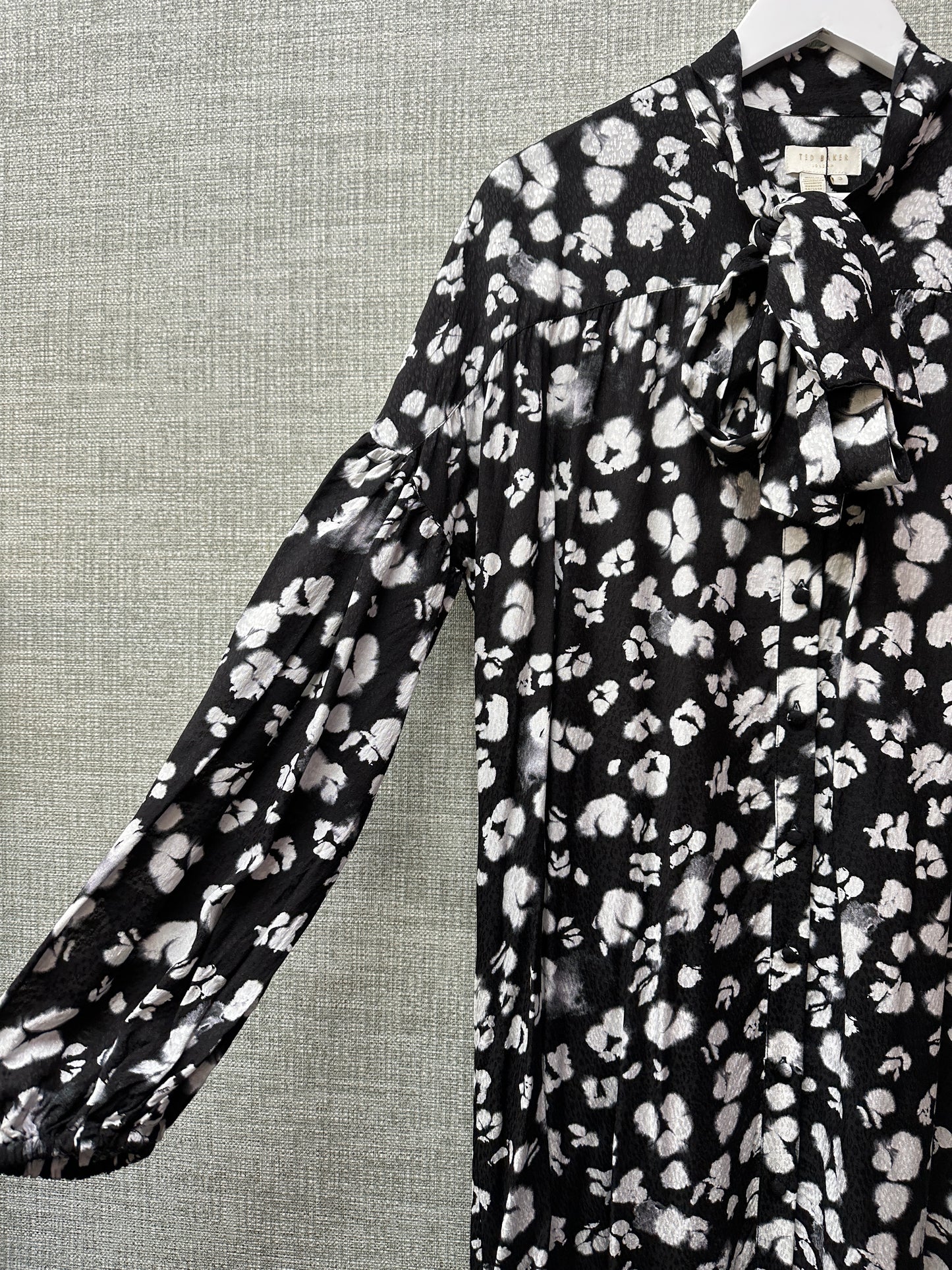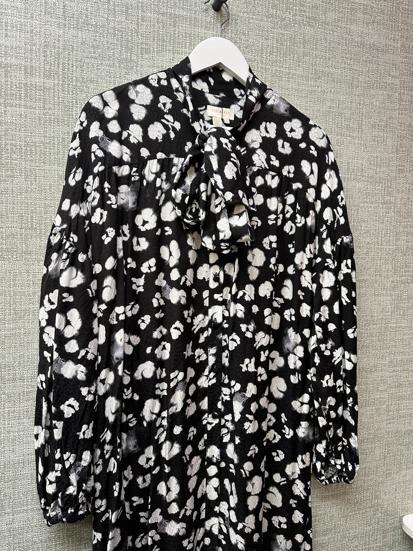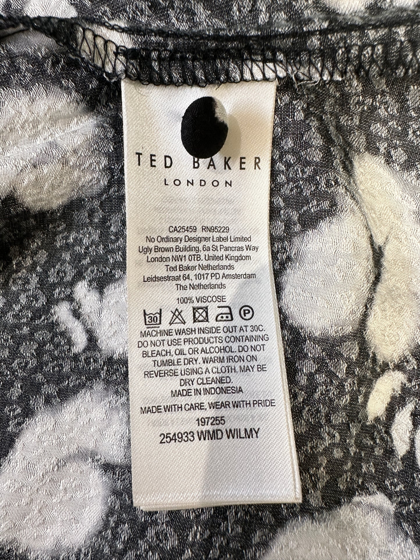 Ted Baker Black White Wilmy Tie Neck Pocket Swing Midi Dress