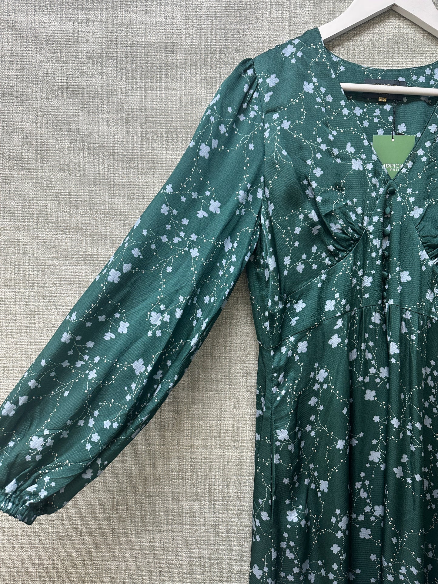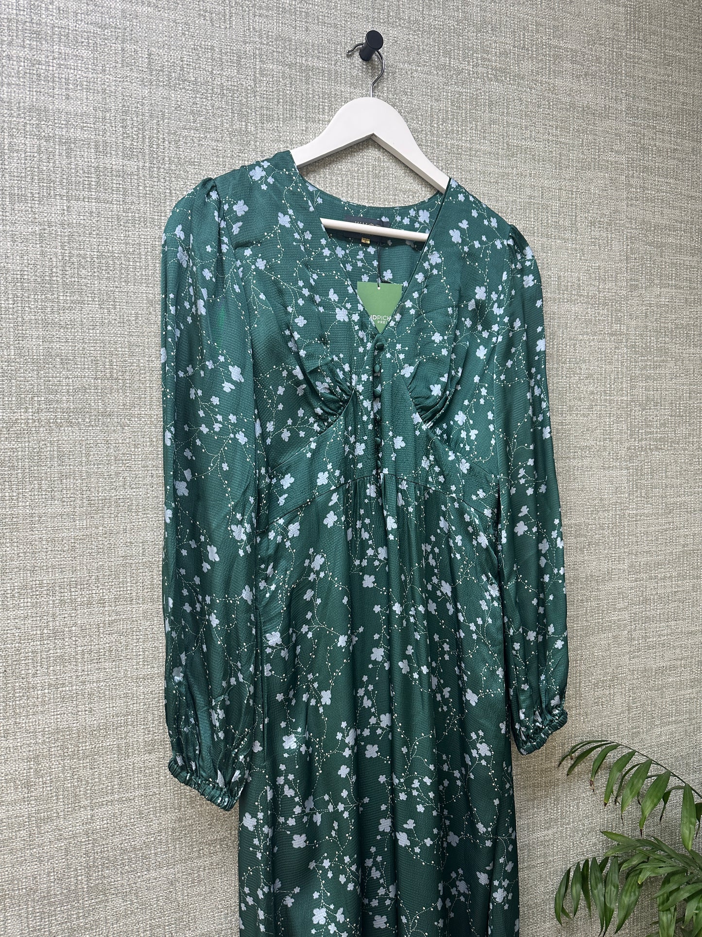Wyse London Green Shira Stitched Blossom Satin Midi Dress