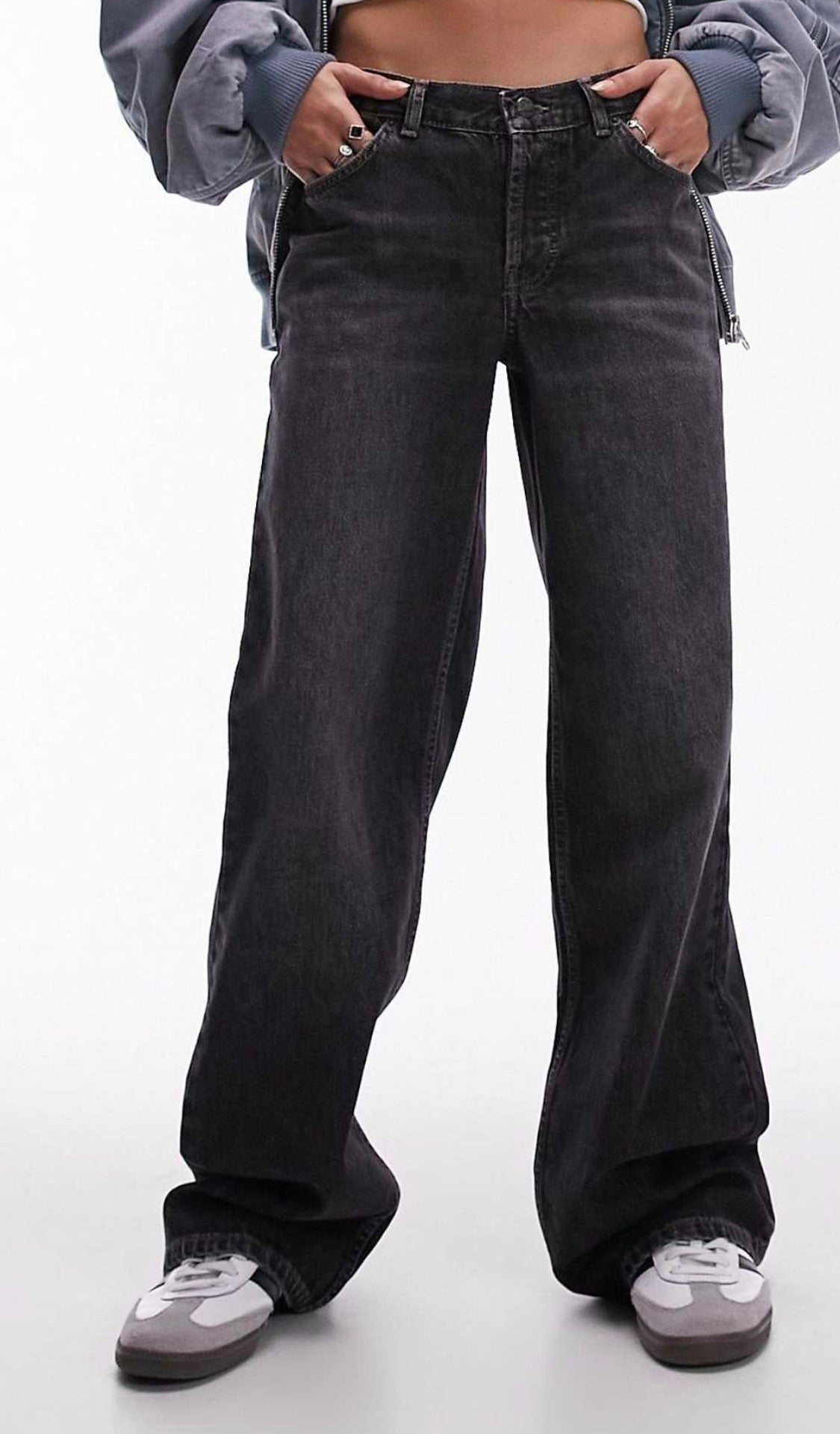 Add Topshop Black Ember Low Wide Leg Jeans - 8 to the cart