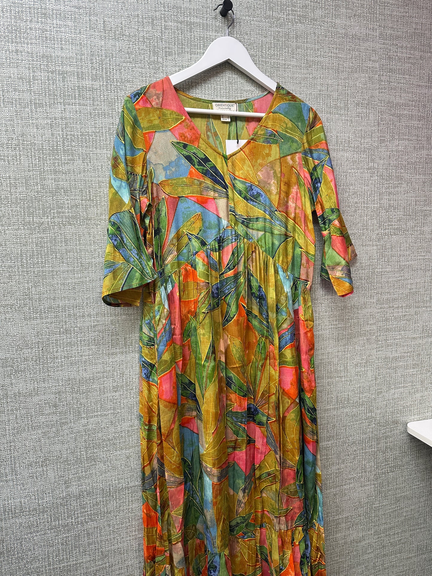 Add Orientique Naturally Multicoloured Leaf Print Maxi Dress - 12 to the cart