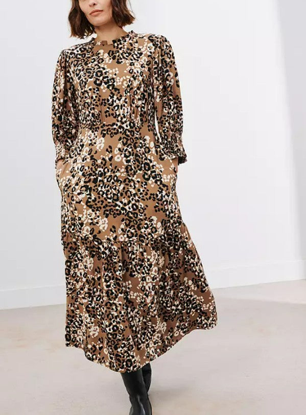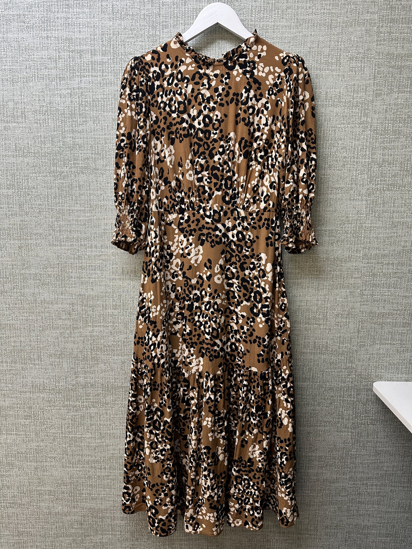 Add John Lewis Brown Leopard Print Maxi Tiered Dress - 10 to the cart