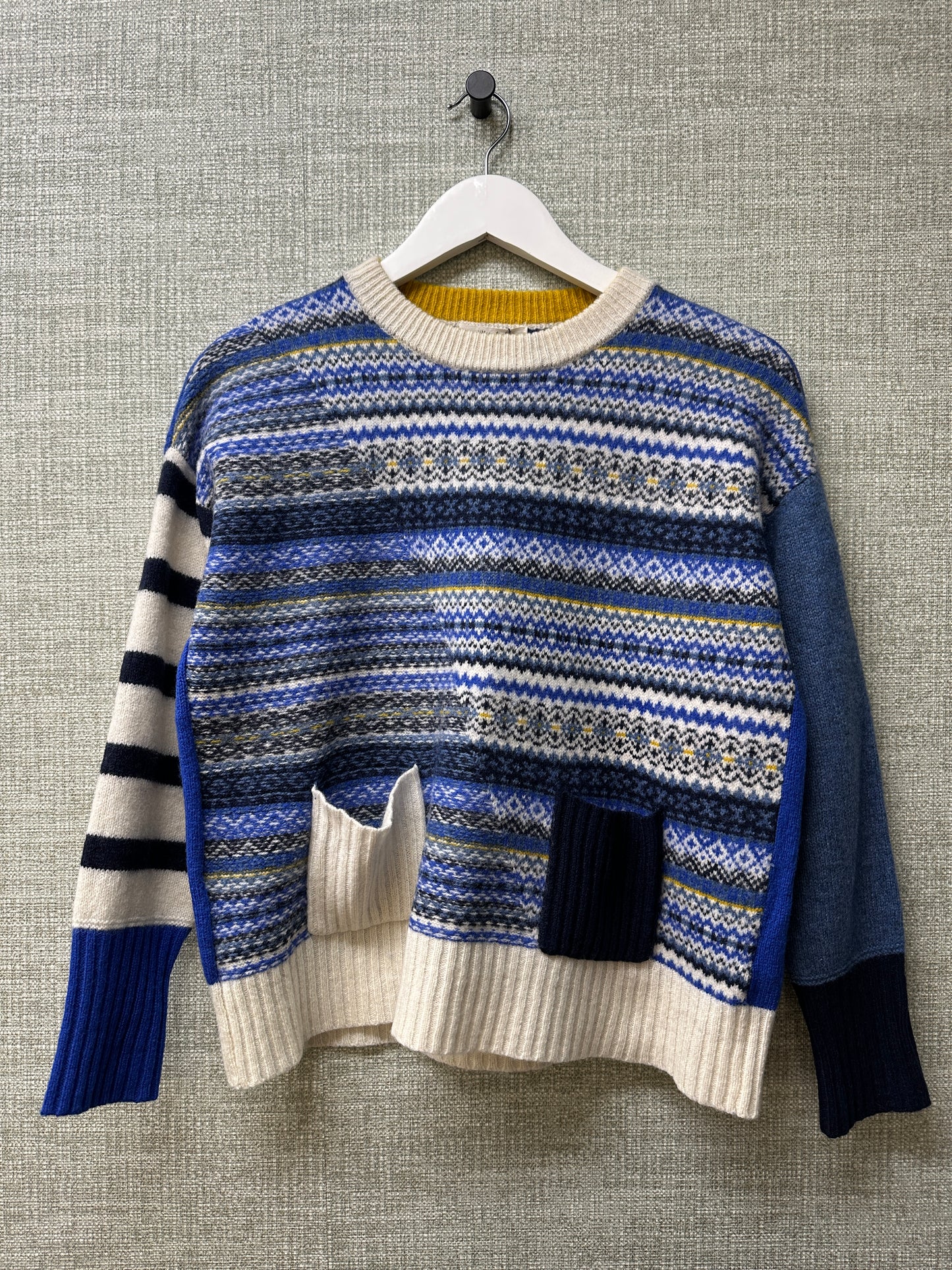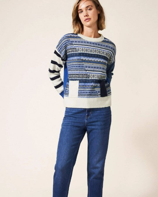 Add White Stuff Blue Fair Isle Front Pocket Jumper - 8 to the cart