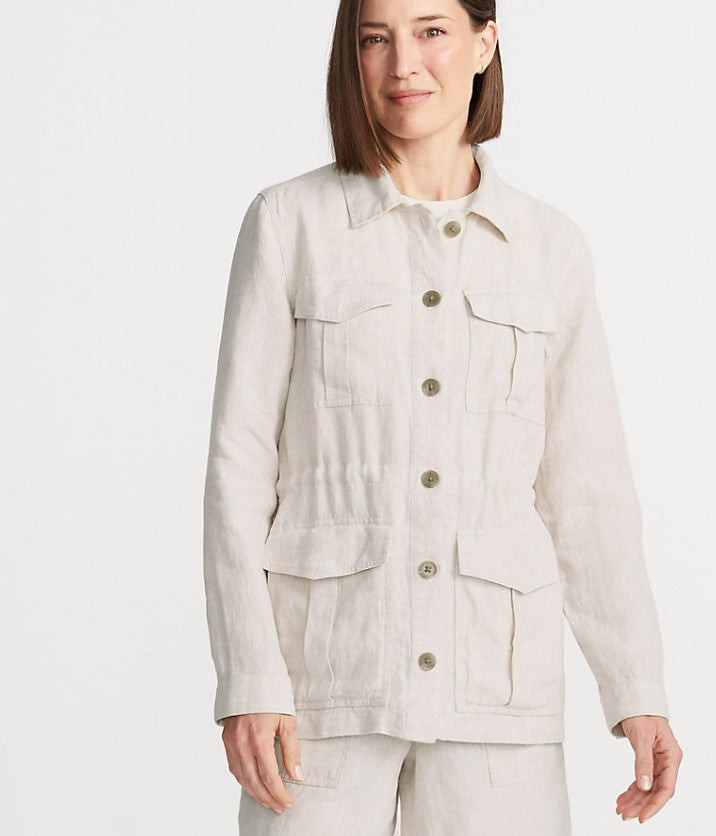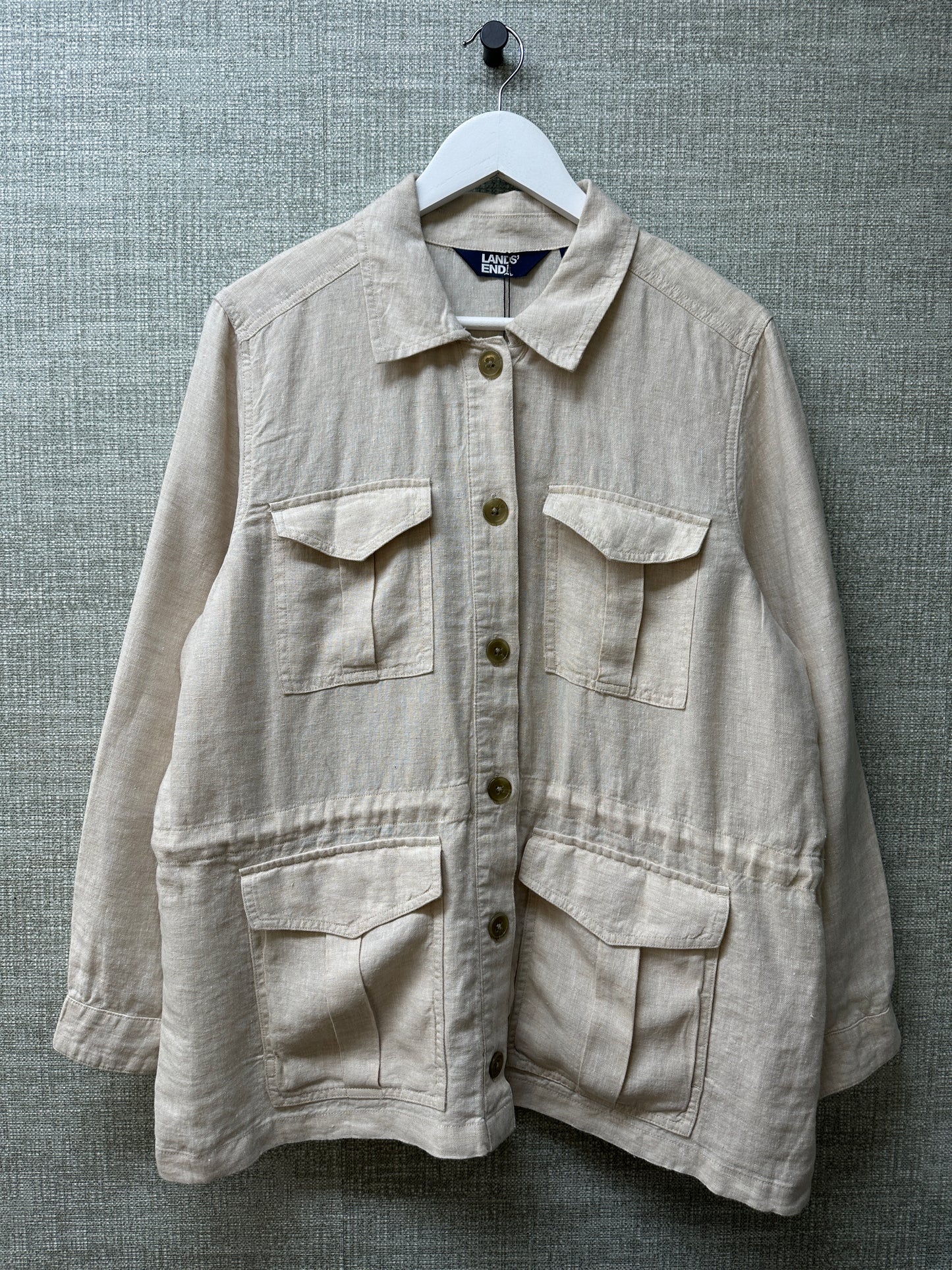 Add Lands End Oatmeal Linen Boxy Utility Jacket - 14-16 to the cart