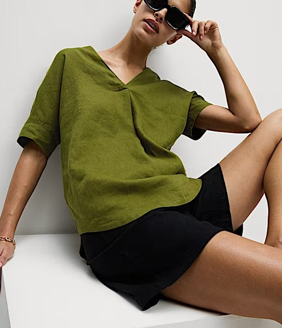 Add M&S Green Linen V-Neckline Top - 8 to the cart
