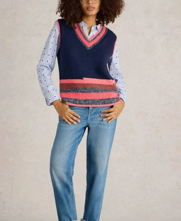 Add White Stuff Blue V-Neck Boxy Tank Jumper - 8 to the cart