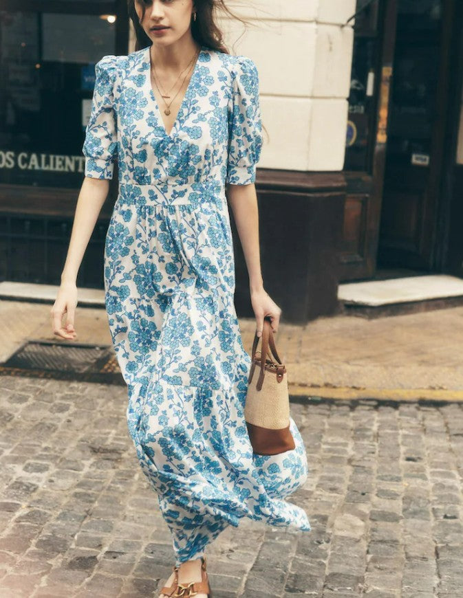 Add Sugarhill Green Pink Floral Maxi Tiered Dress - 12 to the cart