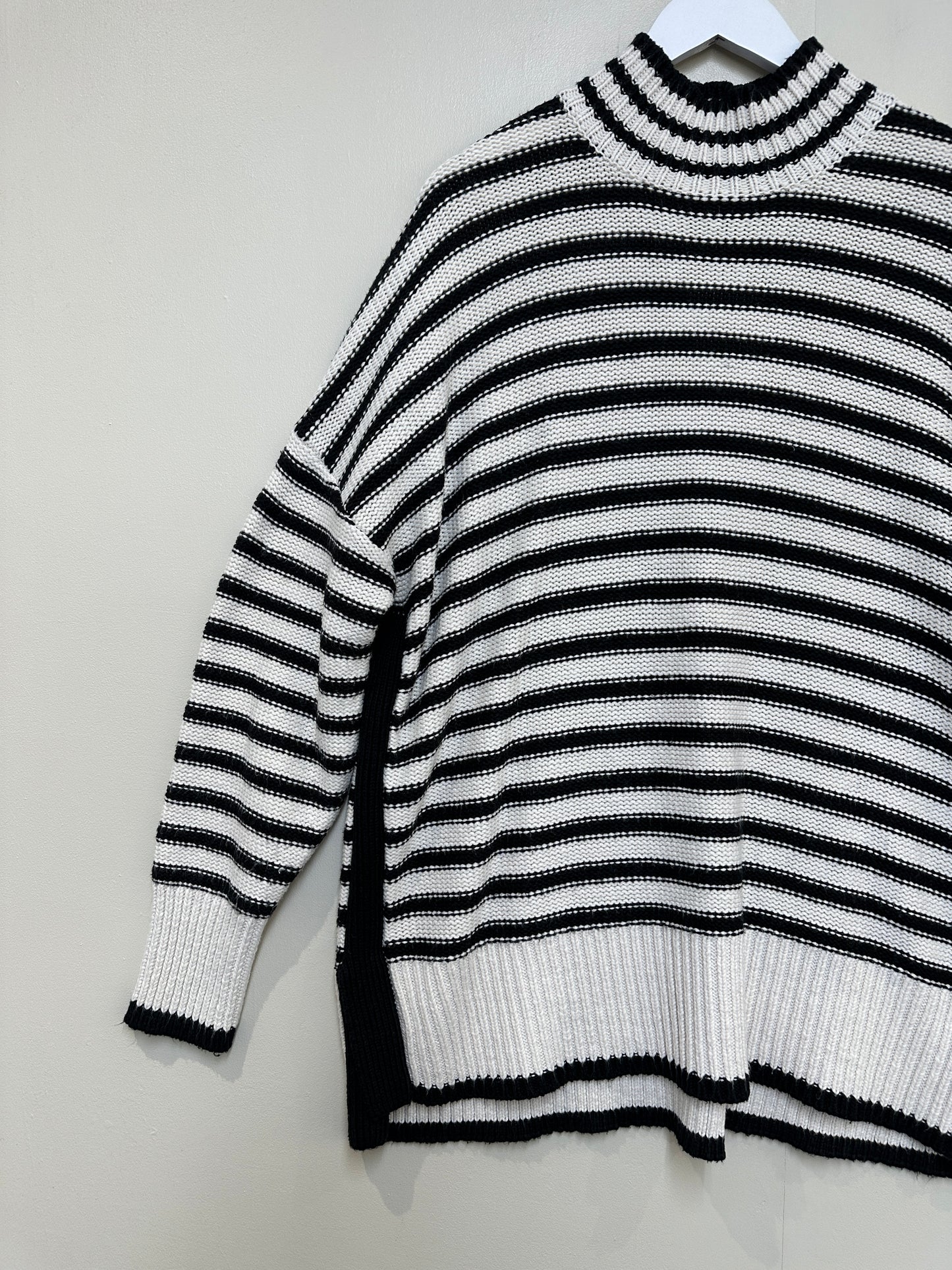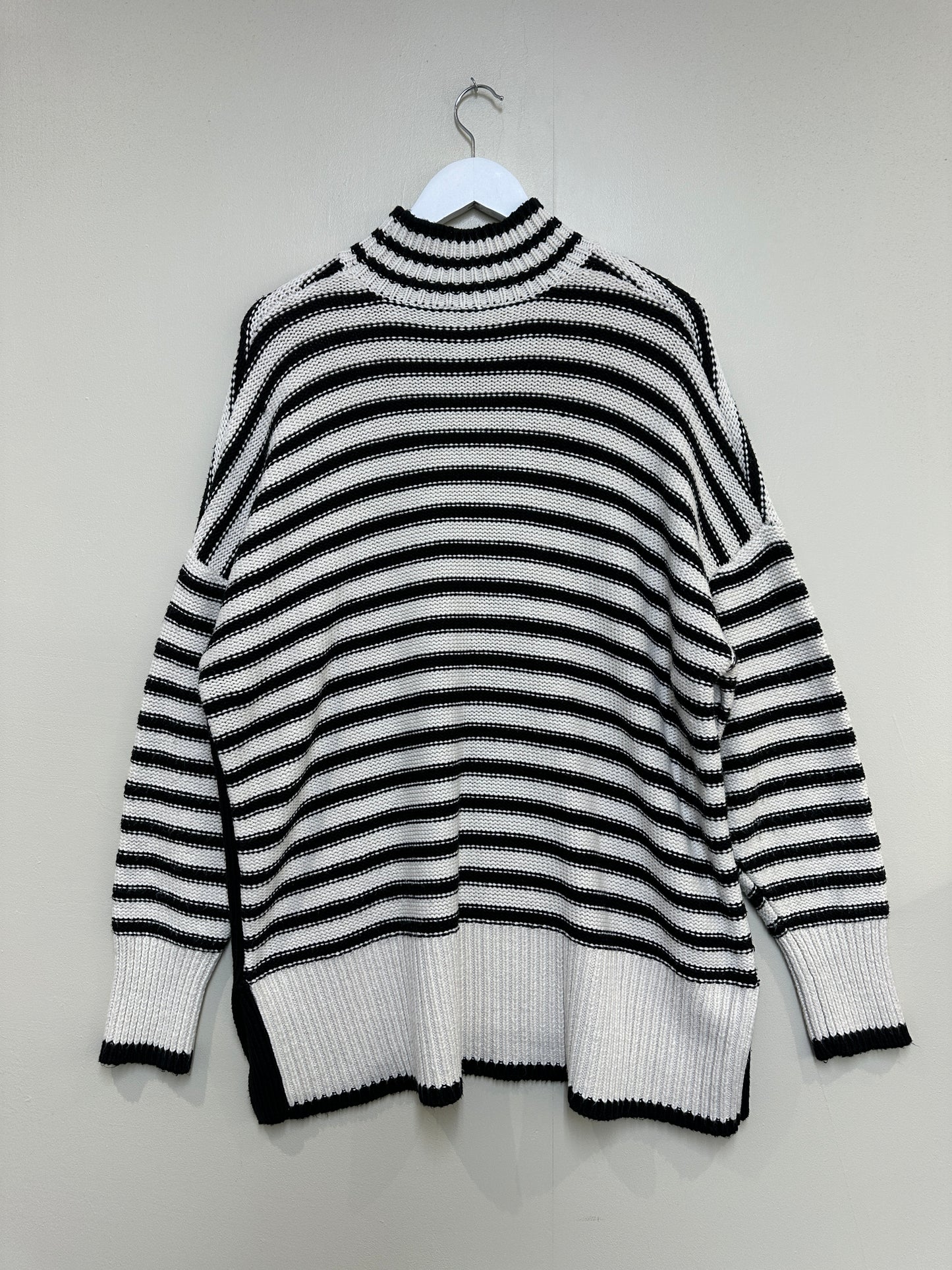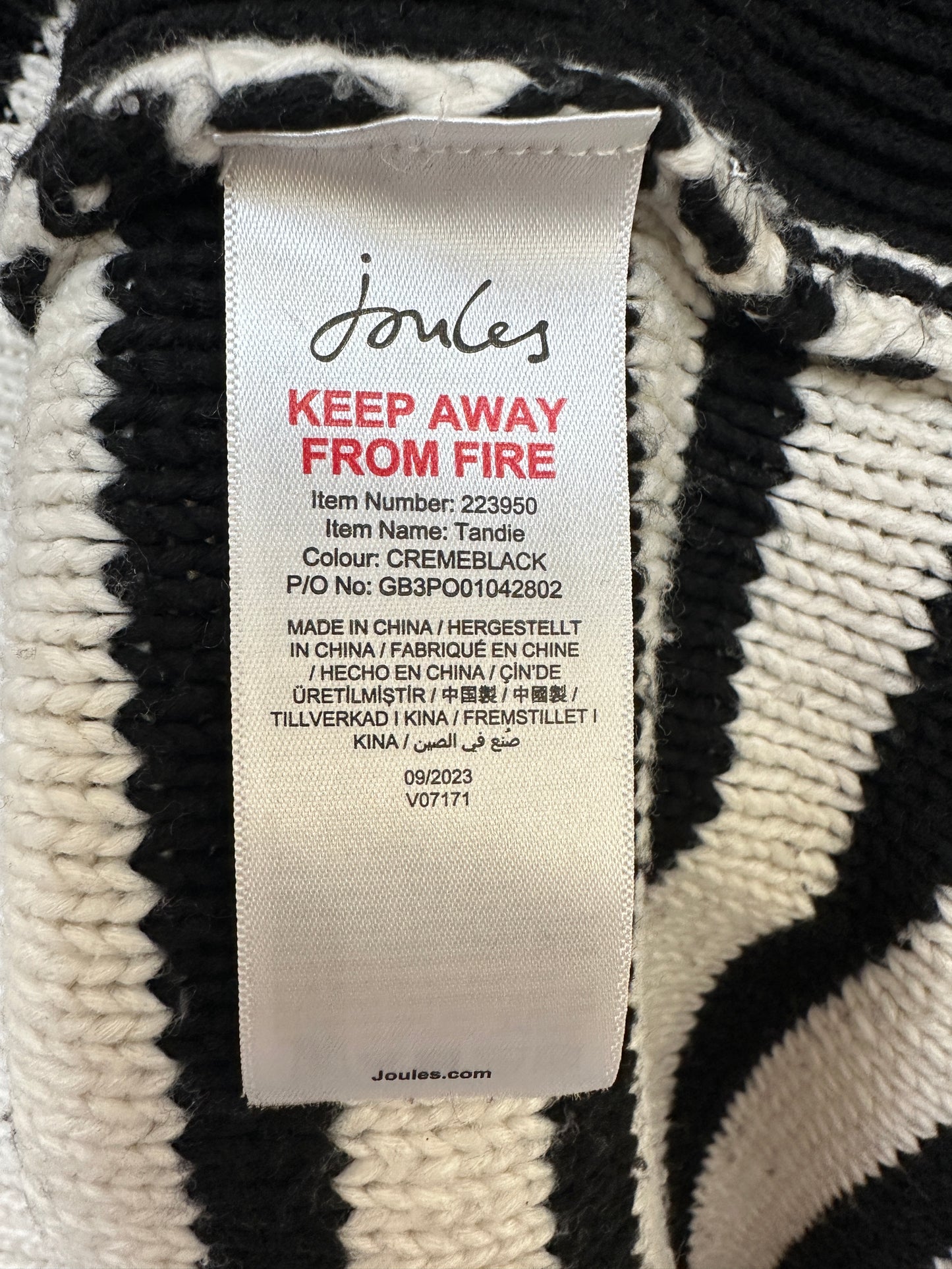 Joules Black White High Neck Striped Cotton Blend Jumper