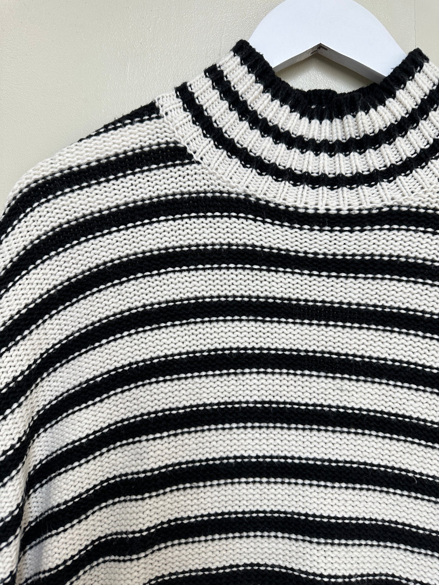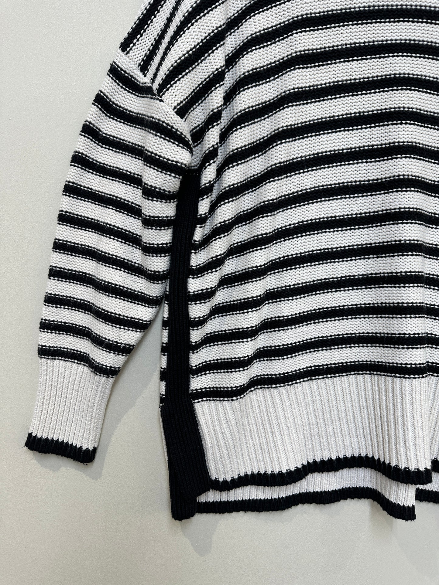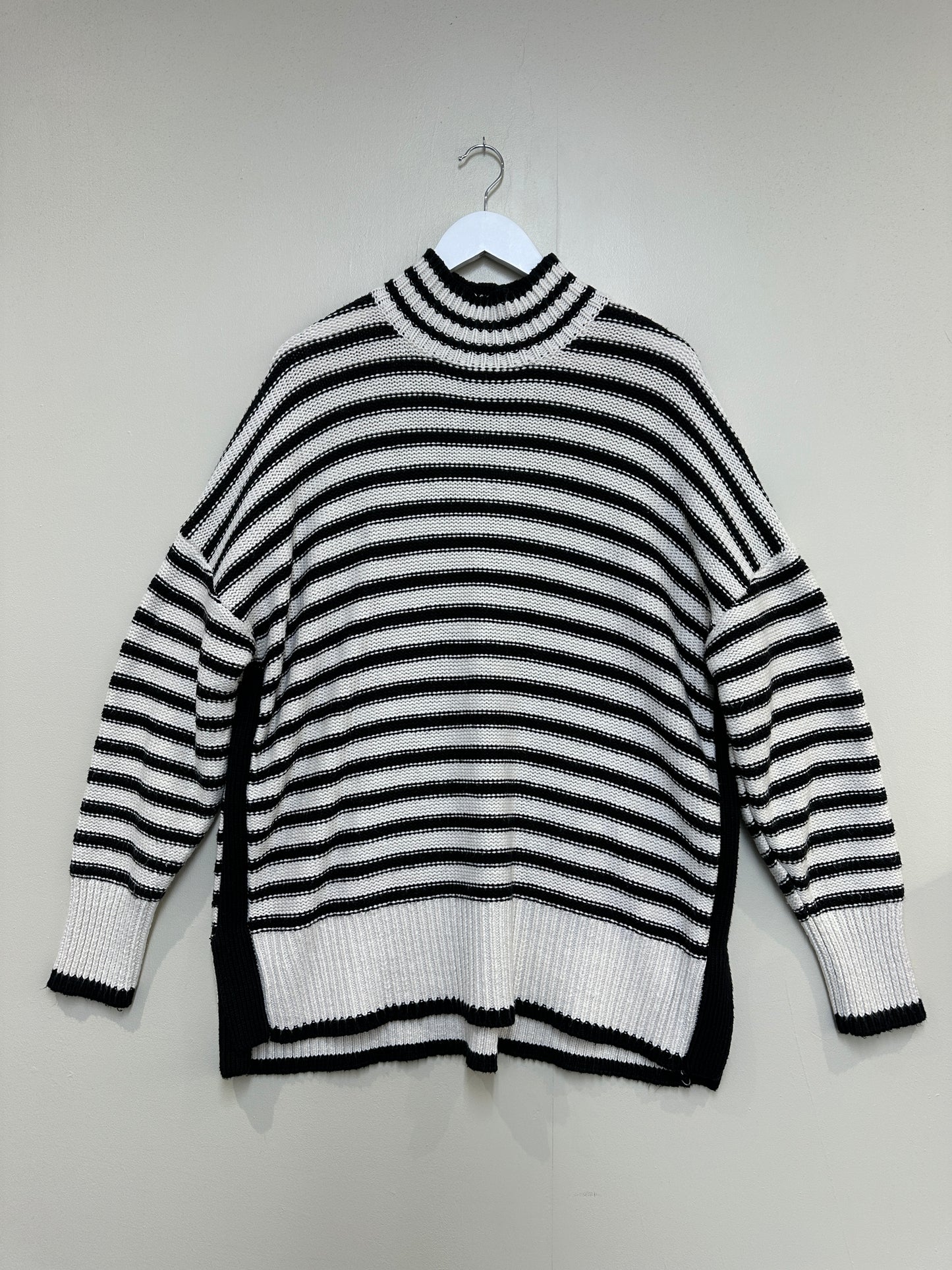 Joules Black White High Neck Striped Cotton Blend Jumper