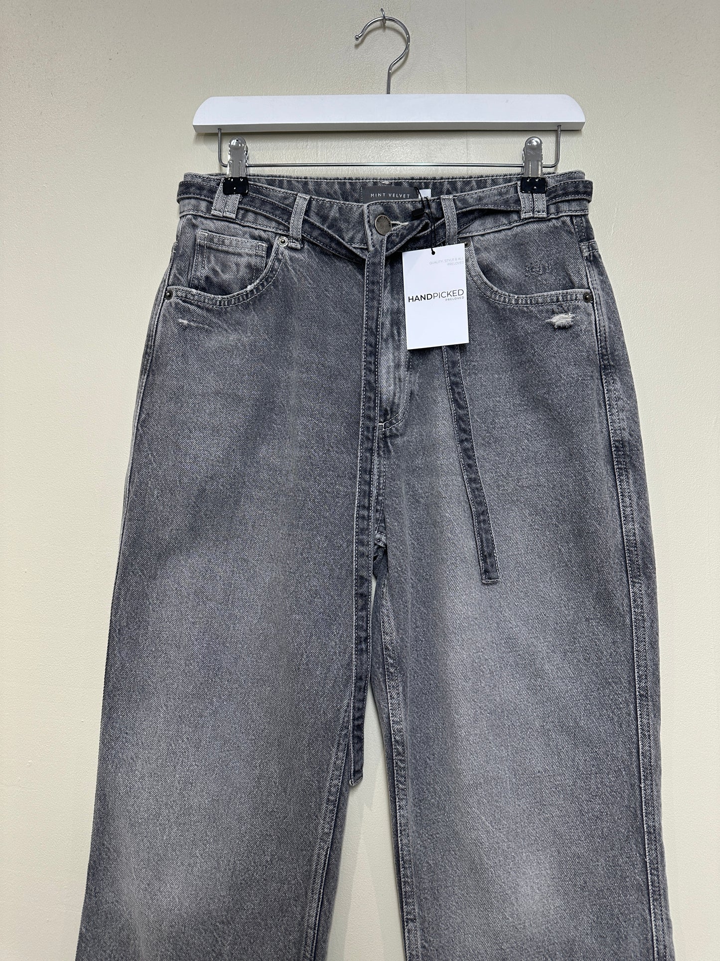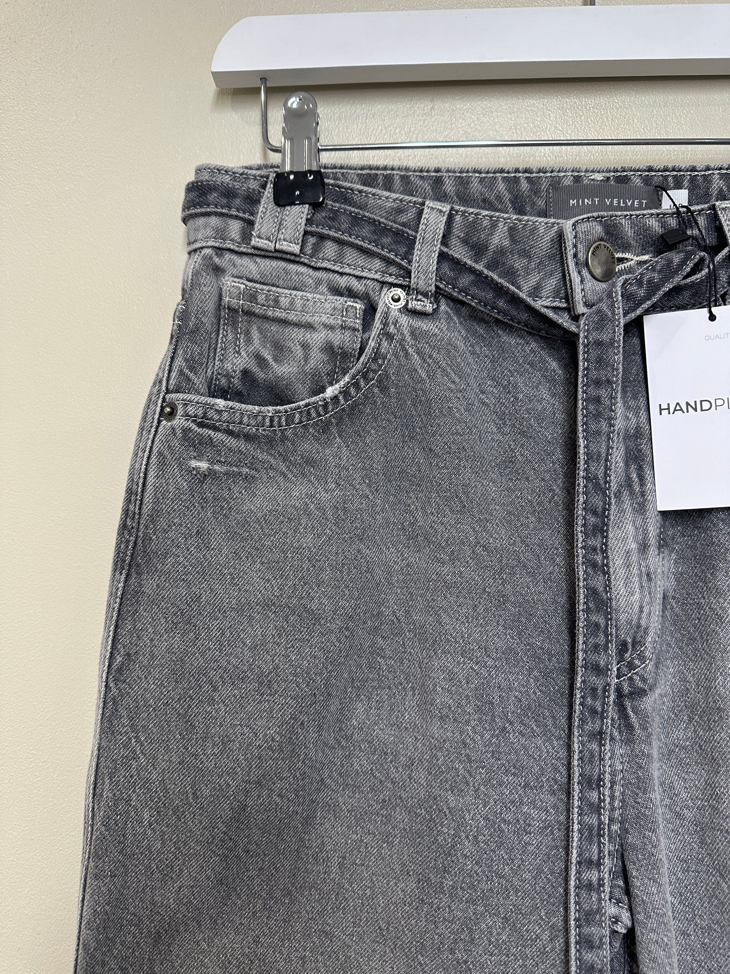 Mint Velvet Grey Tie Waist Raw Hem Wide Leg Jeans