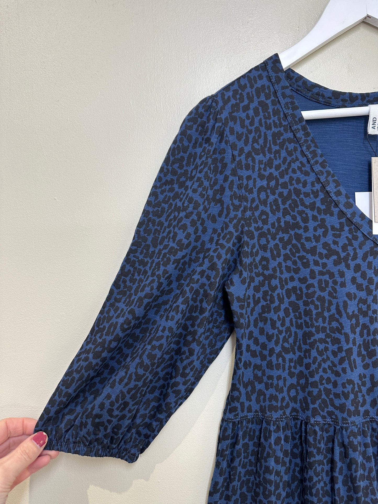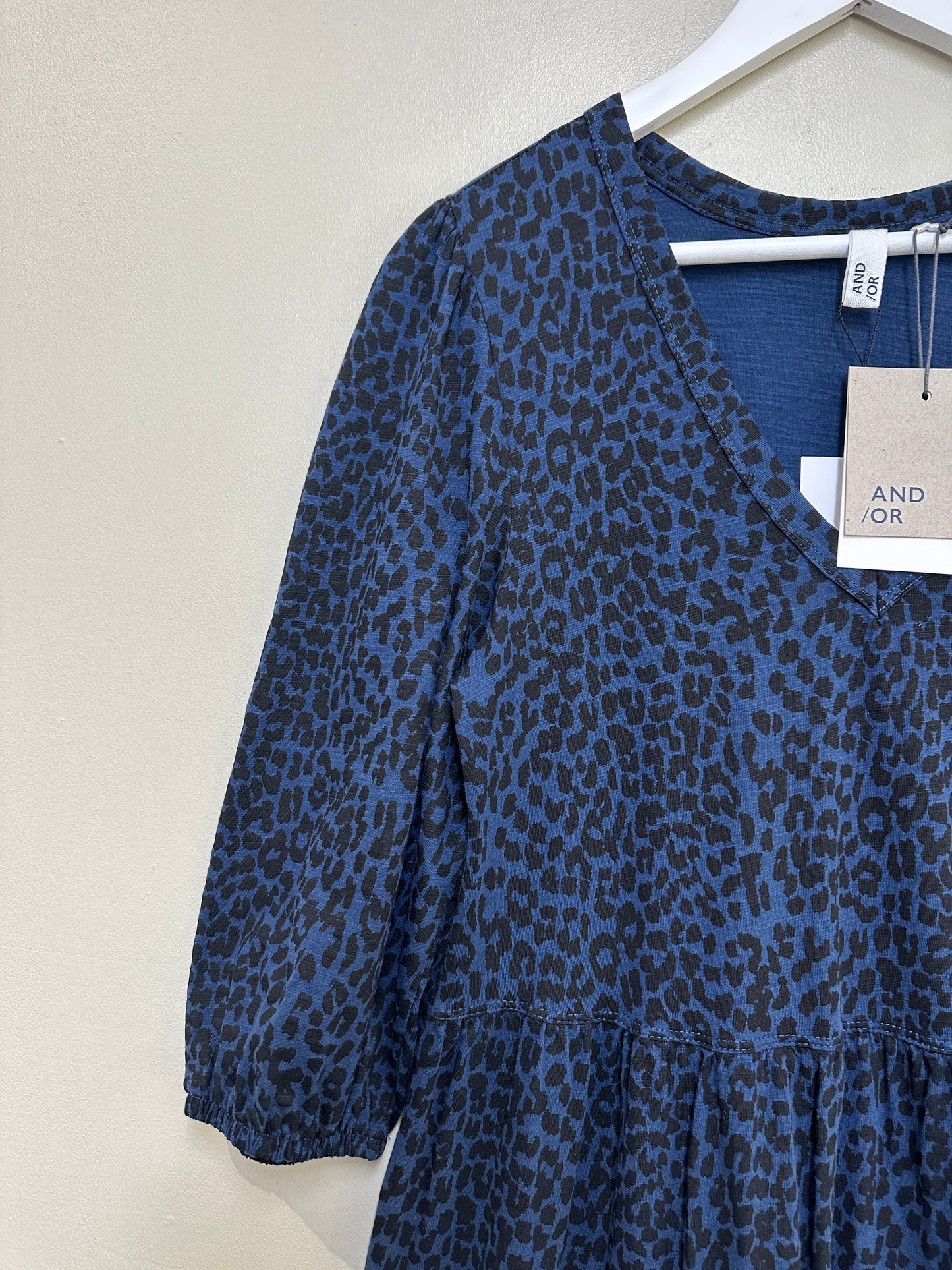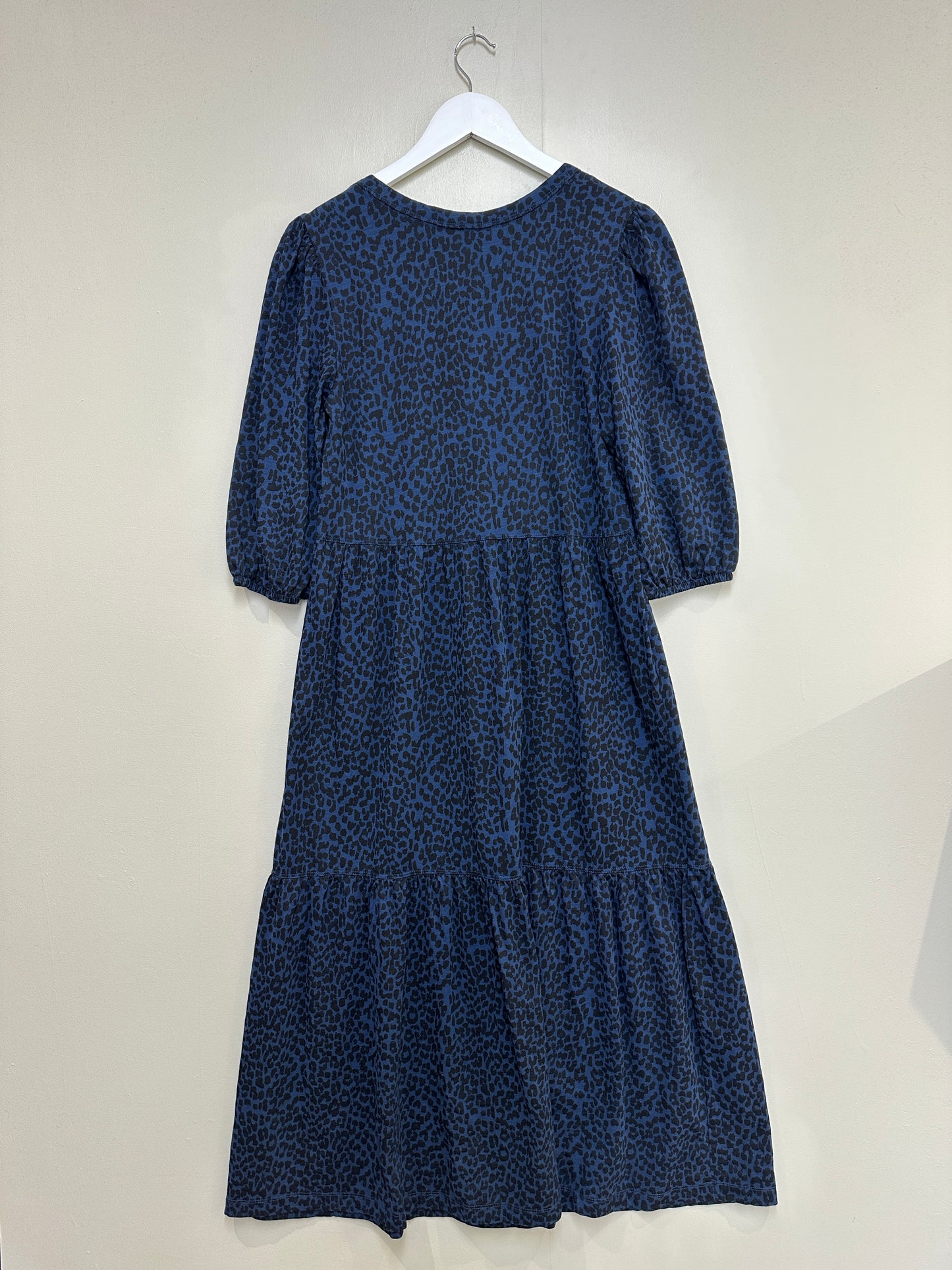 AND/OR Blue Black Animal Print Tiered Puff Sleeve Midi Dress
